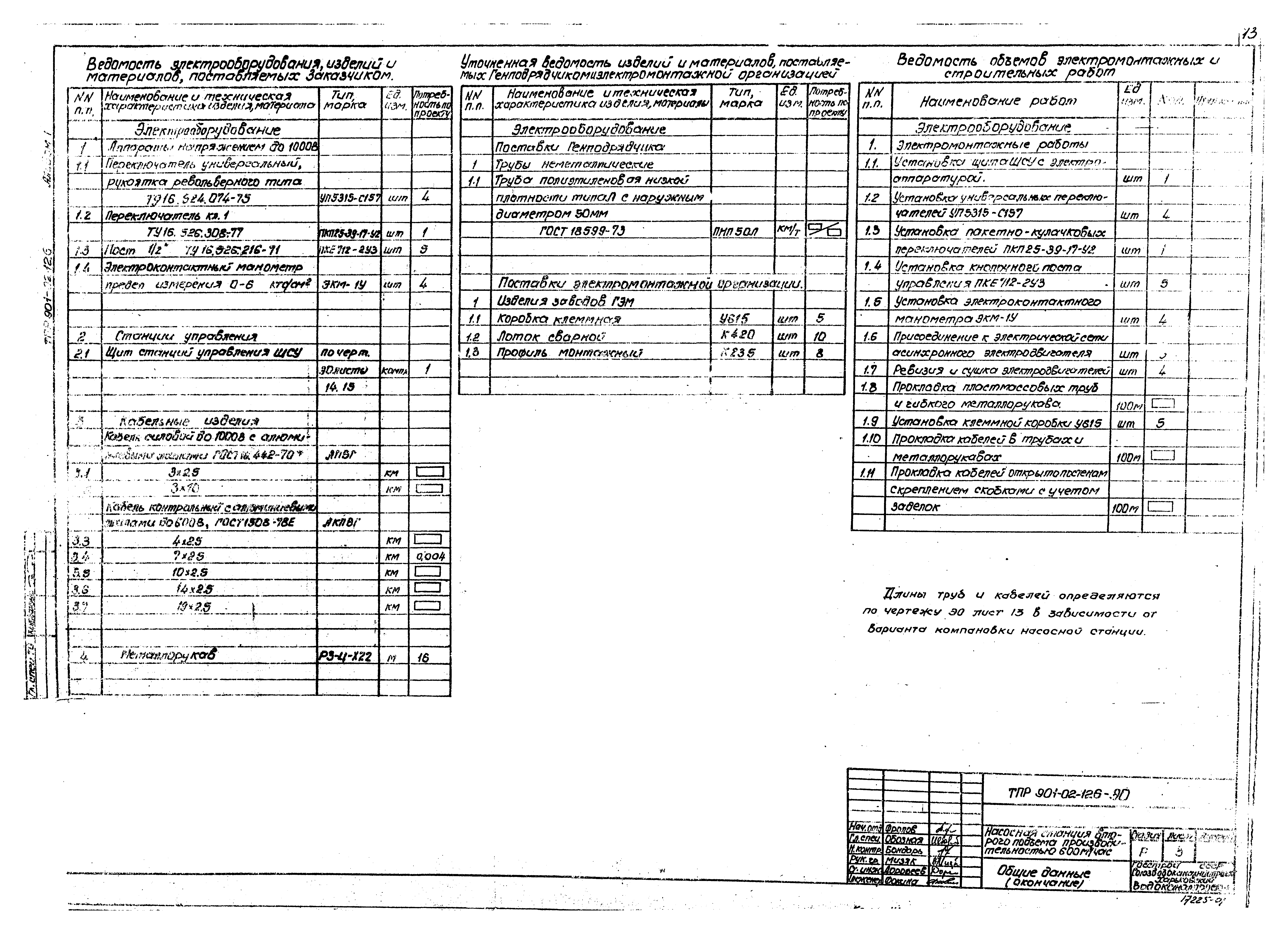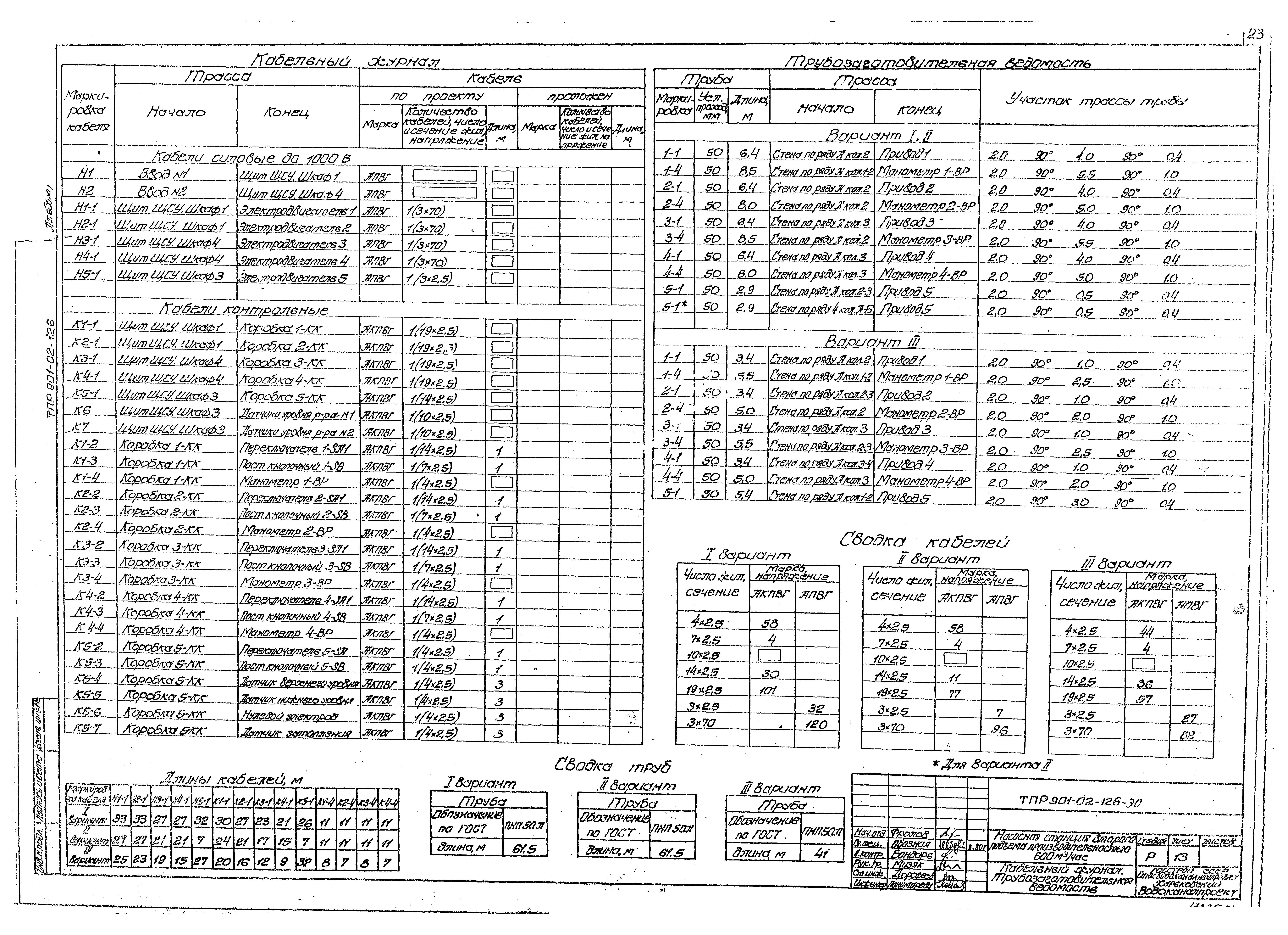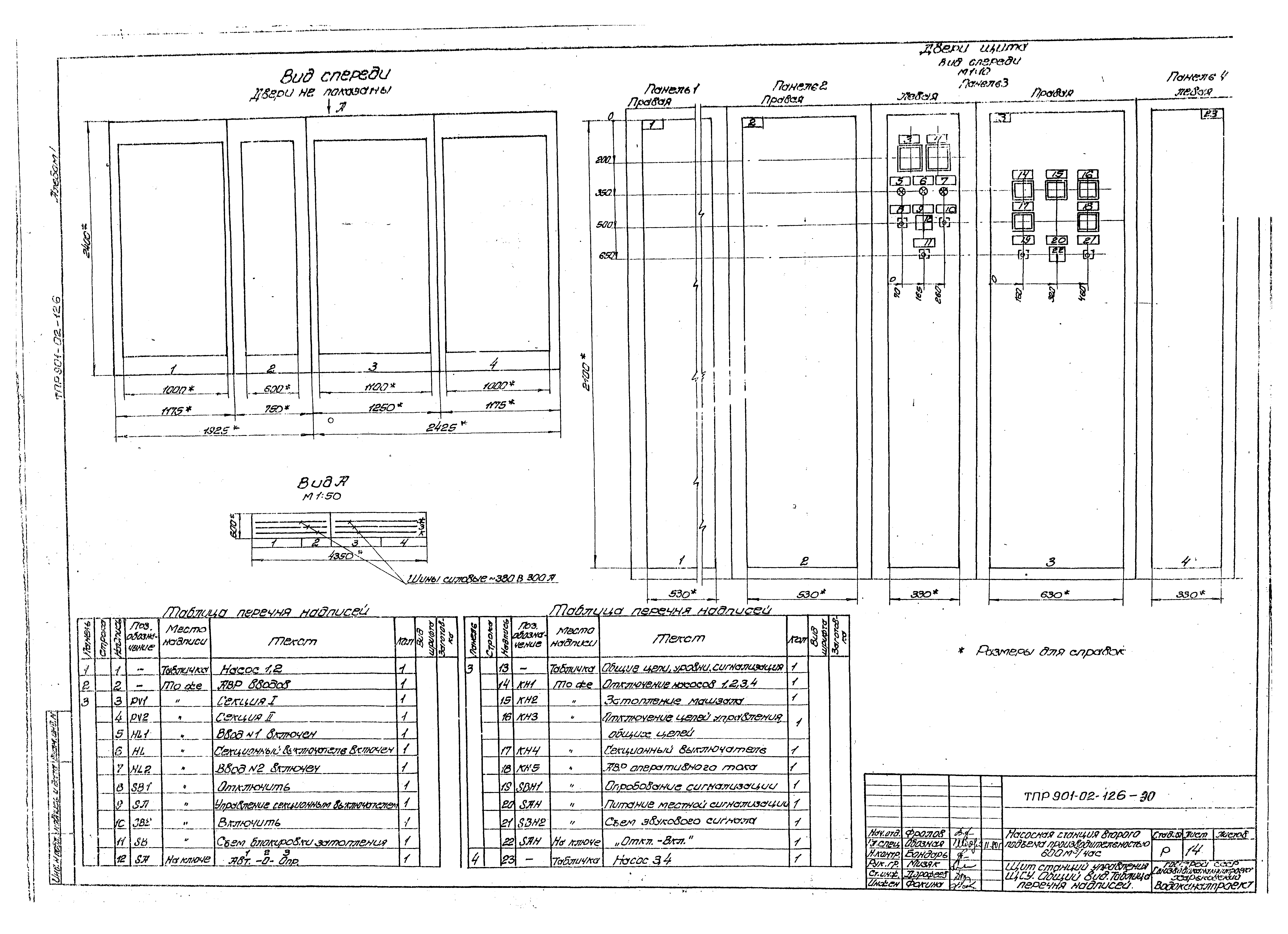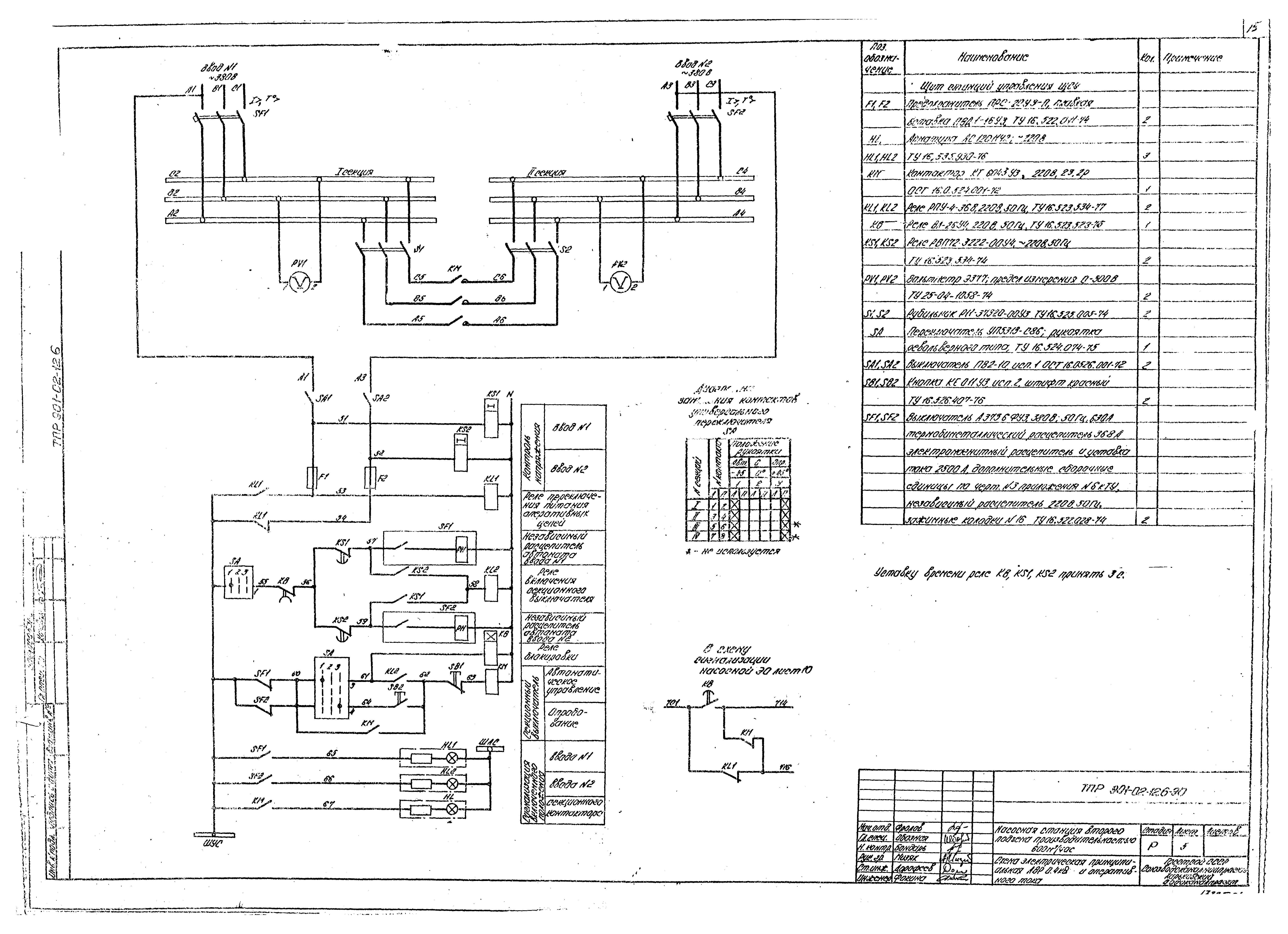 | Оглавление: | Содержание Технологические решения Общие данные Сводная спецификация План. Разрезы. Вариант I План. Разрезы. Вариант II План. Разрезы. Вариант III Установочный чертеж насоса ДЗ20-50 Установочный чертеж насоса НИС-3 Электрооборудование, автоматизация, технологический контроль Общие данные Схема электрическая принципиальная однолинейная распределительной сети 380/220 В Схема электрическая принципиальная АВР 0,4 кВ и оперативного тока Схема электрическая принципиальная управления насосами Схема электрическая принципиальная управления насосами. Перечень элементов Схема электрическая принципиальная контроля уровней Схема электрическая принципиальная сигнализации Схема подключения электрооборудования План расположения электрооборудования. Прокладка кабелей Кабельный журнал. Трубозаготовительная ведомость Щит станций управления ЩСУ. Общий вид. Таблица перечня надписей Щит станций управления ЩСУ. Панели 1, 2, 3, 4. Общие виды Схема функциональная технологического контроля Задания на разработку строительной и сантехнической частей проекта |