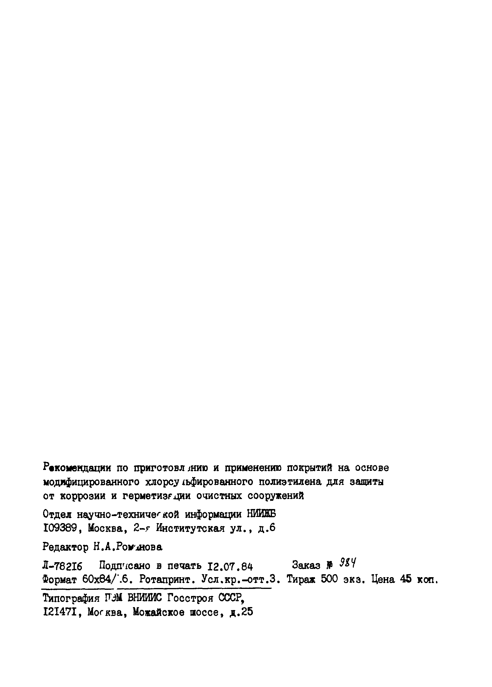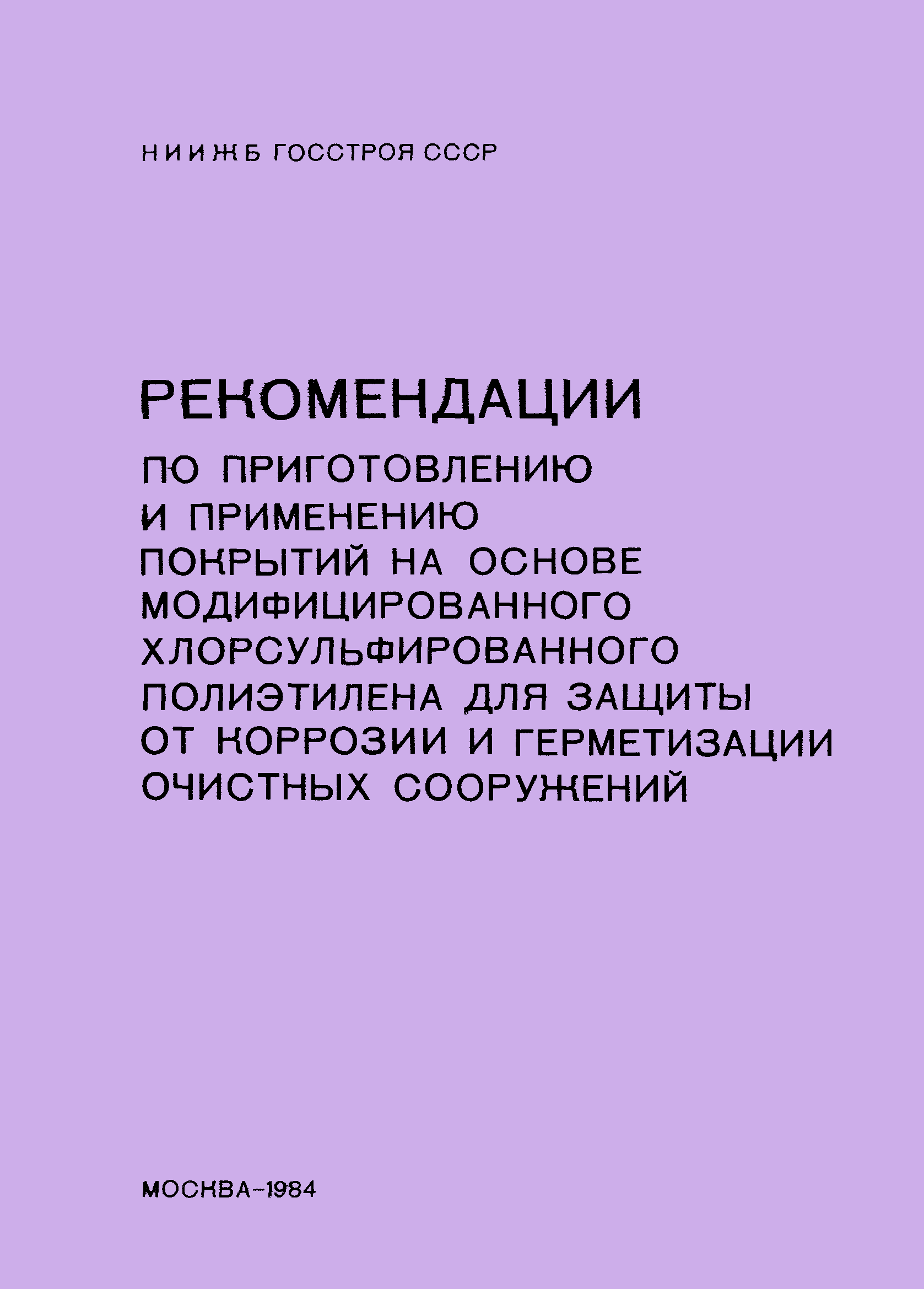 | Название рус.: | Рекомендации по приготовлению и применению покрытий на основе модифицированного хлорсульфированного полиэтилена для защиты от коррозии и герметизации очистных сооружений |