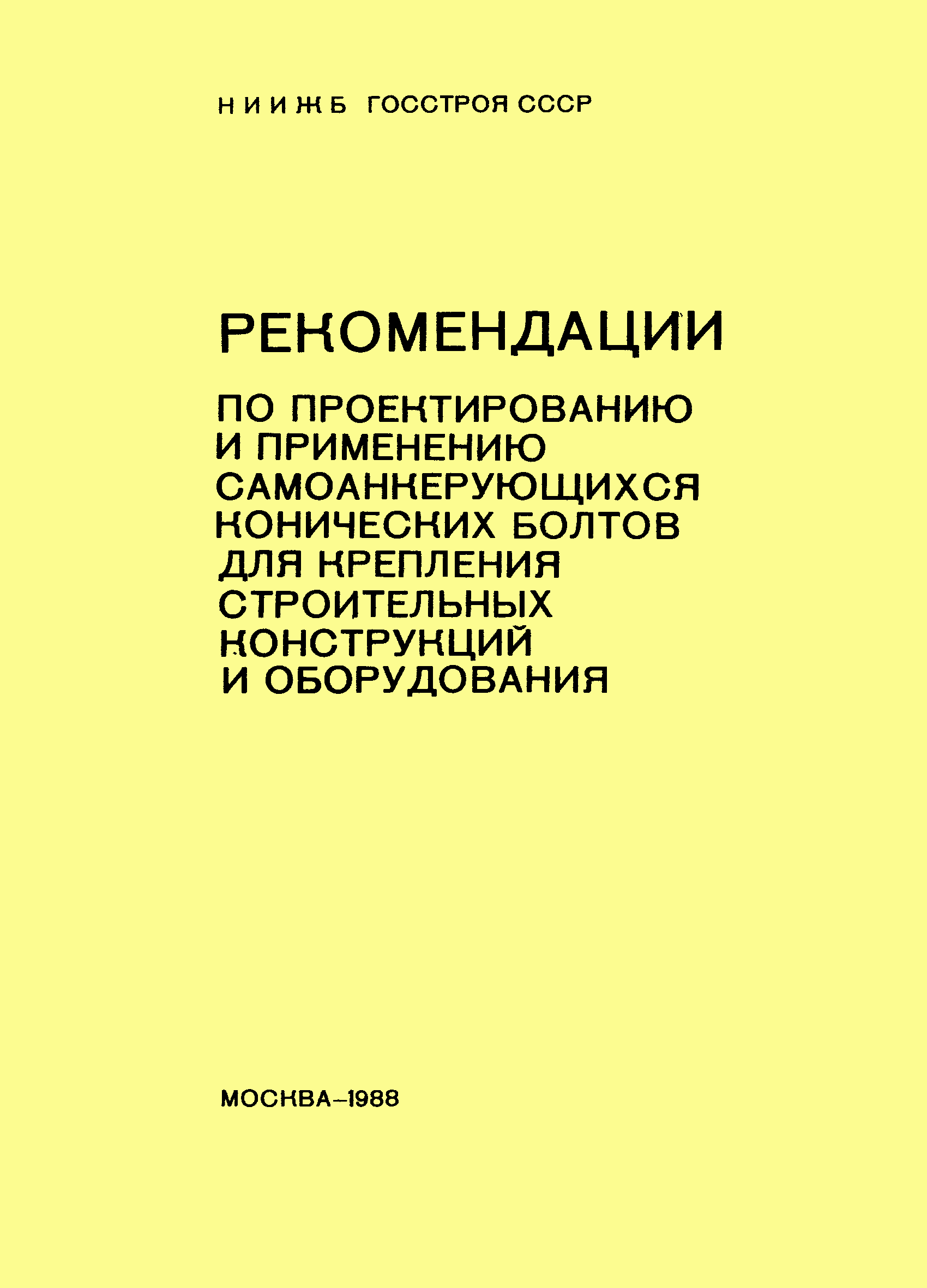 | Название рус.: | Рекомендации по проектированию и применению самоанкерующихся конических болтов для крепления строительных конструкций и оборудования |