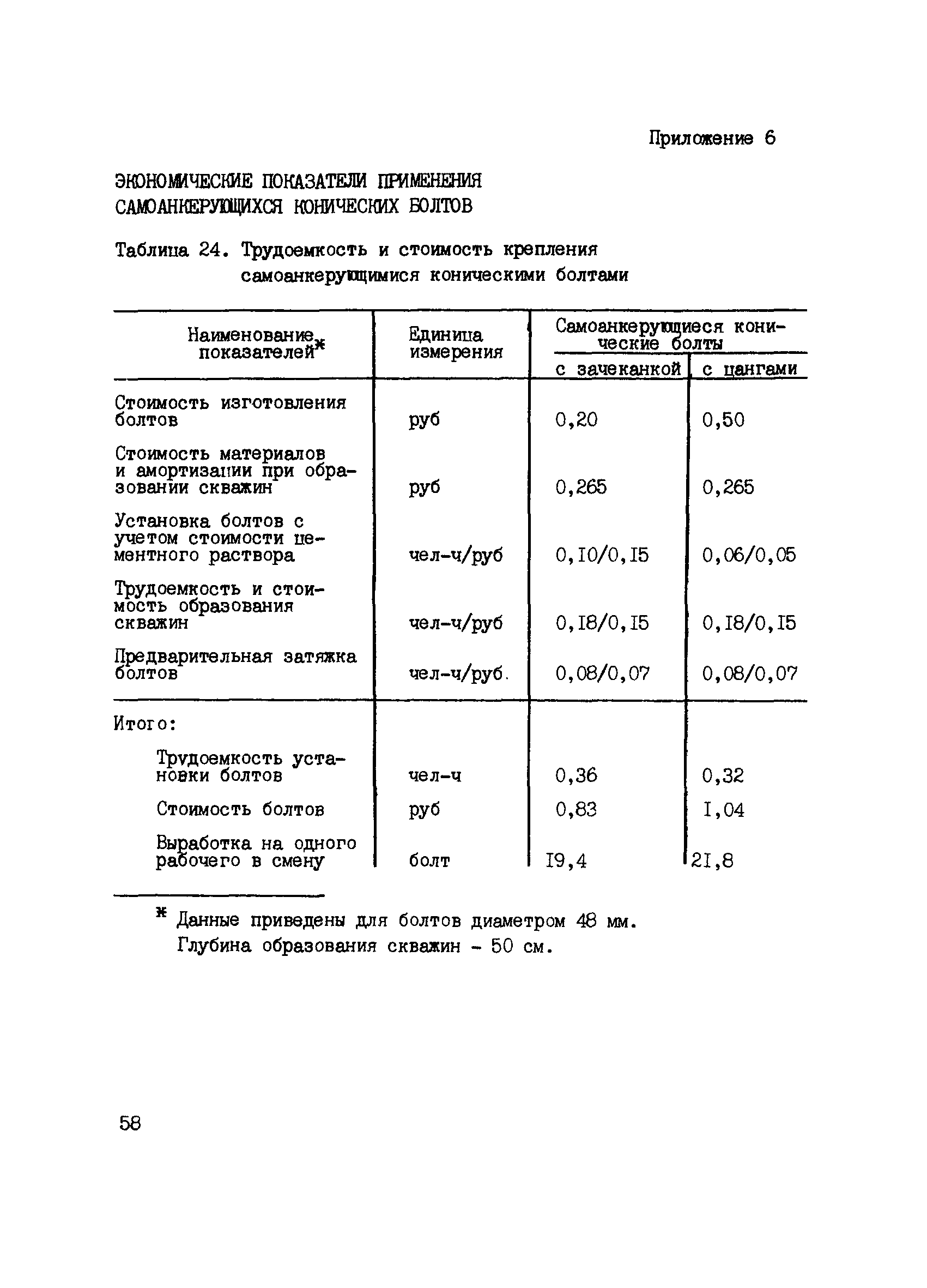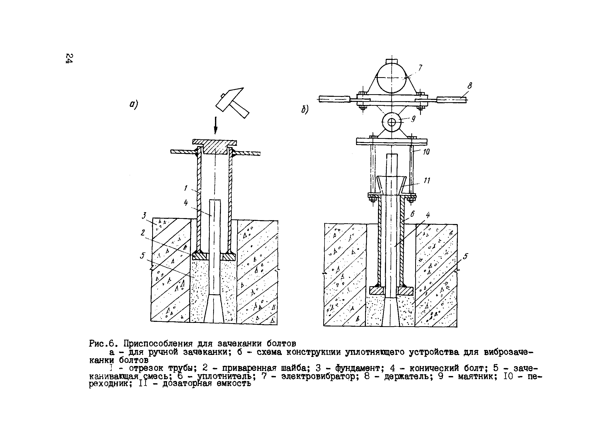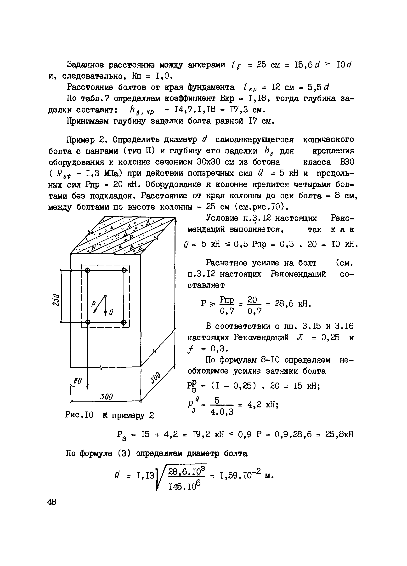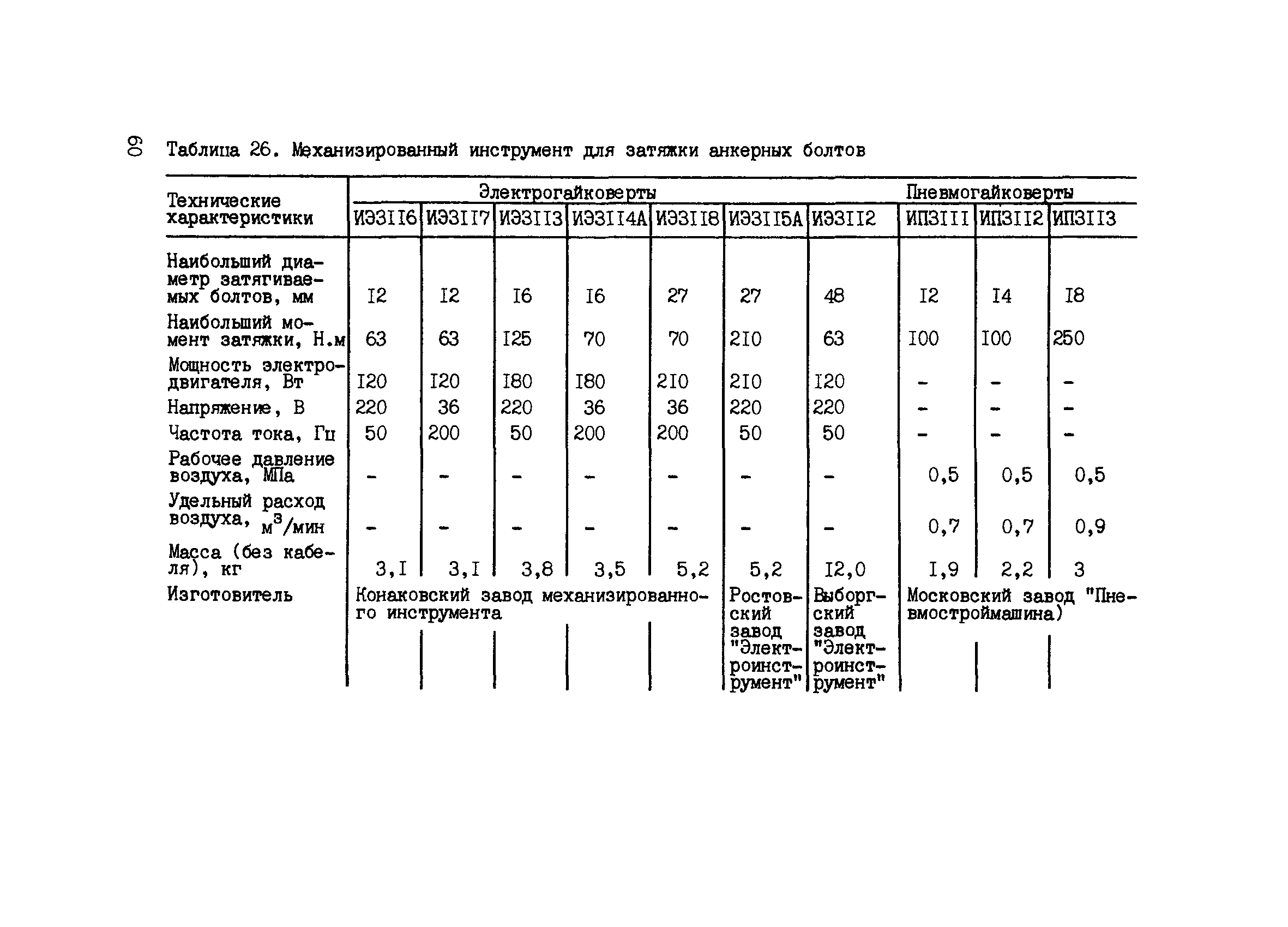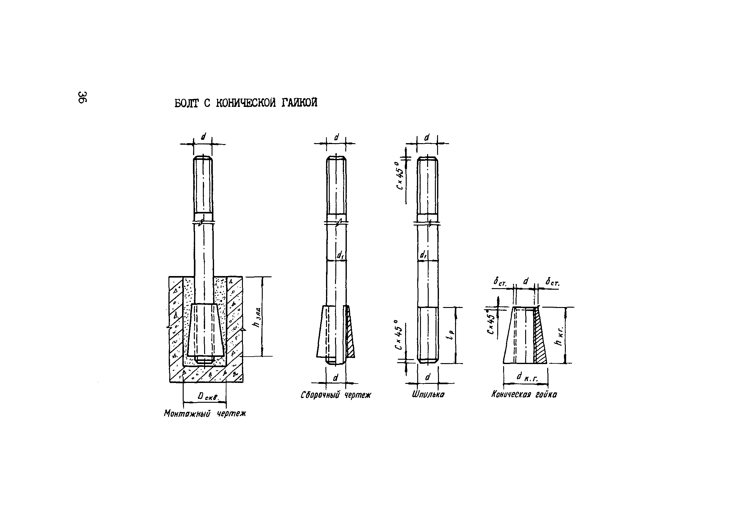 | Оглавление: | Предисловие 1. Общие положения и область применения 2. Конструкция и размеры самоанкерующихся конических болтов 3. Расчет самоанкерующихся конических болтов 4. Технология и способы установки самоанкерующихся конических болтов Приложение 1 Геометрические размеры самоанкерукщихся конических болтов с цементной зачеканкой (тип I) и диаметры скважин для них Приложение 2 Геометрические размеры самоанкерующихся конических болтов с цангами (тип II) и диаметры скважин для них Приложение 3 Конструкция и геометрические характеристики втулок для восприятия поперечных (сдвигающих) усилий Приложение 4 Примеры расчета самоанкерующихся конических болтов Приложение 5 Механизированный инструмент для образования скважин в бетоне и железобетоне Приложение 6 Экономические показатели применения самоанкерущихся конических болтов Приложение 7 Инструмент для затяжки фундаментных болтов |