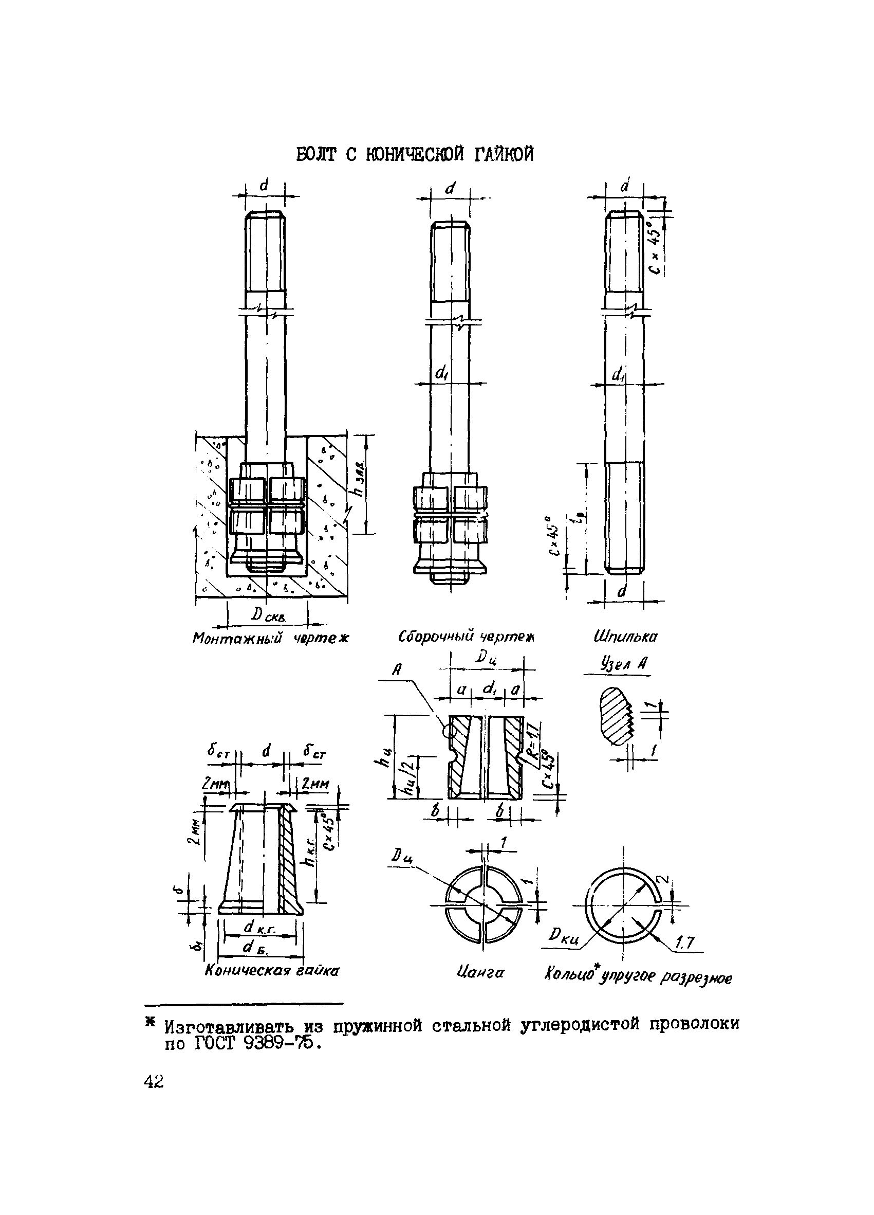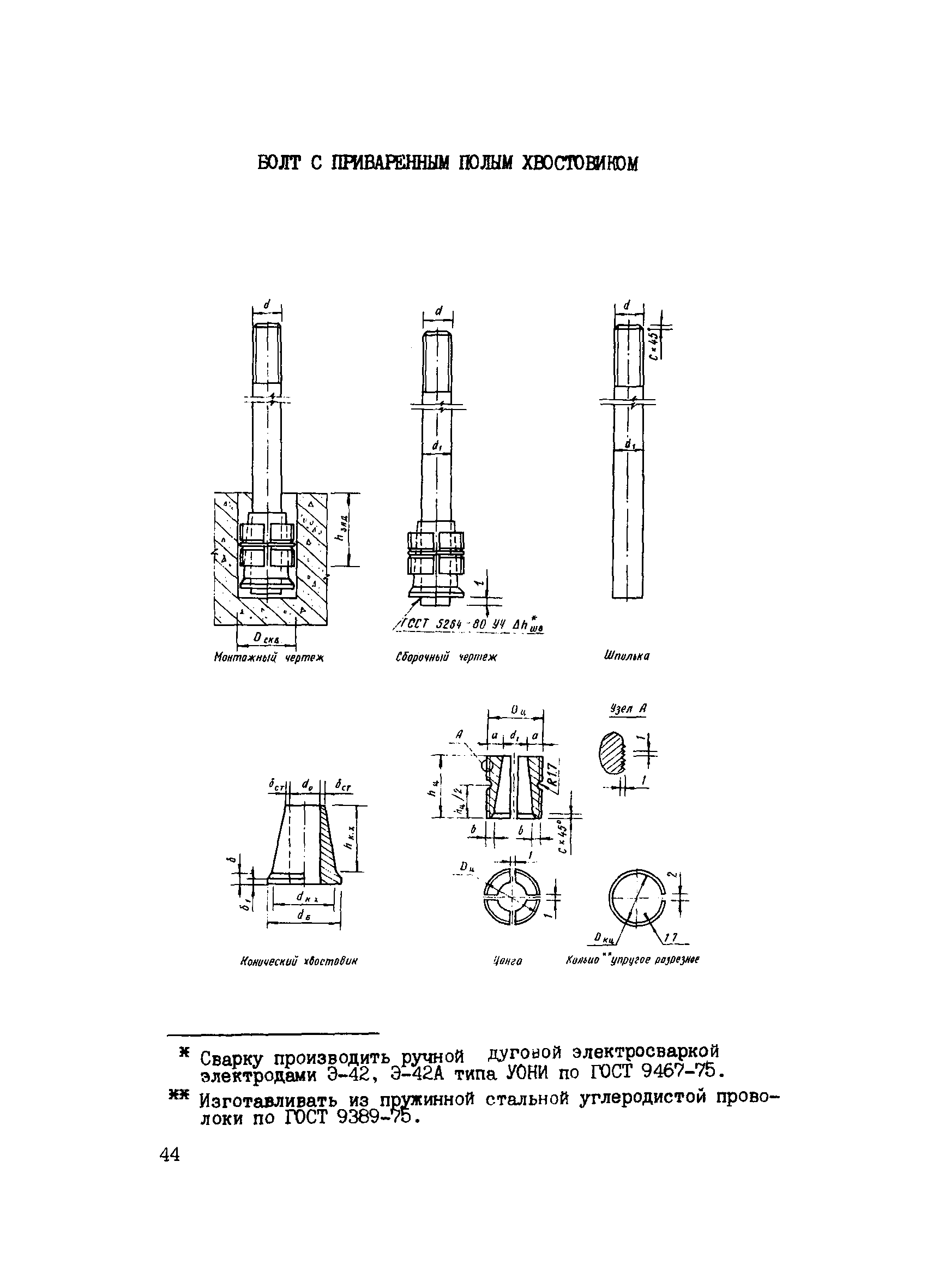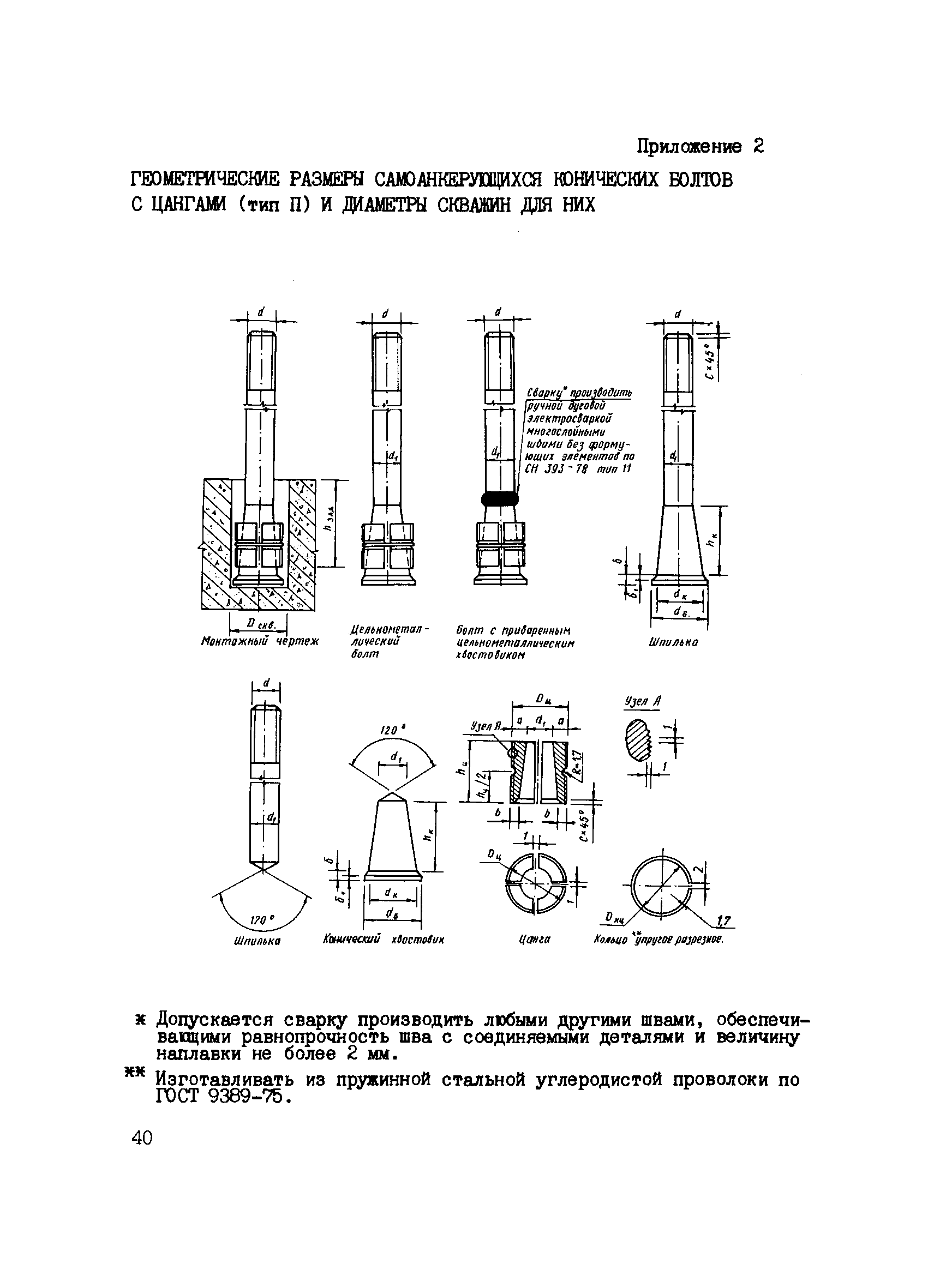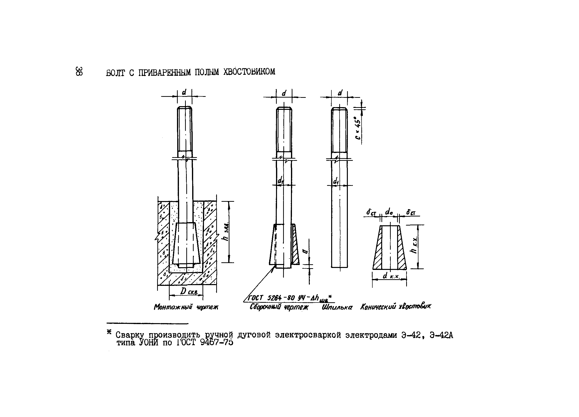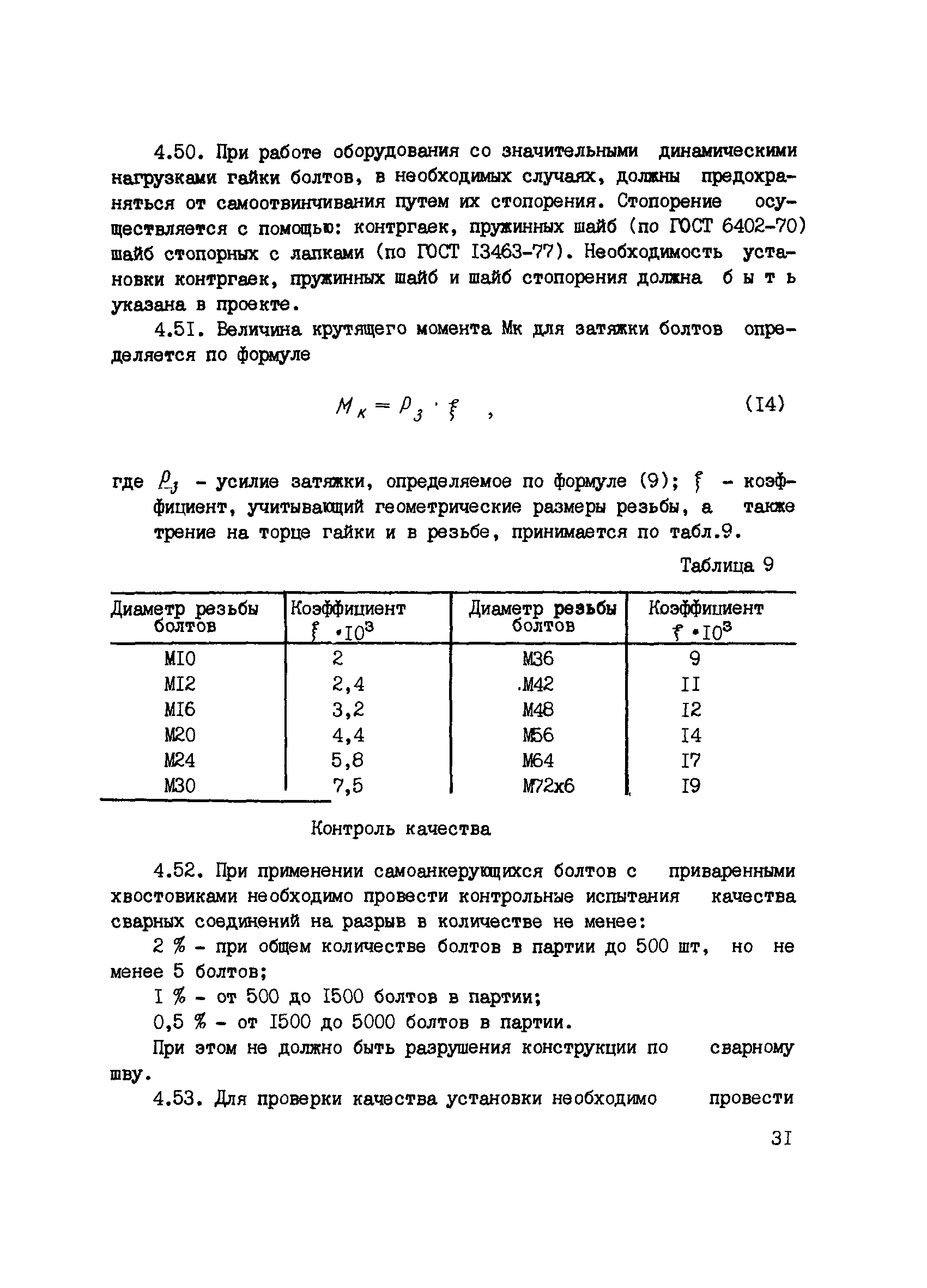 | Оглавление: | Предисловие 1. Общие положения и область применения 2. Конструкция и размеры самоанкерующихся конических болтов 3. Расчет самоанкерующихся конических болтов 4. Технология и способы установки самоанкерующихся конических болтов Приложение 1 Геометрические размеры самоанкерукщихся конических болтов с цементной зачеканкой (тип I) и диаметры скважин для них Приложение 2 Геометрические размеры самоанкерующихся конических болтов с цангами (тип II) и диаметры скважин для них Приложение 3 Конструкция и геометрические характеристики втулок для восприятия поперечных (сдвигающих) усилий Приложение 4 Примеры расчета самоанкерующихся конических болтов Приложение 5 Механизированный инструмент для образования скважин в бетоне и железобетоне Приложение 6 Экономические показатели применения самоанкерущихся конических болтов Приложение 7 Инструмент для затяжки фундаментных болтов |