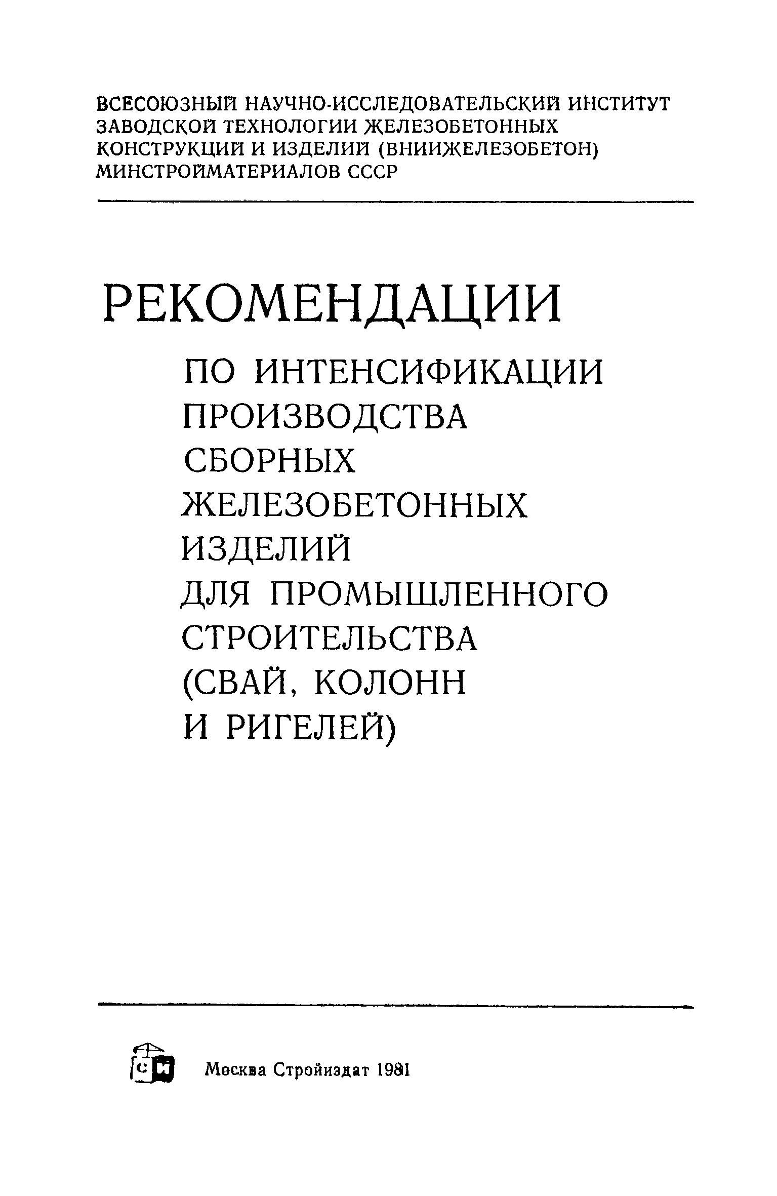 Скачать Рекомендации по интенсификации производства сборных железобетонных изделий для промышленного строительства (свай, колонн и ригелей)Дата актуализации: 01.01.2021