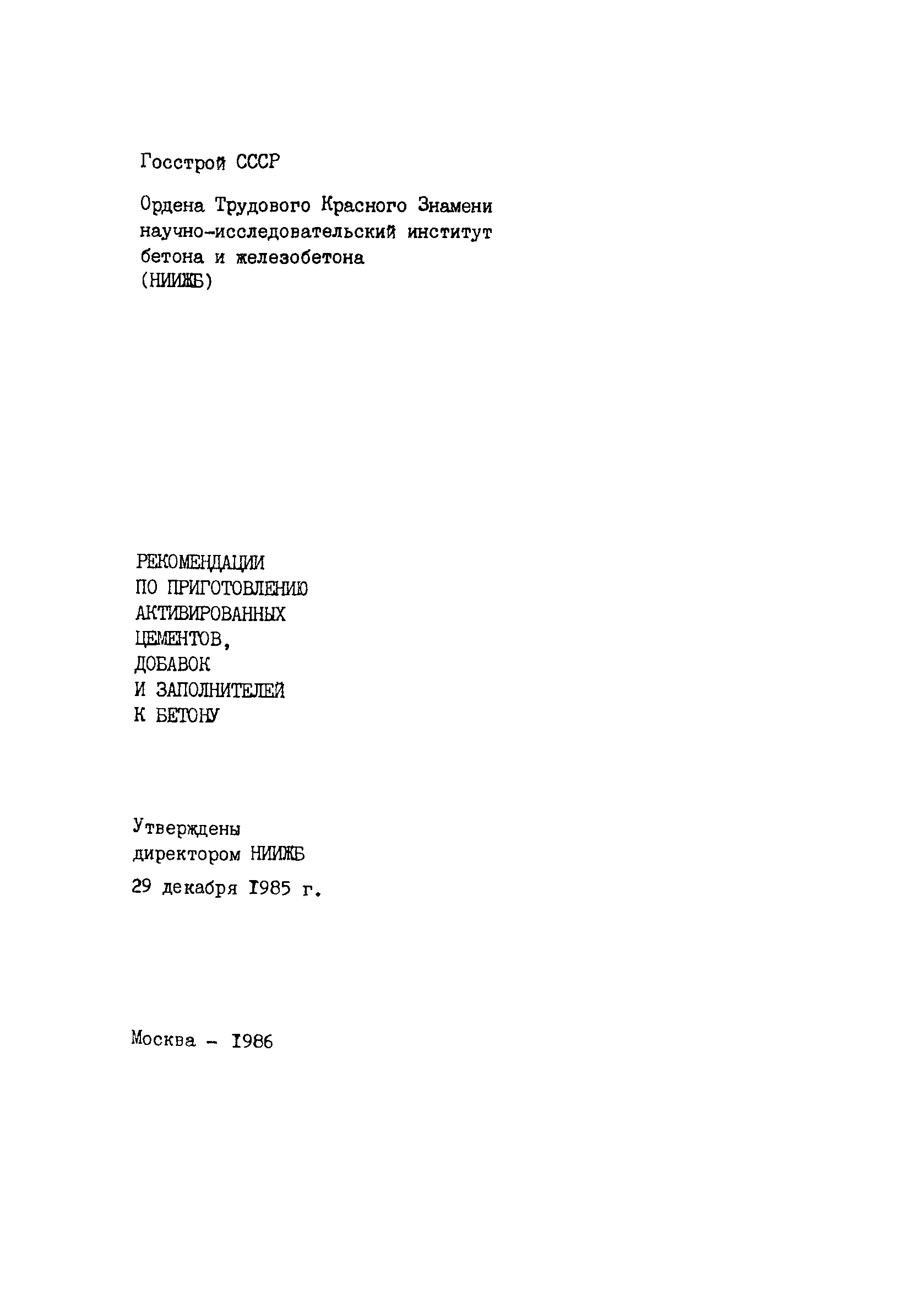 | Утверждён: | 29.12.1985 НИИЖБ Госстроя СССР (NIIZhB, USSR Gosstroy )