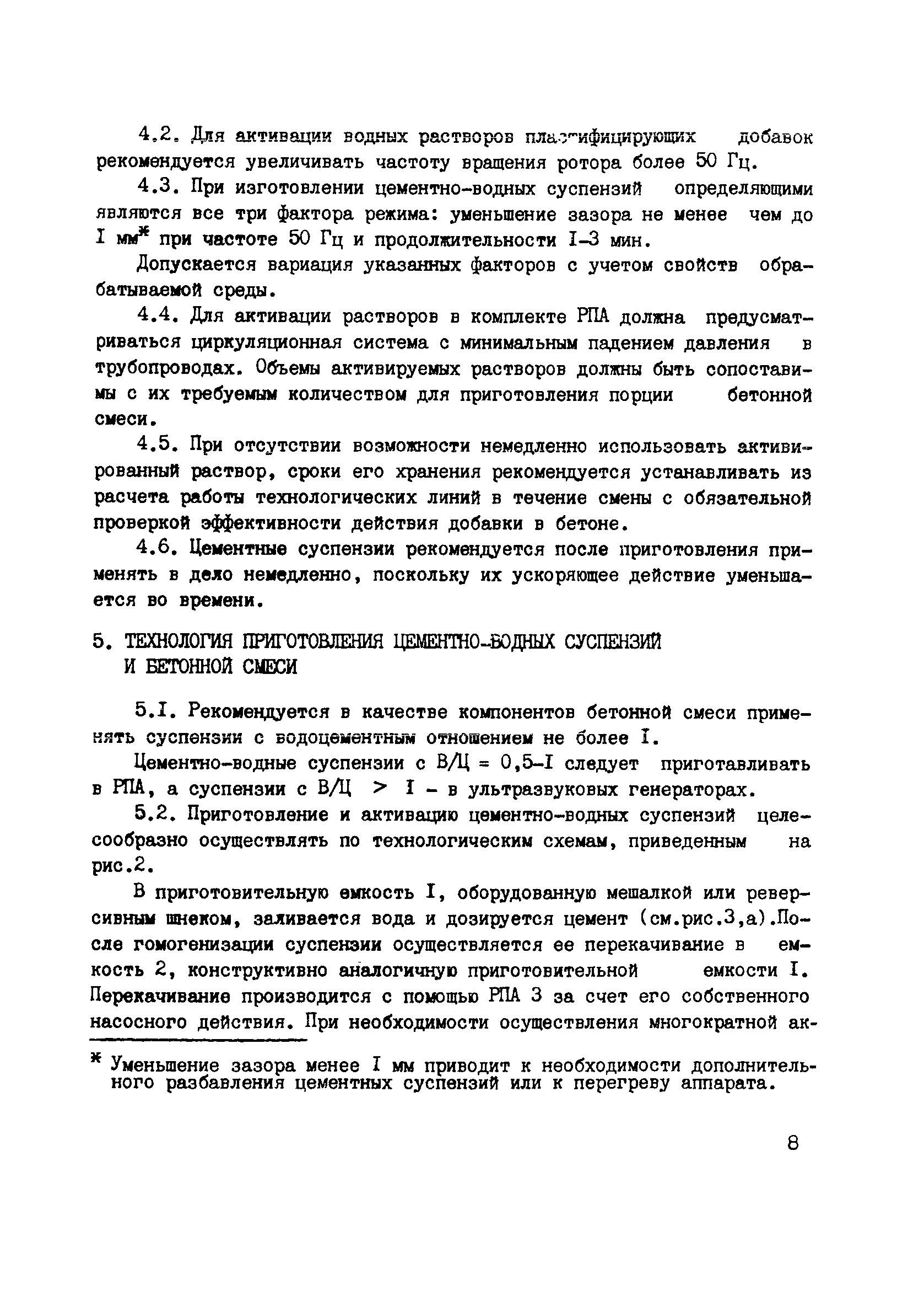 | Оглавление: | Предисловие 1. Основные положения и область применения 2. Конструктивные особенности механических генераторов и рекомендации по их эксплуатации 3. Технология приготовления добавок водных эмульсий из трудно- растворимых в воде продуктов 4. Режимы вибро-импульсной активации растворов пластификаторов, суперпластификаторов и цементно-водных суспензий 5. Технология приготовления цементно-водных суспензий и бетонной смеси 6. Технология активации поверхности заполнителей и приготовления бетонной смеси 7. Особенности контроля за производством работ 8. Техника безопасности Приложение 1. Термины и определения Приложение 2. Конструкция и техническая характеристика механических вибро-импульсных устройств Приложение 3. Приготовление растворов кислот, щелочей, солей и гидрофобно-пластифицирующих добавок Приложение 4. Примеры определения вибро-импульсной активации цементно-водных суспензий Приложение 5. Примеры подбора состава бетона с активированной цементно-водной суспензией Приложение 6. Методика проведения акустических измерений для определения степени активации цементно суспензии Приложение 7. Методика контроля степени активации заполнителей |