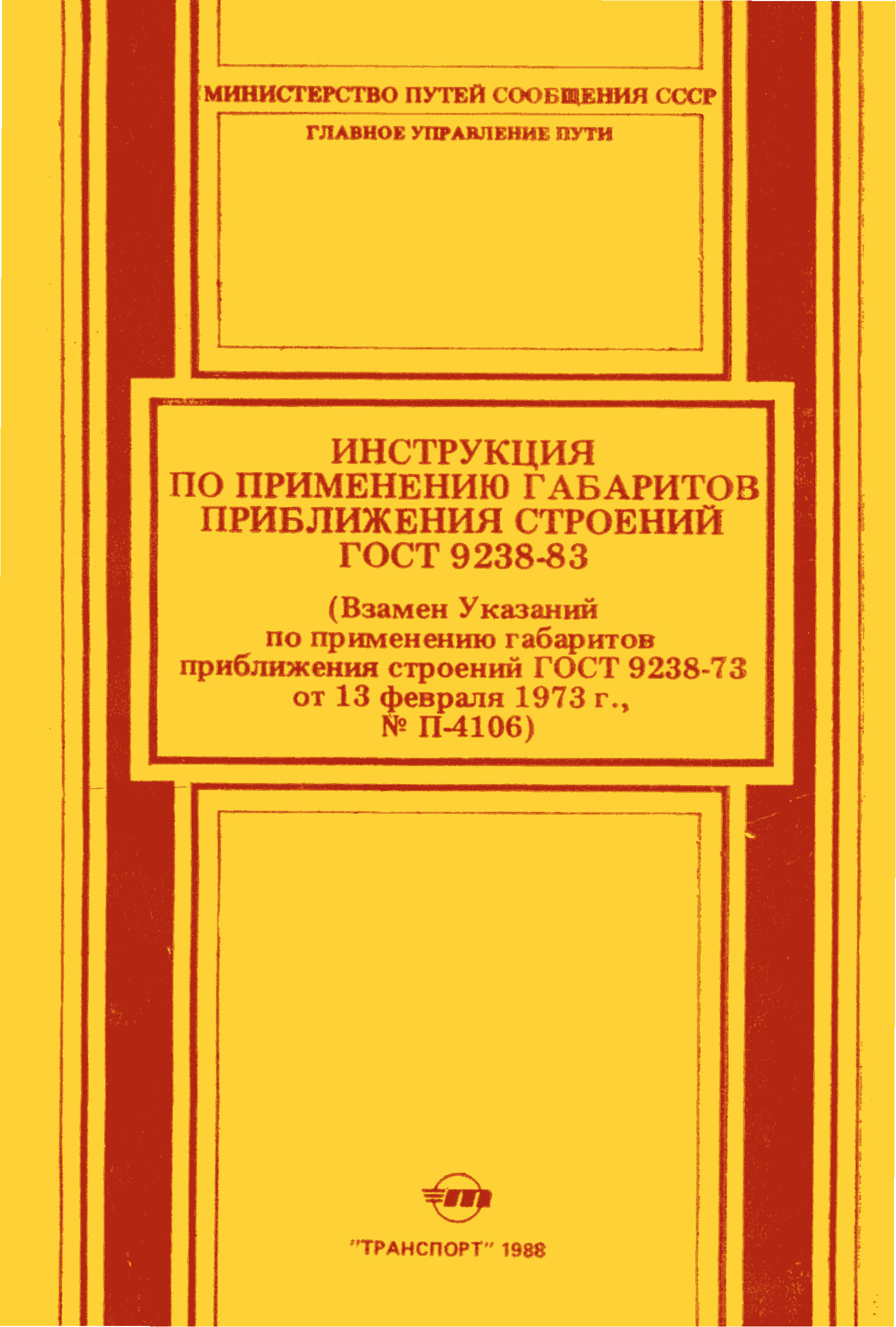 | | Заменяет собой: | - П-4106 «Указания по применению габаритов приближения строений ГОСТ 9238-73»