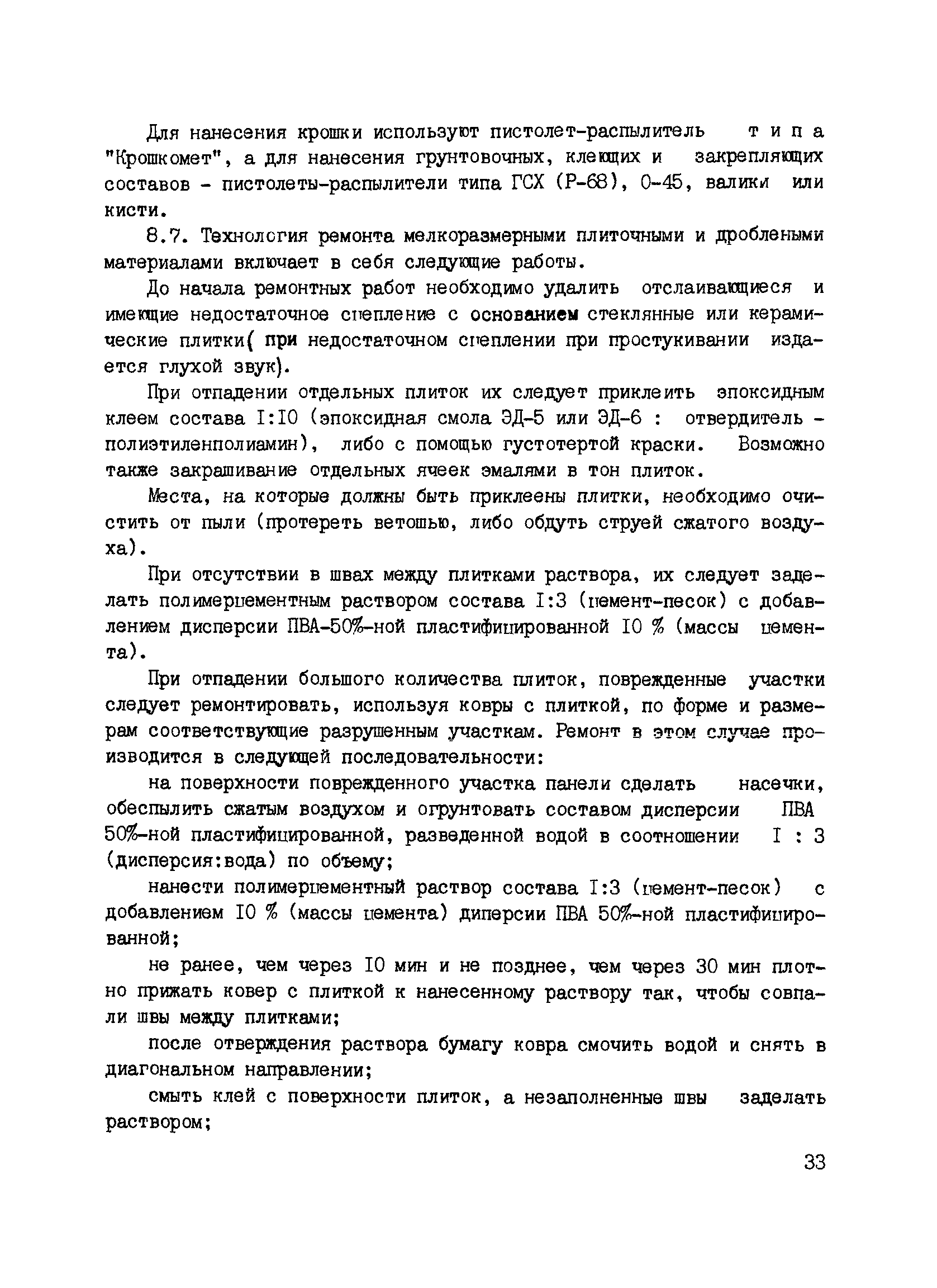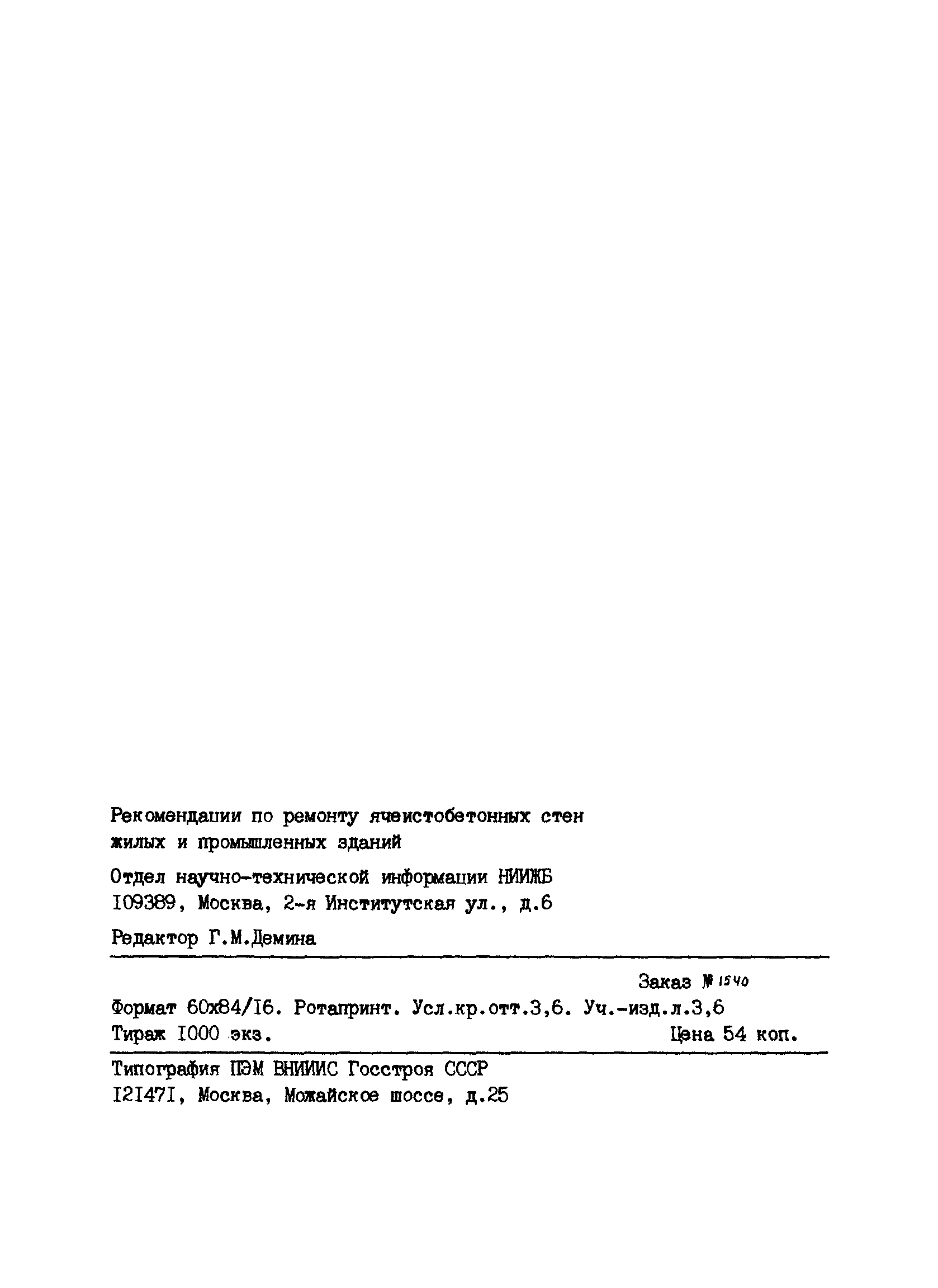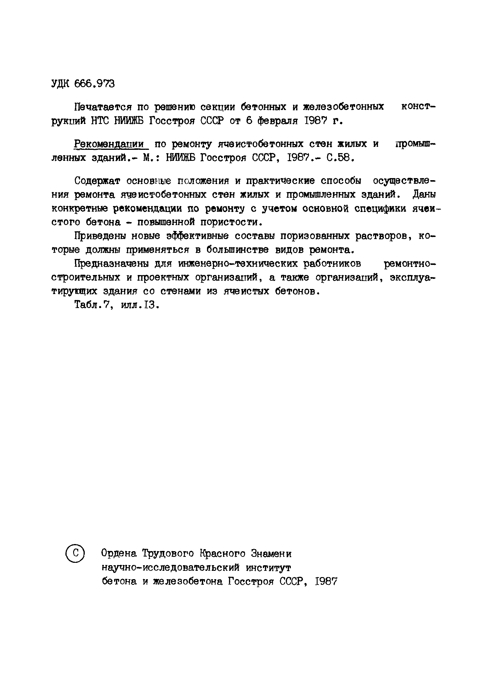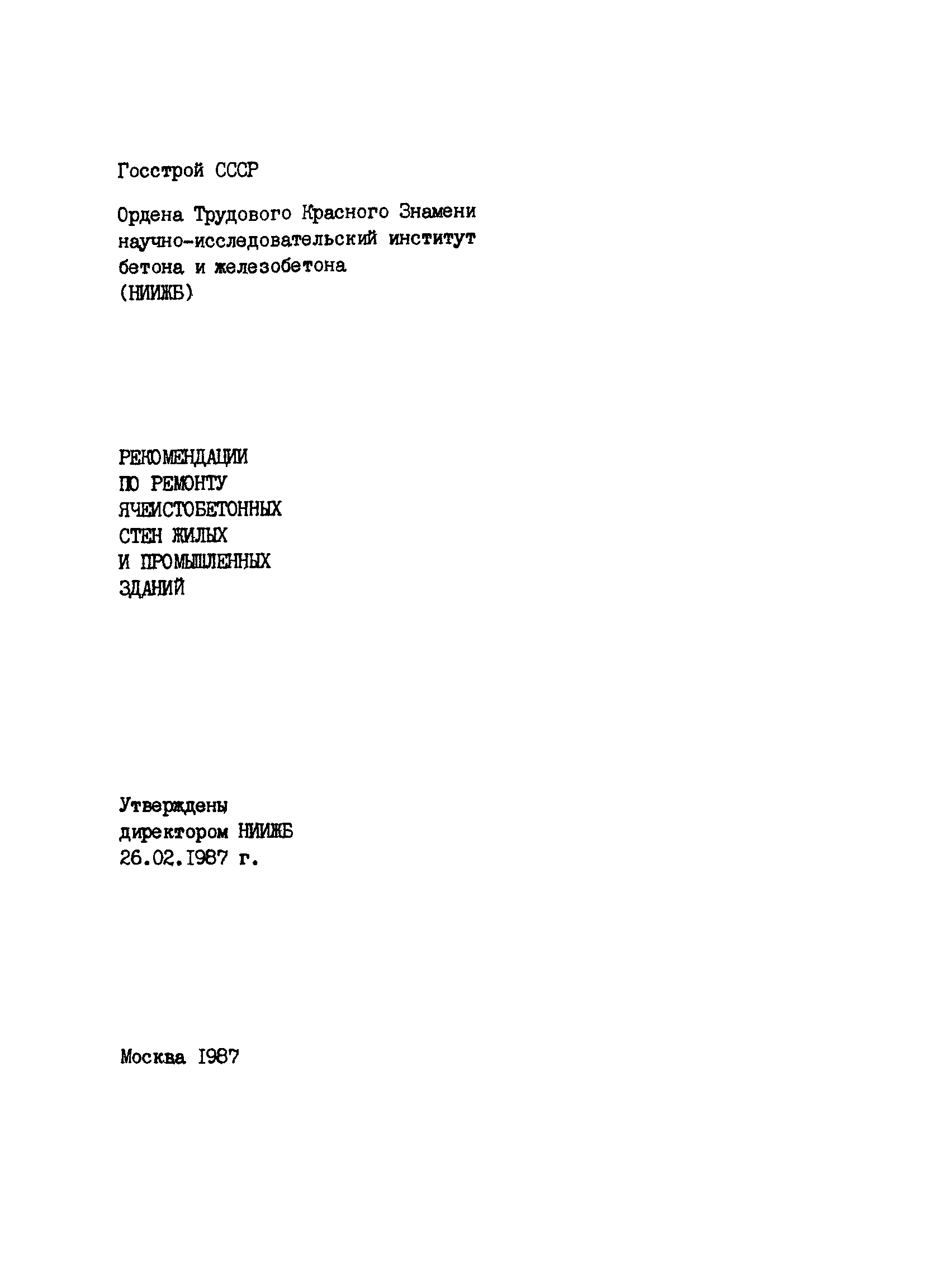 | Область применения: | Документ содержит основные положения и практические способы осуществления ремонта ячеистобетонных стен жилых и промышленных зданий. даны конкретные рекомендации по ремонту с учетом основной специфики ячеистого бетона повышенной пористости. Приведены новые эффективные составы поризованных растворов, которые должны применяться в большинстве видов ремонта. Предназначены для инженерно—технических работников ремонтно—строительных и проектных организаций, а также организаций, эксплуатирующих здания со стенами из ячеистых бетонов. |