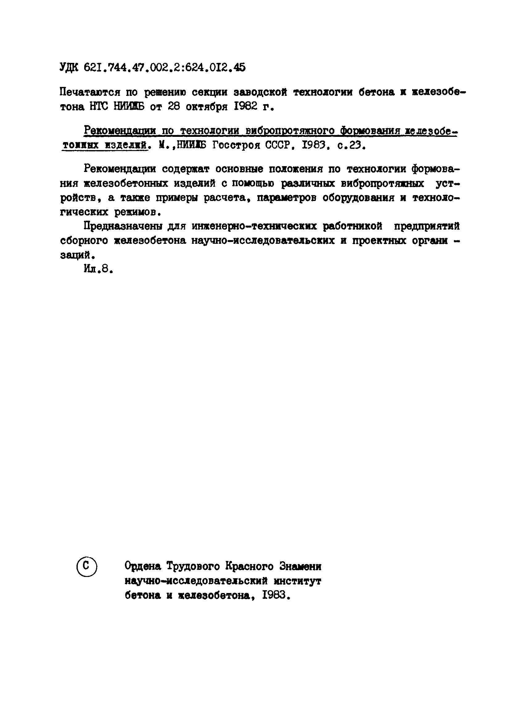 | Название рус.: | Рекомендации по технологии вибропротяжного формования железобетонных изделий |