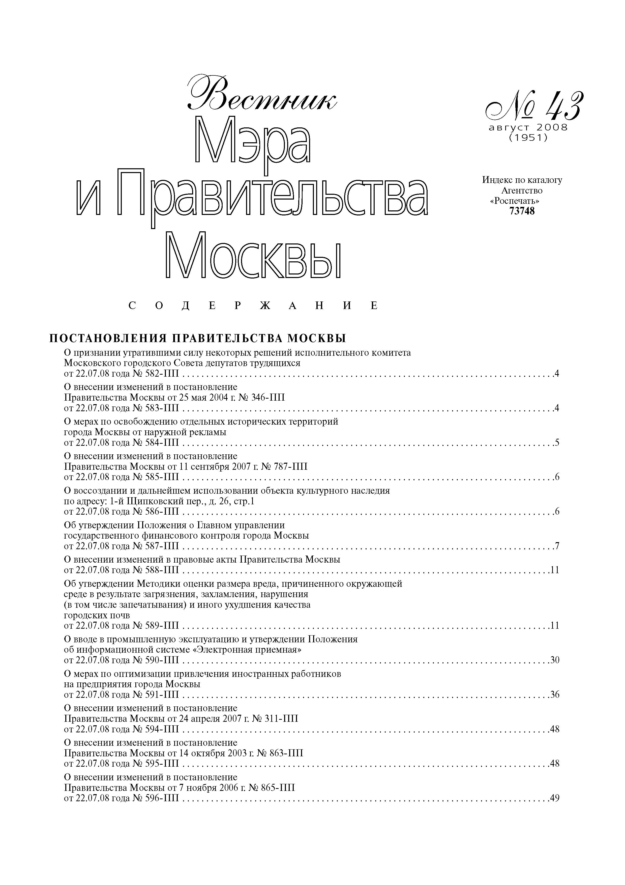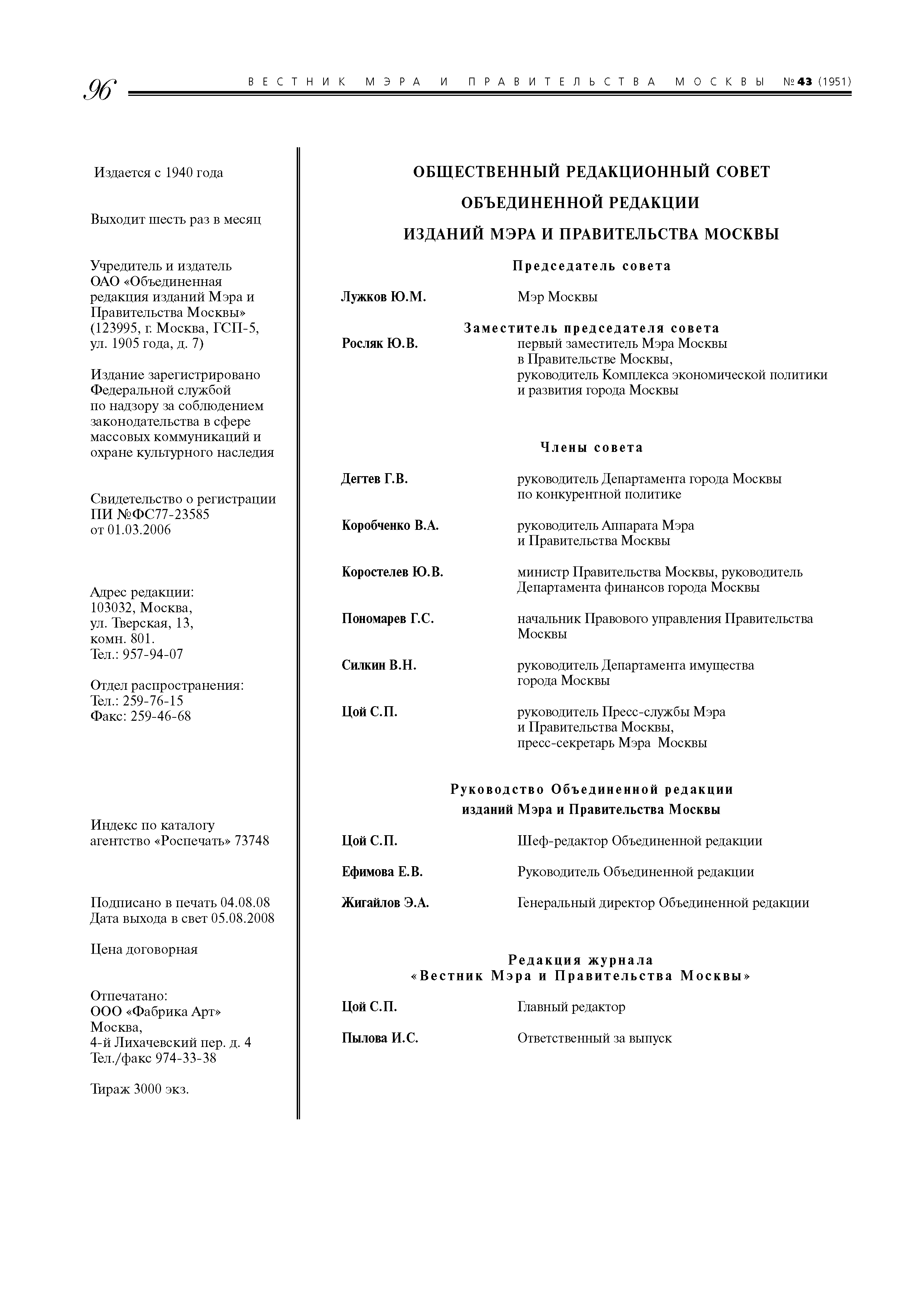 | Издан: | Вестник Мэра и Правительства Москвы (№ 43 от 05.08.2008 г.) |
