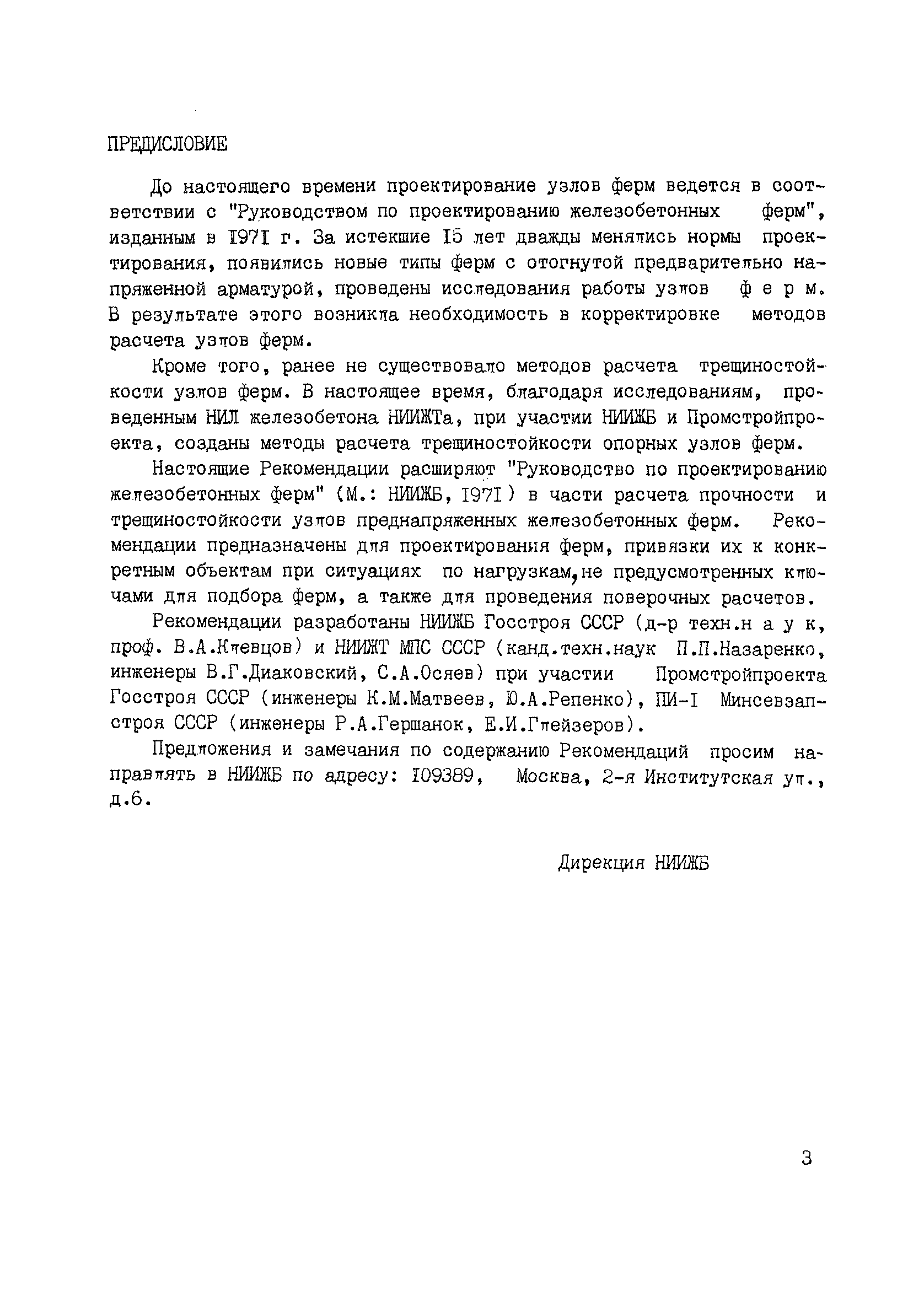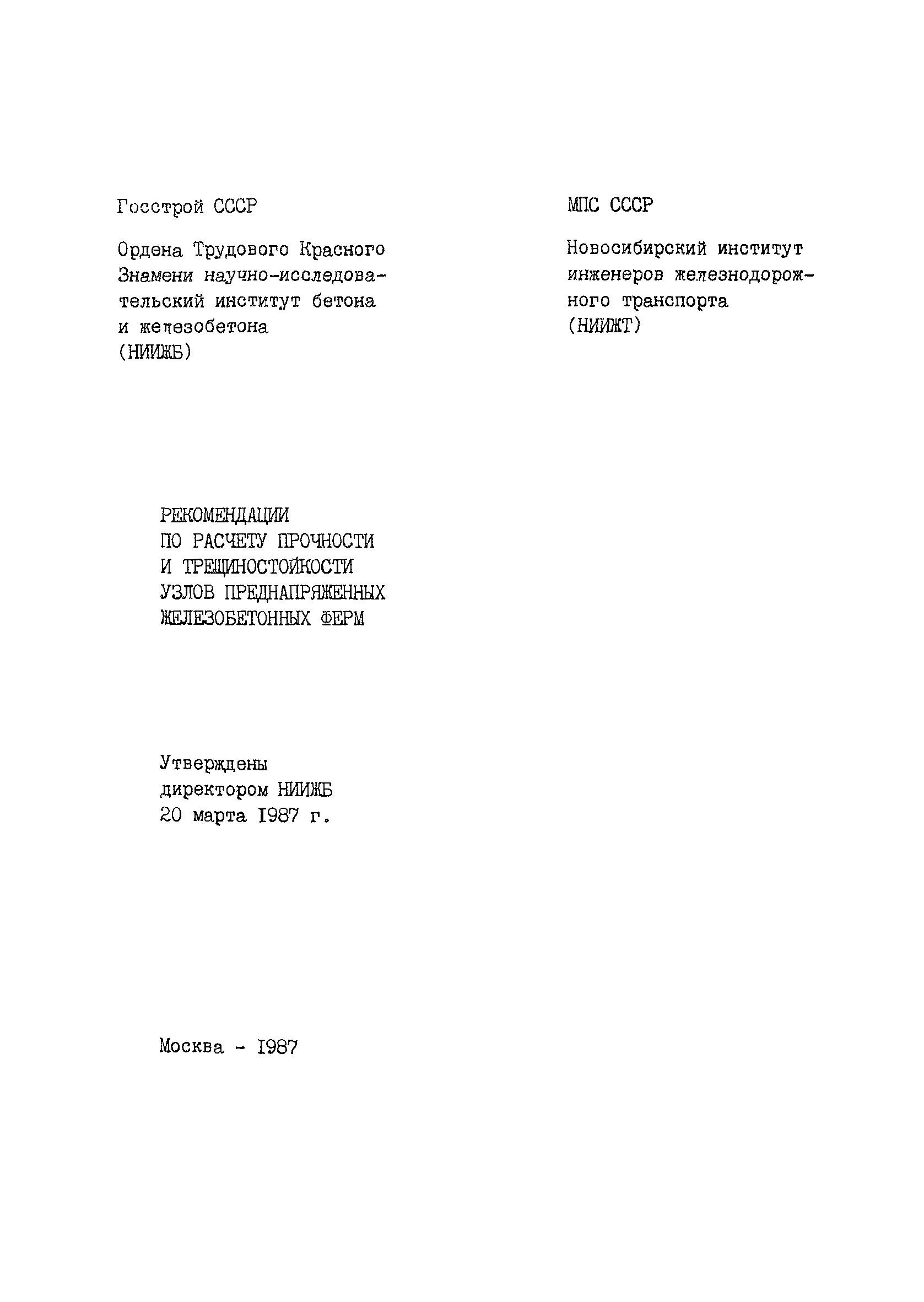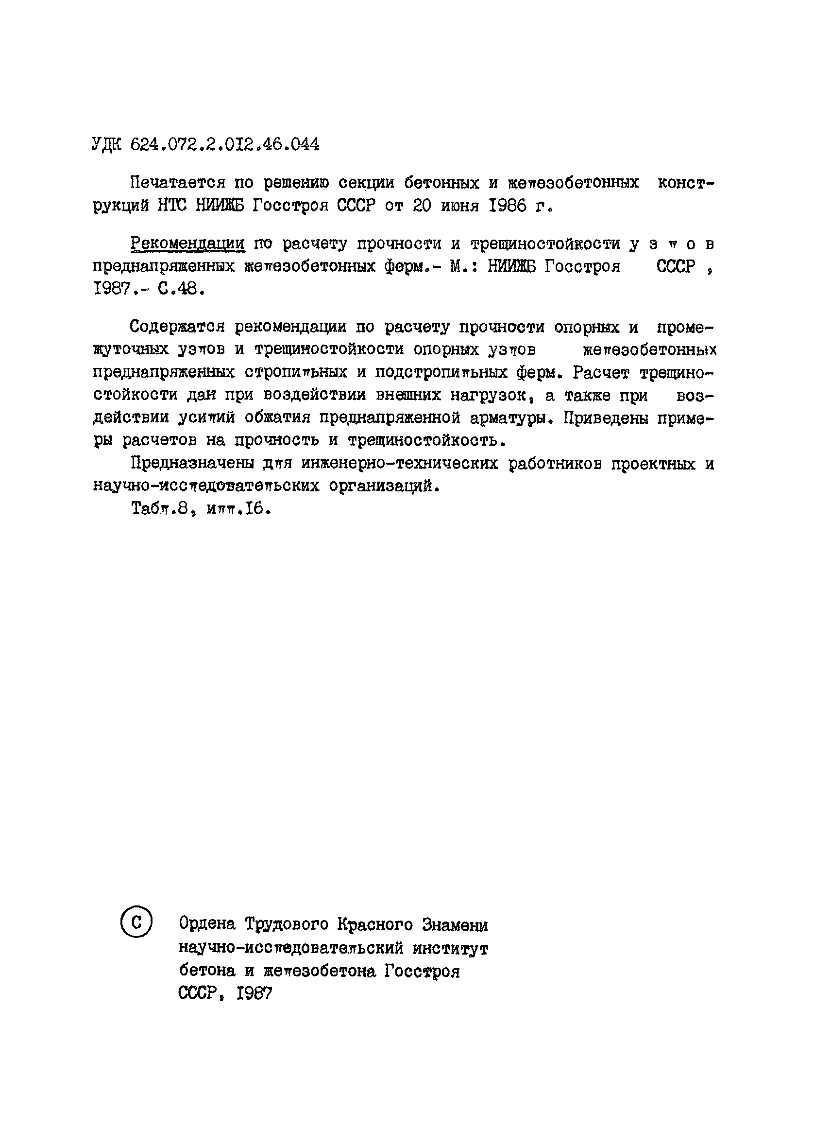 | Название рус.: | Рекомендации по расчету прочности и трещиностойкости узлов преднапряженных железобетонных ферм |