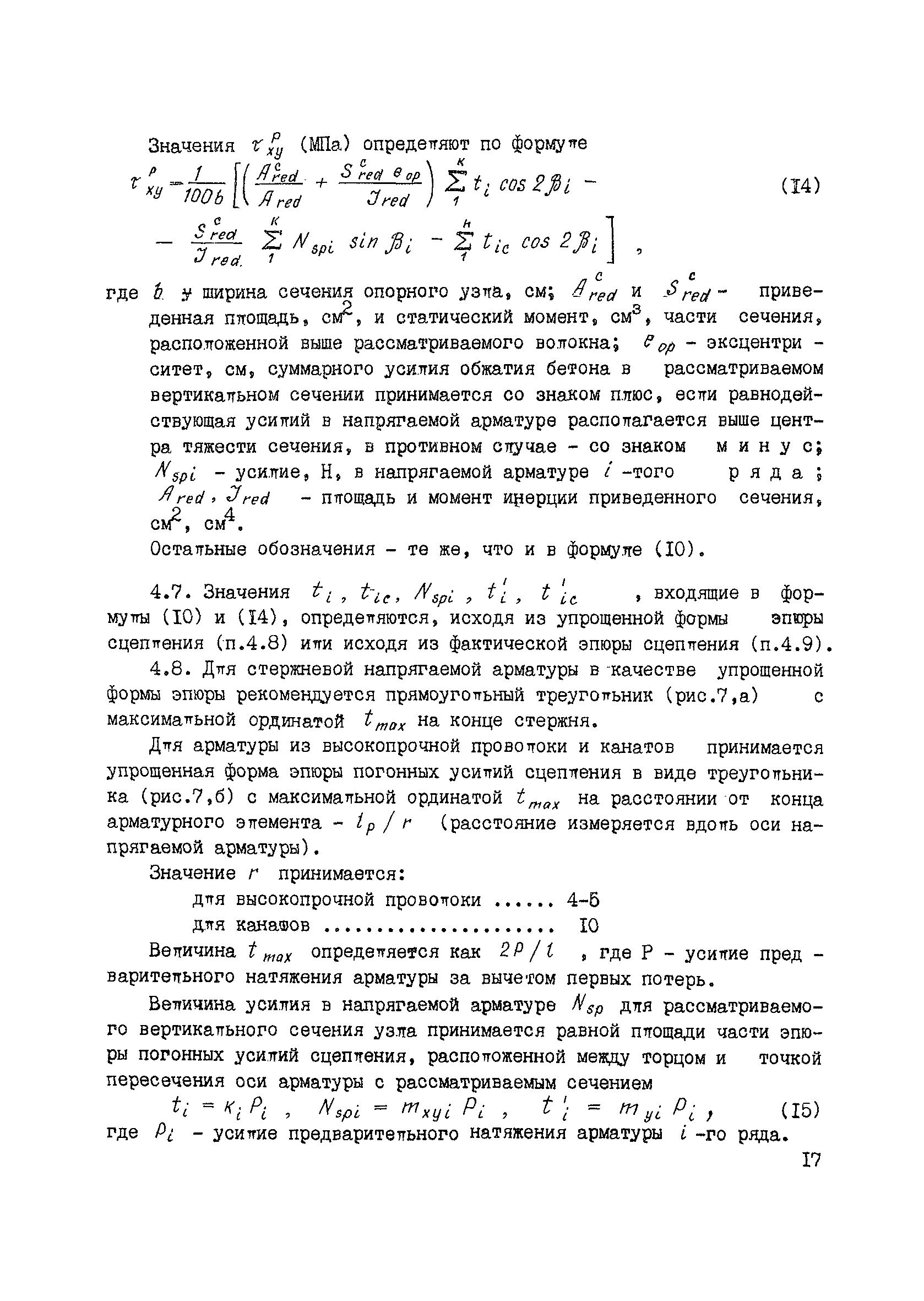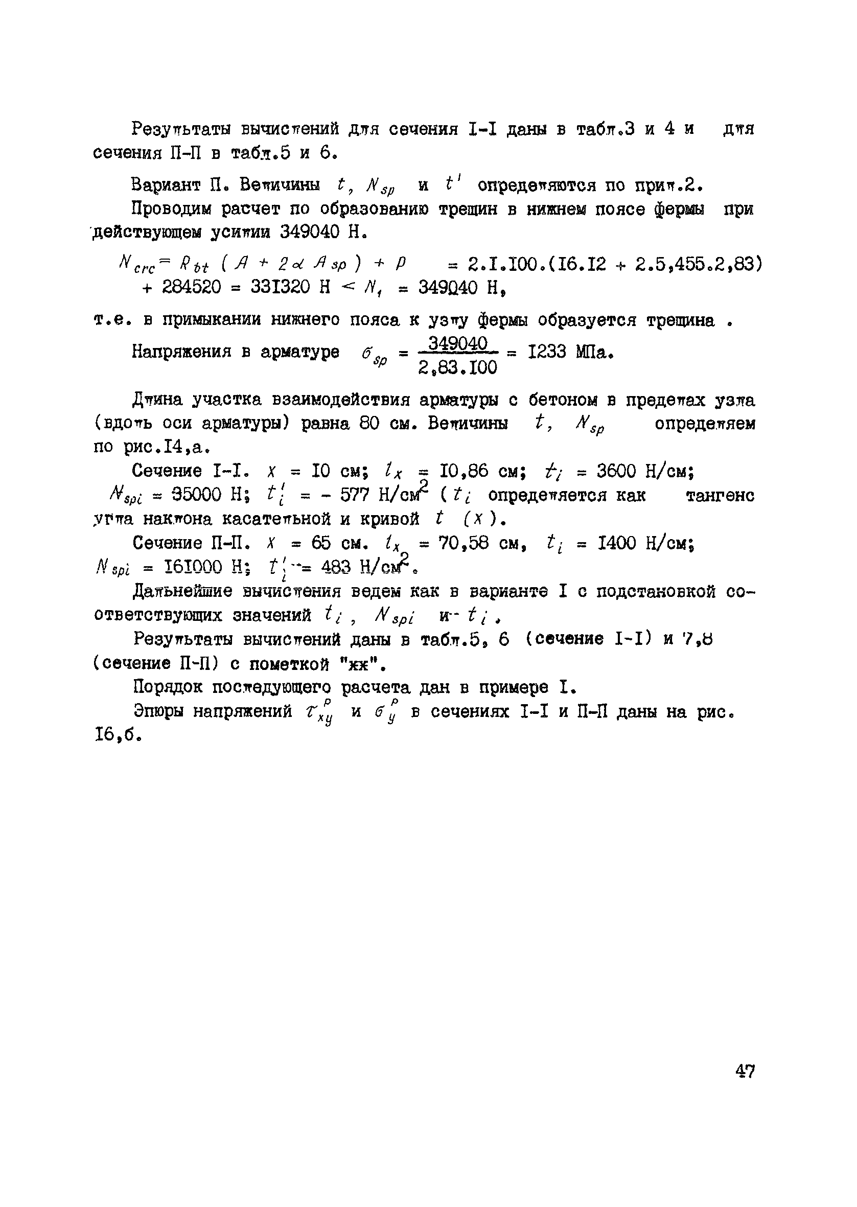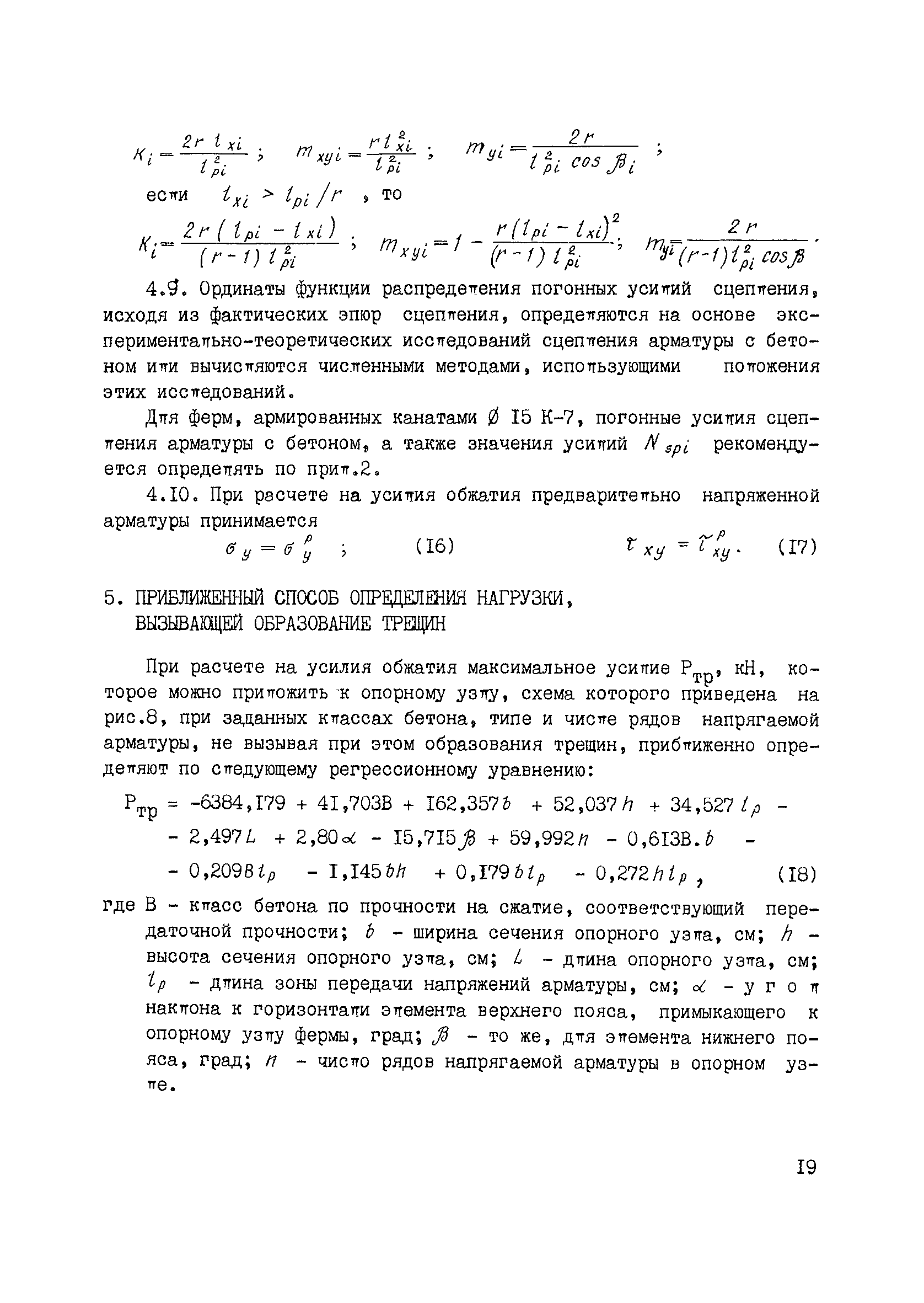 | Оглавление: | Предисловие 1. Общие положения 2. Расчет прочности опорных узлов 3. Расчет прочности промежуточных узлов 4. Расчет по образованию трещин 5. Приближенный способ определения нагрузки, вызывающей образование трещин 6. Конструирование узлов Приложение 1. Примеры расчета узлов по прочности Приложение 2. Определение величины погонных усилий сцепления t с бетоном и усилий в предварительно напряженной арматуре в фермах, армированных канатами диаметром 15 К-7 Приложение 3. Примеры расчета узлов по образованию трещин |