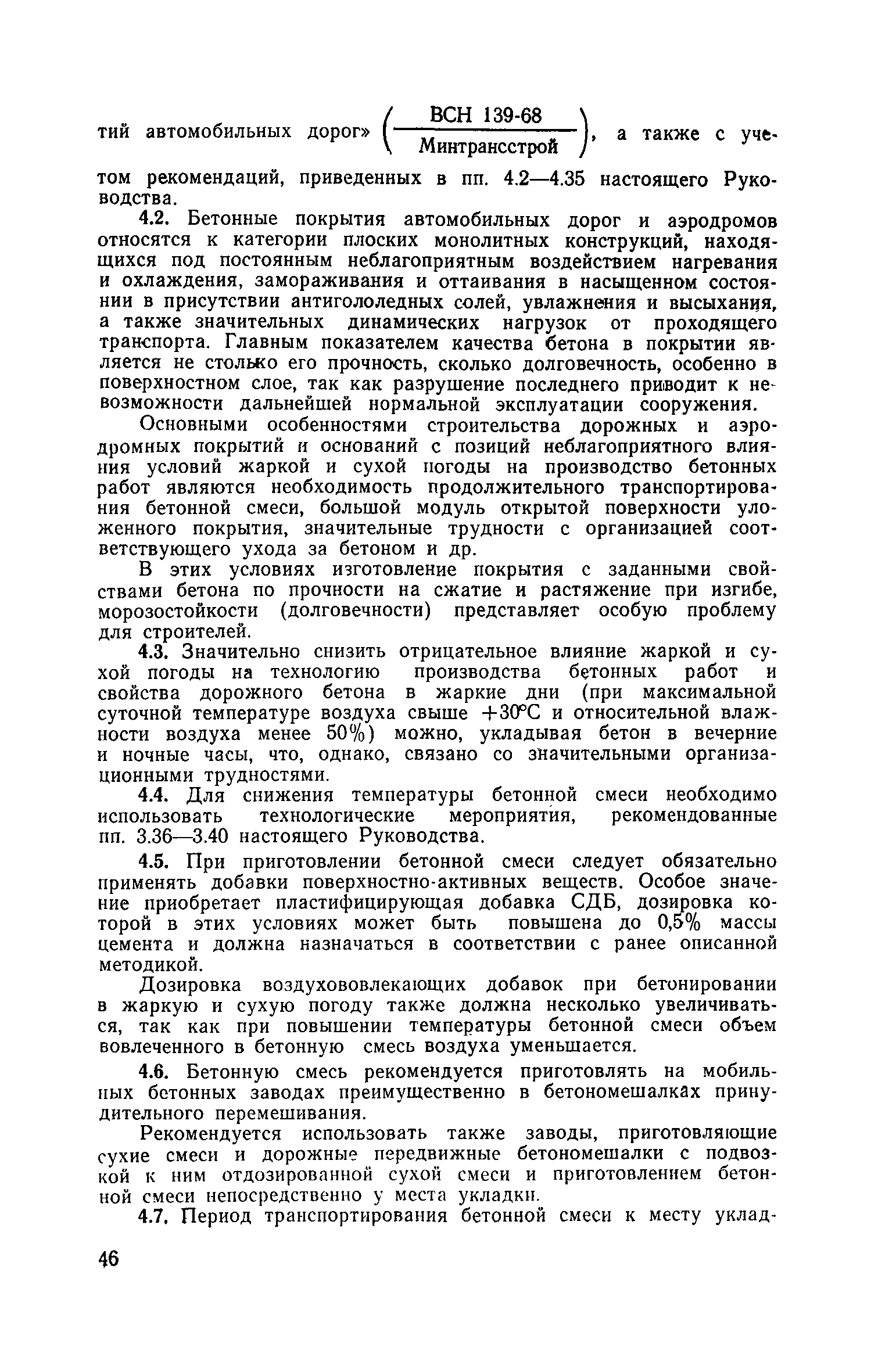 | Оглавление: | Предисловие 1. Общие положения 2. Рекомендации по выбору материалов для бетонов конструкций и сооружений, эксплуатируемых в районах с сухим жарким климатом 3. Правила производства бетонных работ в жаркую и сухую погоду 4. Особенности производства бетонных работ при строительстве дорожных и аэродромных покрытий, различных гидротехнических и специальных промышленных сооружений в жаркую и сухую погоду Приложения |