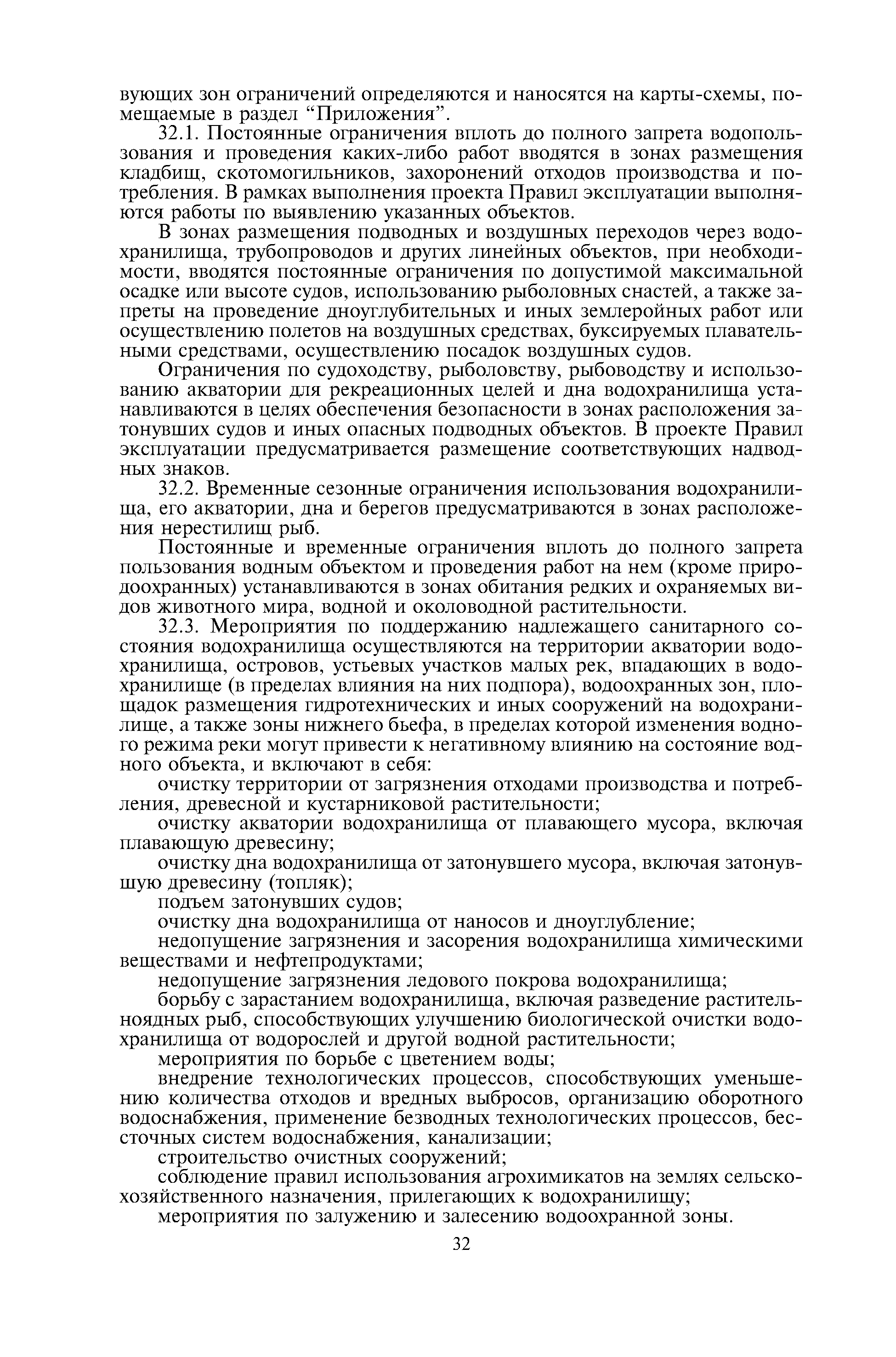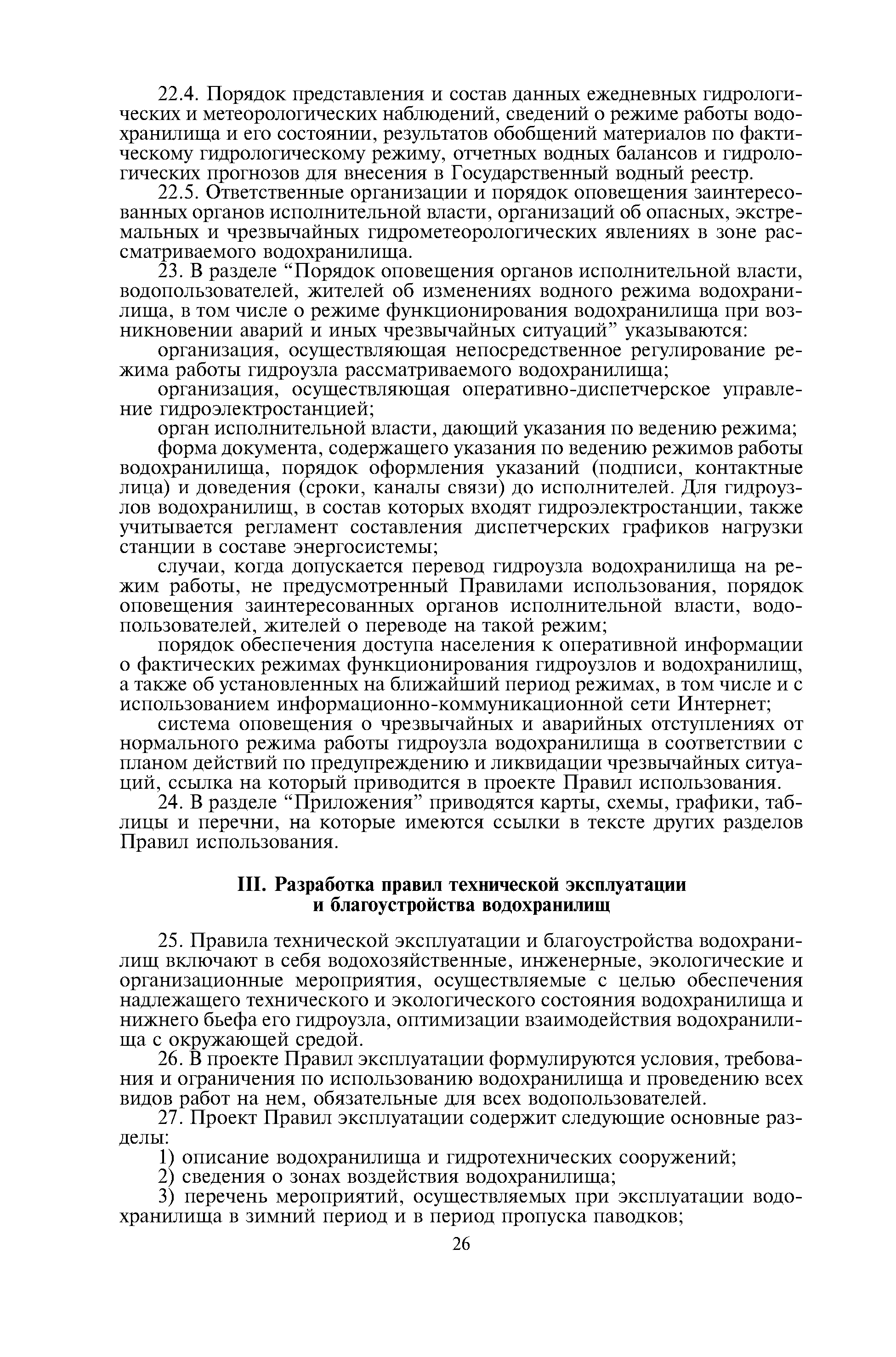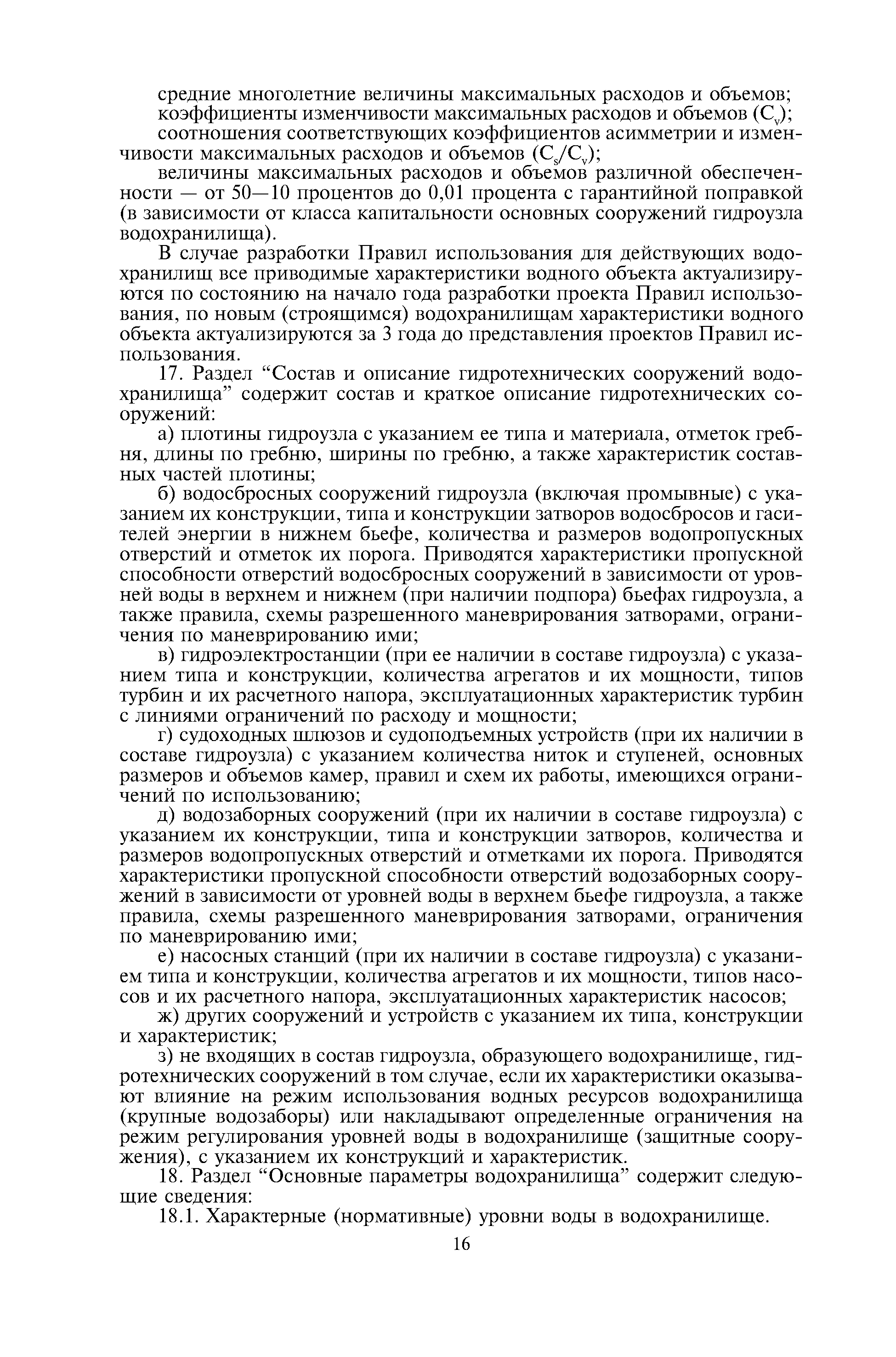 | Оглавление: | I. Общие положения II. Разработка правил использования водных ресурсов водохранилищ III. Разработка правил технической эксплуатации и благоустройства водохранилищ Приложение 1 Рекомендации по учету особенностей использования водохранилищ в зависимости от вида водопользования Приложение 2 Рекомендации по расчетному обоснованию Правил использования Приложение 3 Типы водохранилищ по частным признакам Приложение 4 Способы промывки водохранилищ |