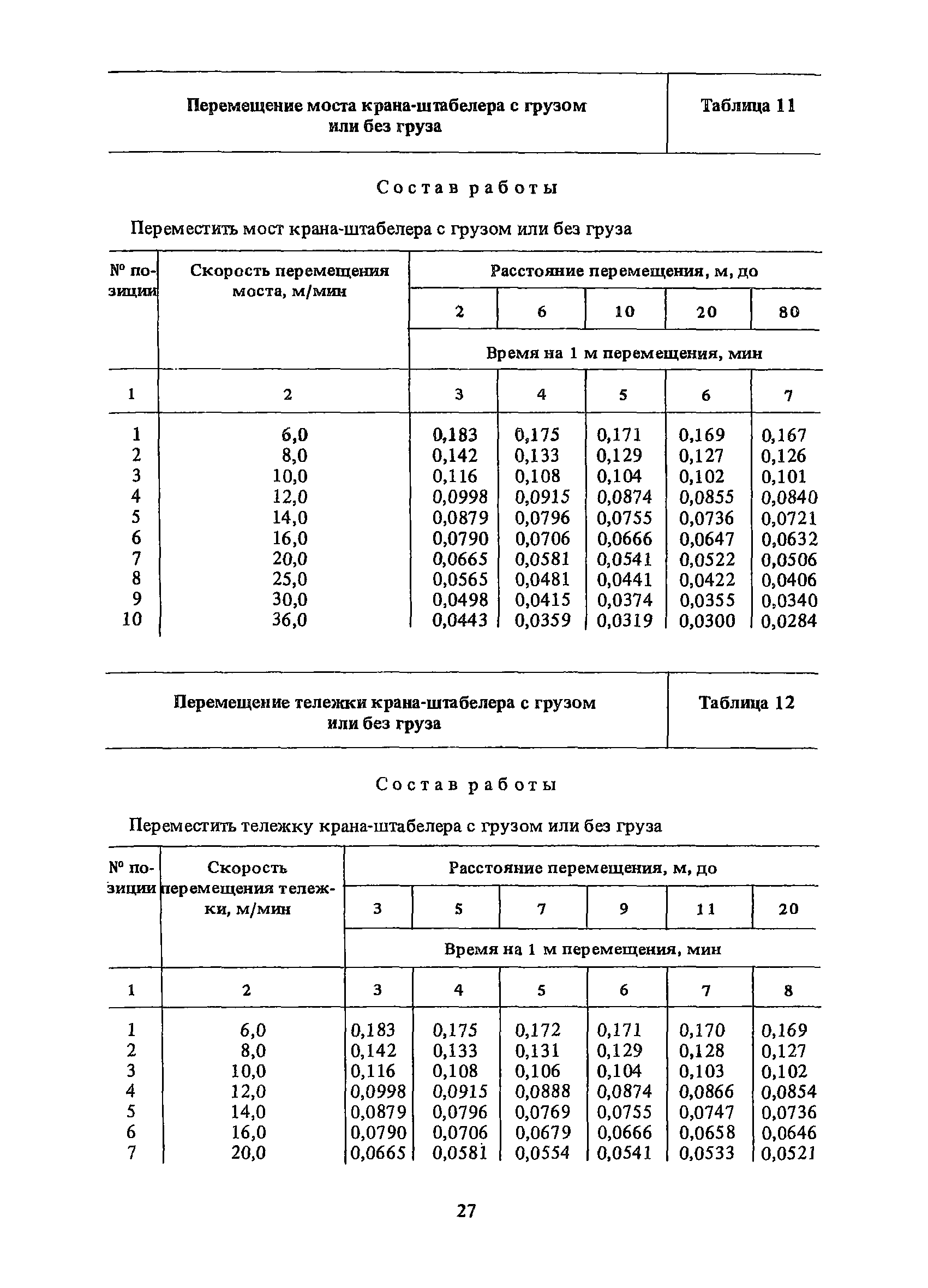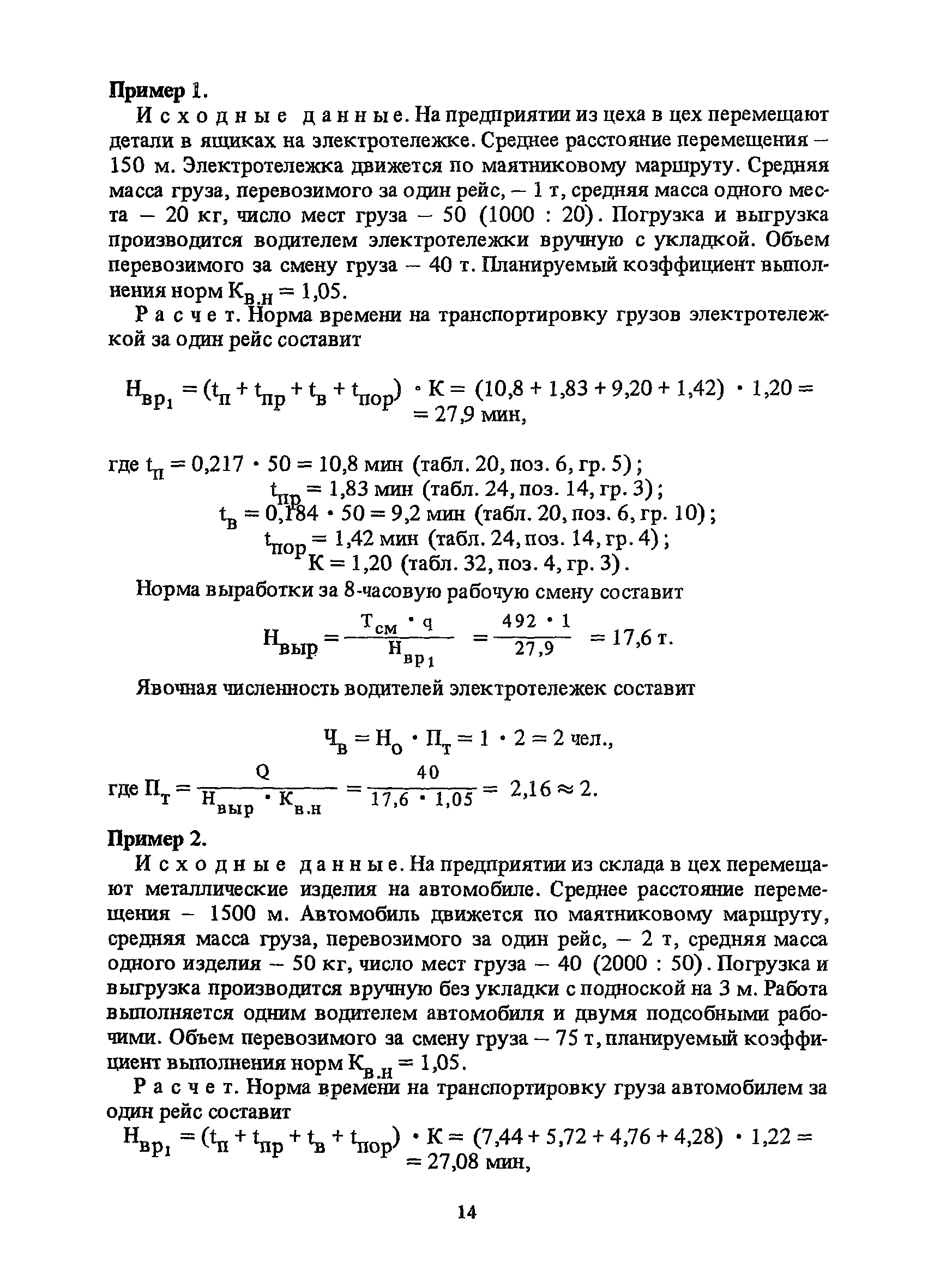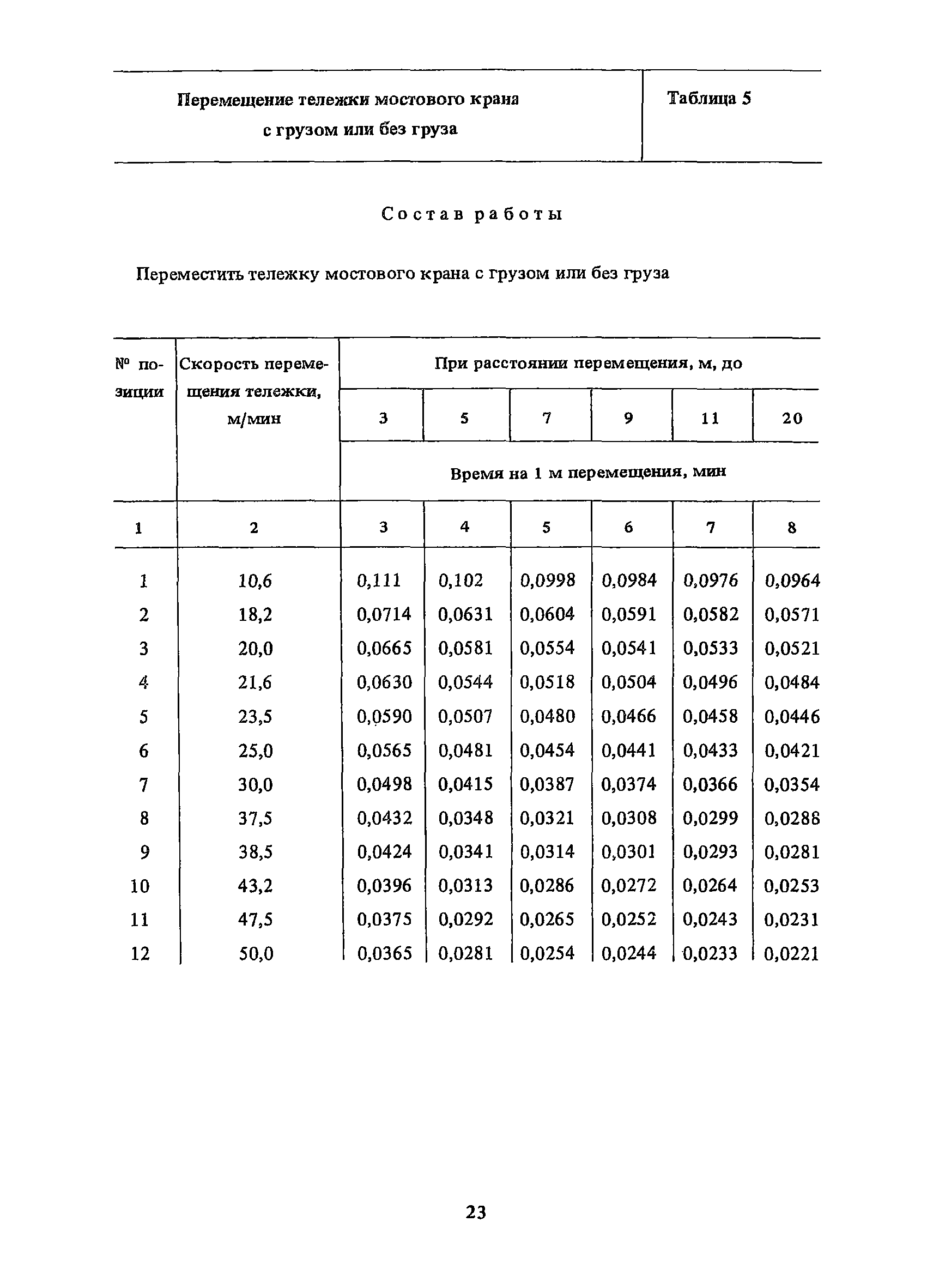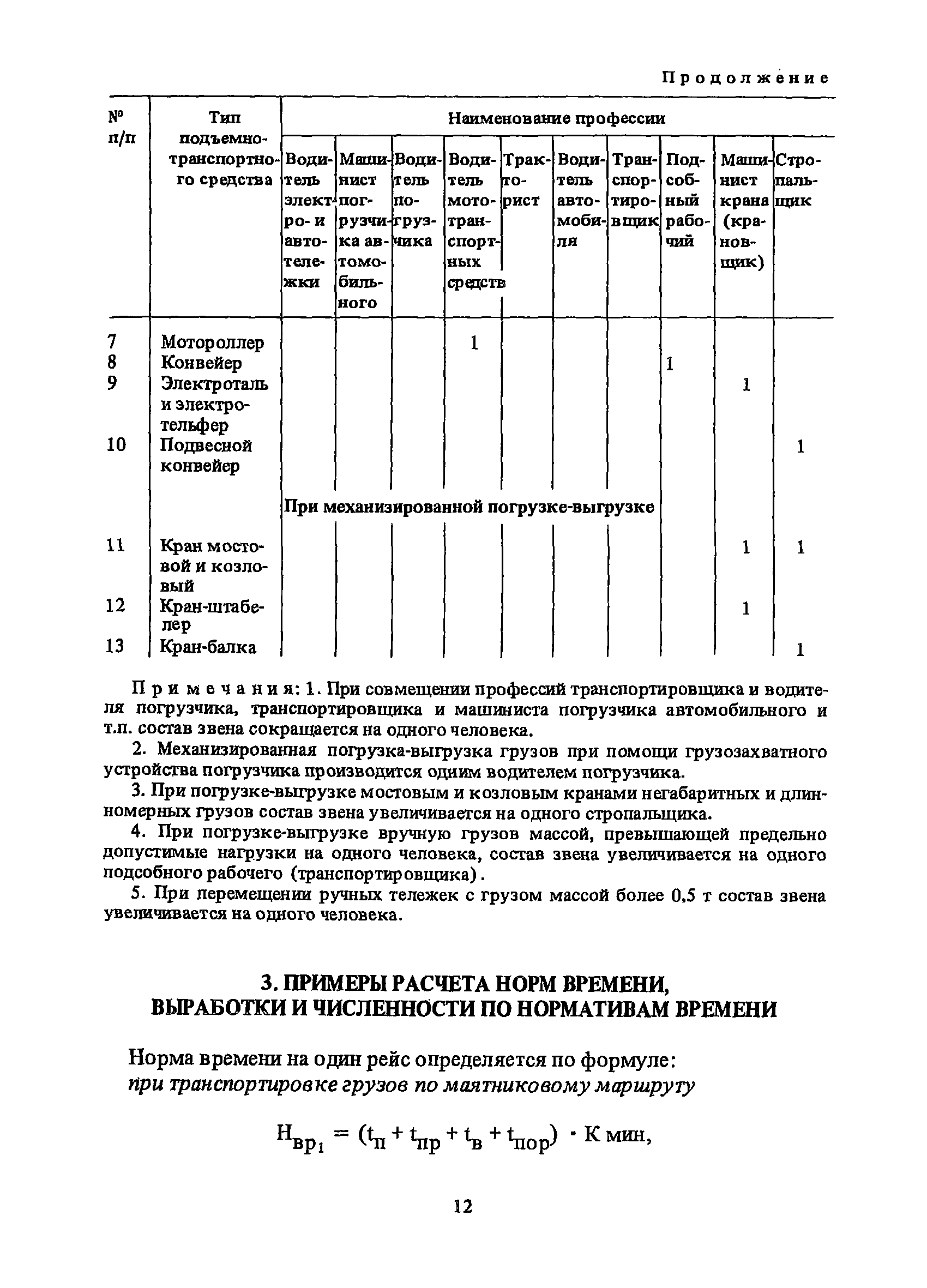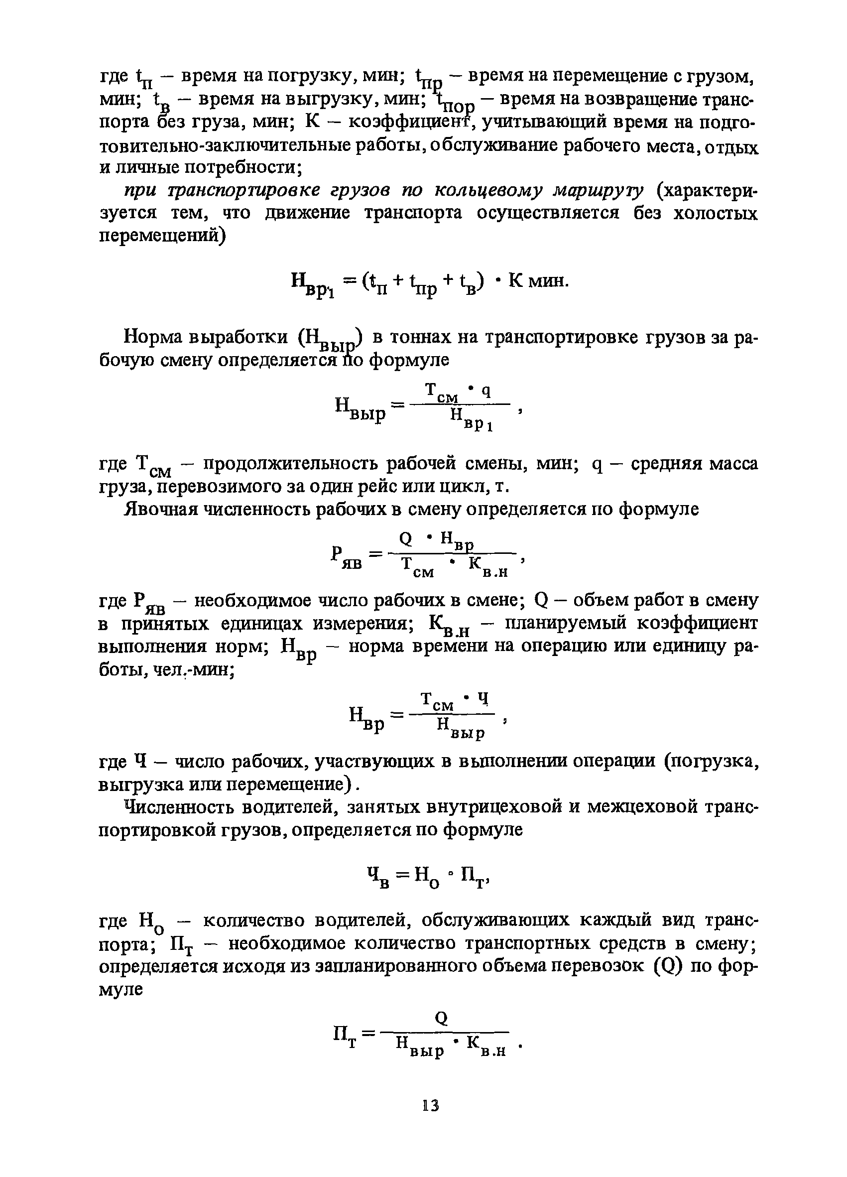 Нормативы времени на внутрицеховую и межцеховую транспортировку грузов| Статус: | утратил силу | | Название рус.: | Нормативы времени на внутрицеховую и межцеховую транспортировку грузов | | Дата добавления в базу: | 01.09.2013 | | Дата актуализации: | 01.01.2021 | | Область применения: | Нормативы времени разработаны на выполнение операций по погрузке, выгрузке, застропке и перемещению грузов внутрипроизводственным (внутрицеховым и межцеховым) транспортом, связанным непосредственно со сферой производства в рамках одного предприятия. Нормативы времени предназначены для расчета технически обоснованных норм времени (выработки) при нормировании труда рабочих-сдельщиков, установления нормированных заданий рабочим-повременщикам, а также дни расчета численности рабочих, занятых внутрицеховой и межцеховой транспортировкой грузов. | | Оглавление: | 1. Общая часть 2. Организация труда 3. Примеры расчета норм времени, выработки и численности по нормативам времени 4. Нормативная часть Таблица 1. Застропка и отстропка груза грузозахватным устройством Таблица 2. Перемещение груза мостовым краном Таблица 3. Перемещение мостового крана без груза Таблица 4. Застропка, отстропка грузов и перемещение их мостовыми кранами Таблица 5. Перемещение тележки мостового крана с грузом или без груза Таблица 6. Перемещение груза козловым краном Таблица 7. Перемещение козлового крана без груза Таблица 8. Перемещение тележки козлового крана с грузом или без груза Таблица 9. Захват и установка груза краном-штабелером Таблица 10. Поворот колонны крана-штабелера с грузом или без груза Таблица 11. Перемещение моста крана-штабелера с грузом или без груза Таблица 12. Перемещение тележки крана-штабелера с грузом или без груза Таблица 13. Подъем или опускание вил крана-штабелера Таблица 14. Перемещение электроталей (электротельферов) с грузом и без груза Таблица 15. Перемещение ручной тали с грузом и без груза Таблица 16. Перемещение передаточной тележки грузоподъемностью 5 т Таблица 17. Перемещение приводных рельсовых тележек Таблица 18. Перемещение груза по роликовому конвейеру вручную Таблица 19. Навешивание на подвесной конвейер и снятие груза вручную Таблица 20. Погрузка или выгрузка грузов вручную Таблица 21. Перемещение ручных тележек с грузом Таблица 22. Перемещение ручных тележек без груза Таблица 23. Перемещение ручных тележек с грузом и без груза Таблица 24. Перемещение электротележек, автотележек и мотороллера Таблица 25. Перемещение авто- и электропогрузчиков Таблица 26. Перемещение колесного трактора с прицепной тележкой Таблица 27. Перемещение грузового автомобиля Таблица 28. Перемещение подъемников по монорельсу вручную Таблица 29. Погрузка или выгрузка в подъемник (лифт) транспортного средства Таблица 30. Застропка, отстропка и перемещение грузов поворотной кран-балкой Таблица 31. Оформление сопроводительных документов при выполнении транспортных работ Таблица 32. Время на подготовительно-заключительные работы, обслуживание рабочего места, отдыхи личные потребности Приложение 1. Характеристика применяемых подъемно-транспортных средств Приложение 2. Универсальные сборные грузозахватные приспособления Приложение 3. Технические характеристики основных типов производственной тары внутризаводского применения | | Разработан: | Министерство энергетики и электрификации СС