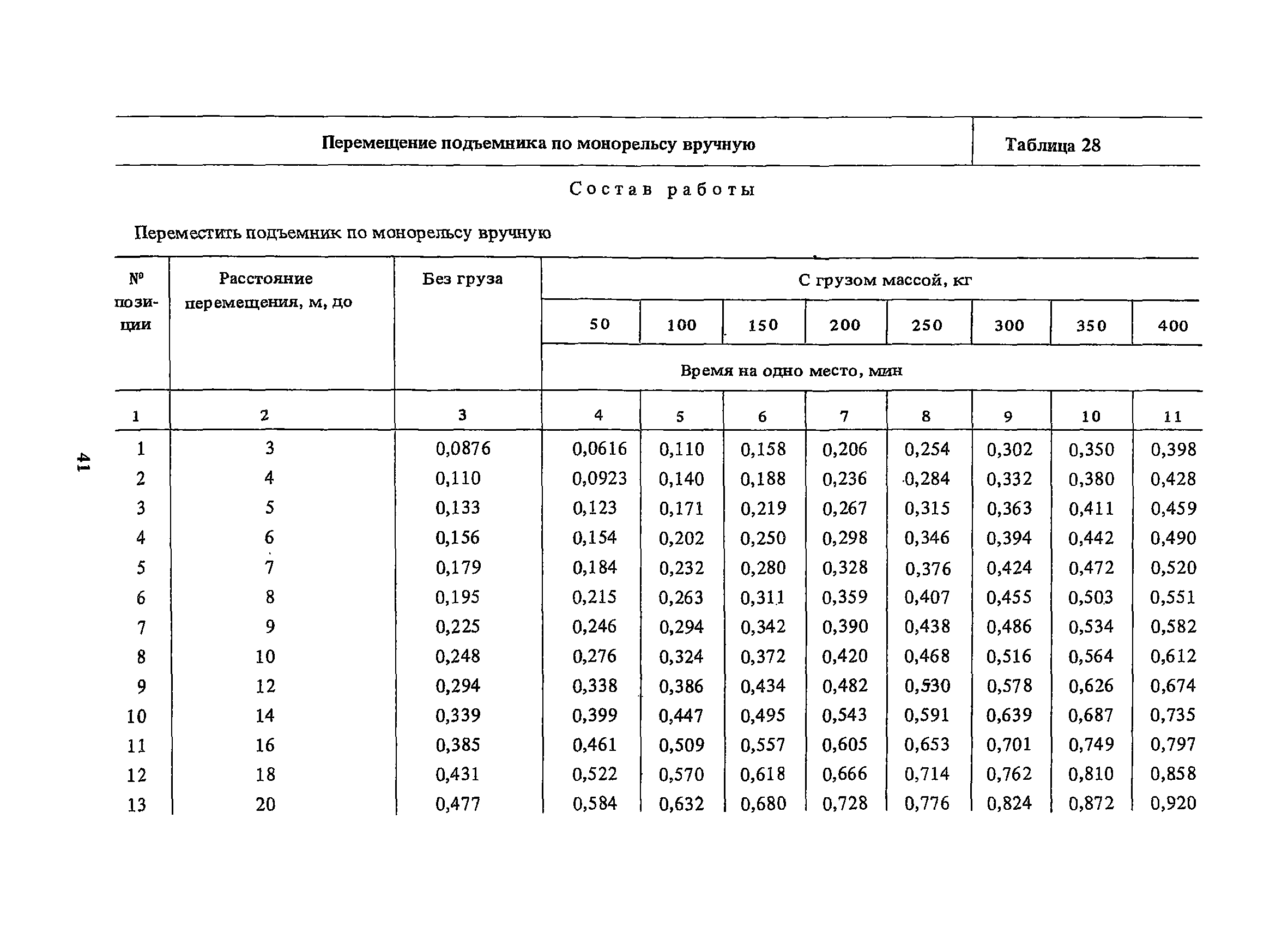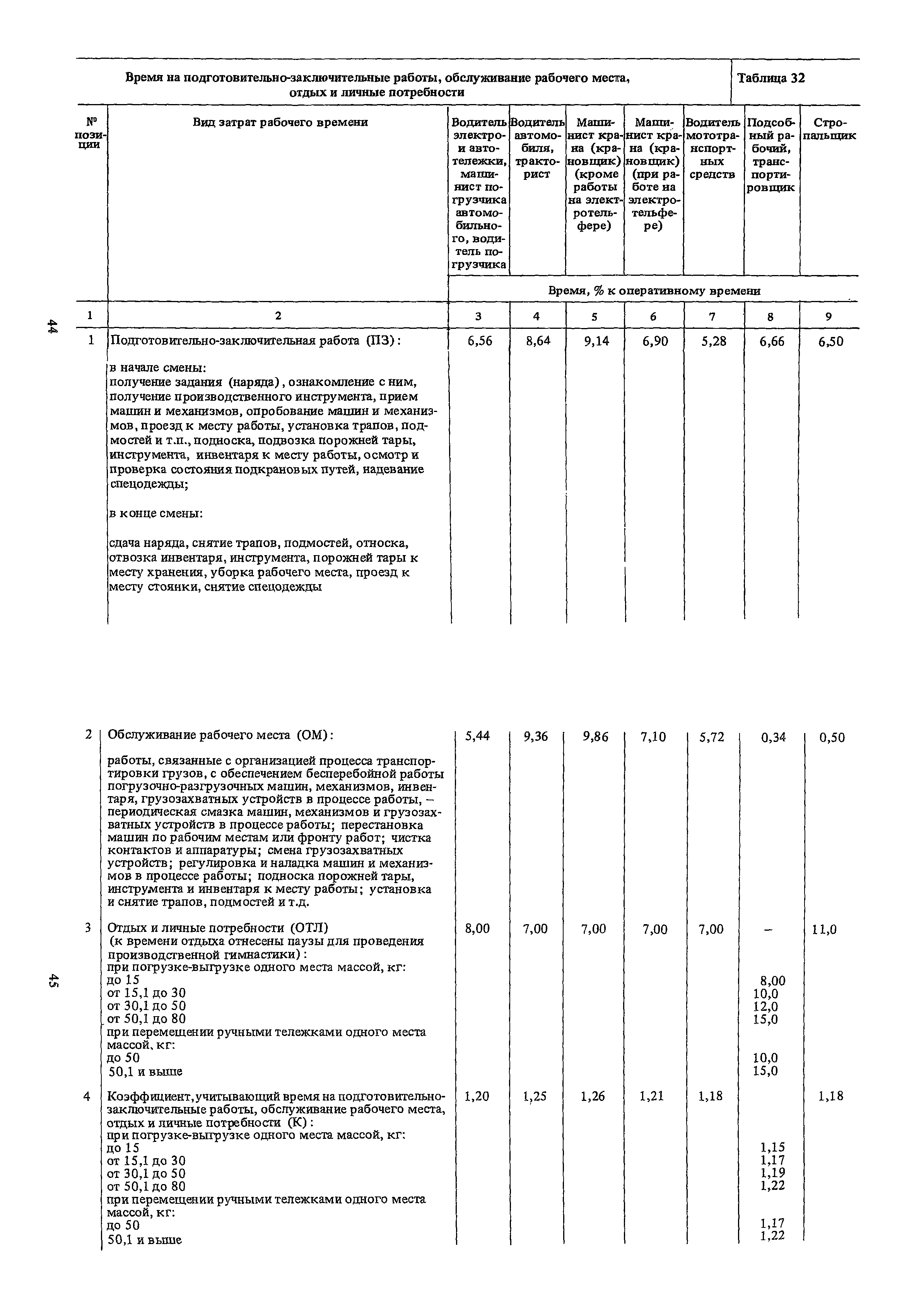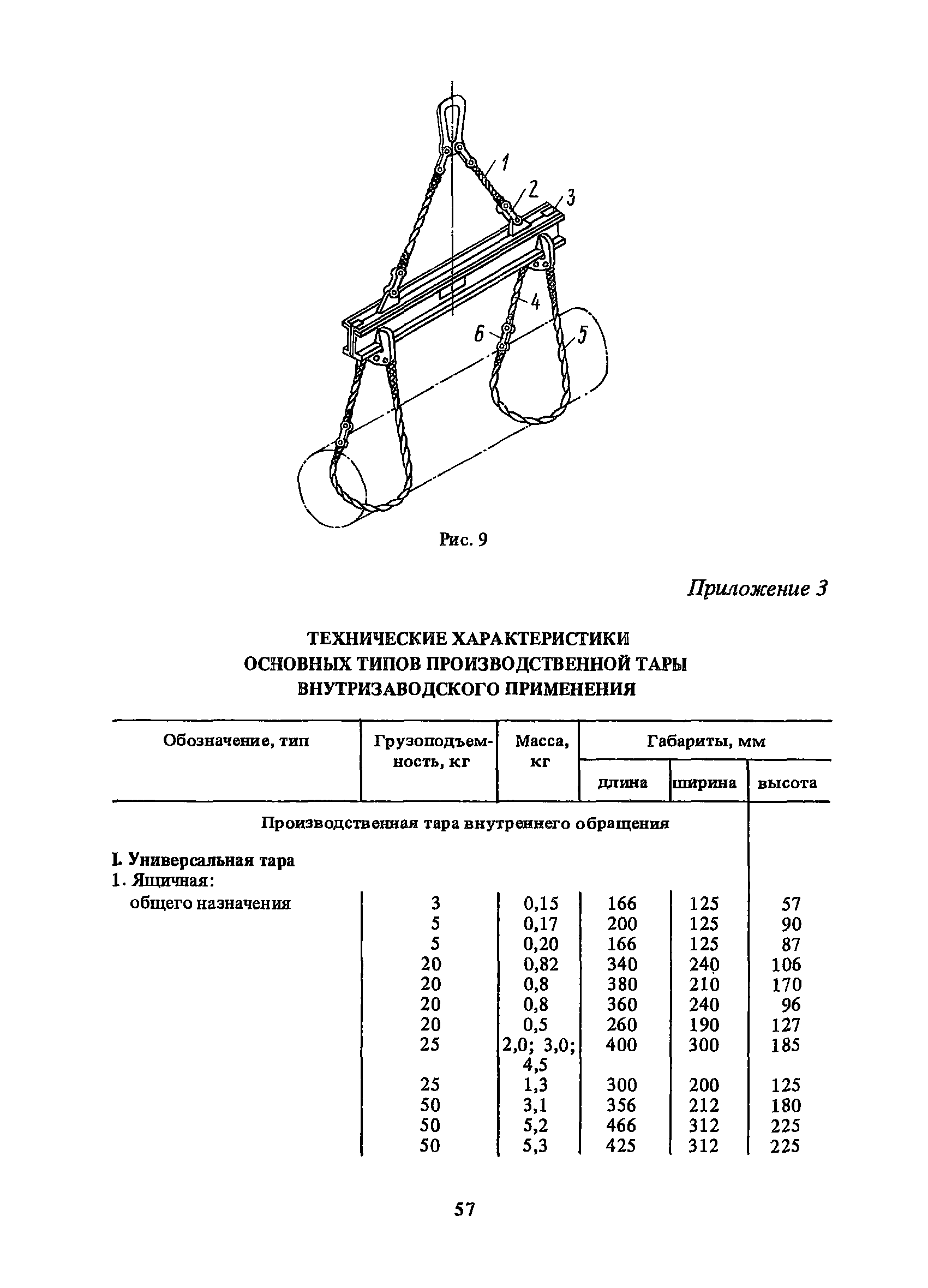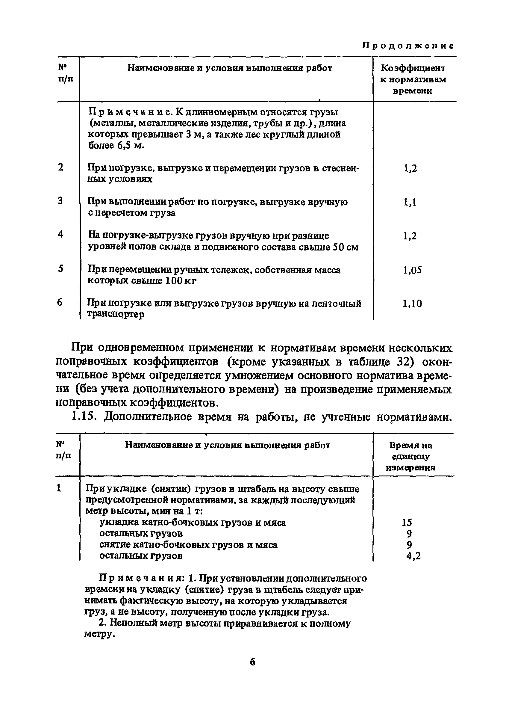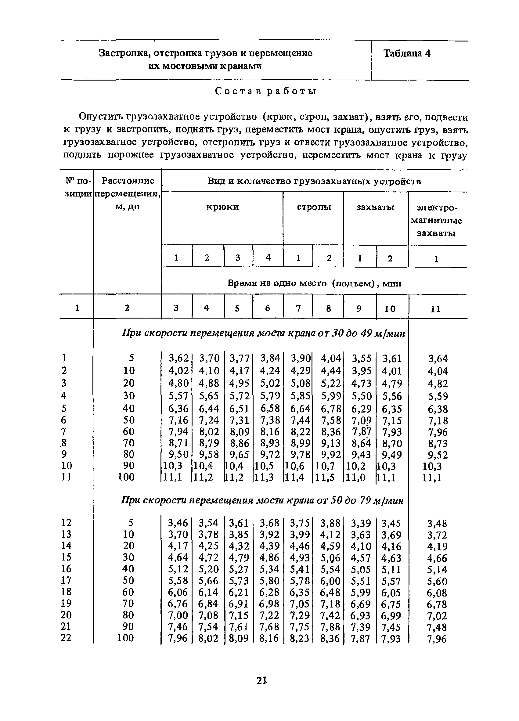 Нормативы времени на внутрицеховую и межцеховую транспортировку грузов| Статус: | утратил силу | | Название рус.: | Нормативы времени на внутрицеховую и межцеховую транспортировку грузов | | Дата добавления в базу: | 01.09.2013 | | Дата актуализации: | 01.01.2021 | | Область применения: | Нормативы времени разработаны на выполнение операций по погрузке, выгрузке, застропке и перемещению грузов внутрипроизводственным (внутрицеховым и межцеховым) транспортом, связанным непосредственно со сферой производства в рамках одного предприятия. Нормативы времени предназначены для расчета технически обоснованных норм времени (выработки) при нормировании труда рабочих-сдельщиков, установления нормированных заданий рабочим-повременщикам, а также дни расчета численности рабочих, занятых внутрицеховой и межцеховой транспортировкой грузов. | | Оглавление: | 1. Общая часть 2. Организация труда 3. Примеры расчета норм времени, выработки и численности по нормативам времени 4. Нормативная часть Таблица 1. Застропка и отстропка груза грузозахватным устройством Таблица 2. Перемещение груза мостовым краном Таблица 3. Перемещение мостового крана без груза Таблица 4. Застропка, отстропка грузов и перемещение их мостовыми кранами Таблица 5. Перемещение тележки мостового крана с грузом или без груза Таблица 6. Перемещение груза козловым краном Таблица 7. Перемещение козлового крана без груза Таблица 8. Перемещение тележки козлового крана с грузом или без груза Таблица 9. Захват и установка груза краном-штабелером Таблица 10. Поворот колонны крана-штабелера с грузом или без груза Таблица 11. Перемещение моста крана-штабелера с грузом или без груза Таблица 12. Перемещение тележки крана-штабелера с грузом или без груза Таблица 13. Подъем или опускание вил крана-штабелера Таблица 14. Перемещение электроталей (электротельферов) с грузом и без груза Таблица 15. Перемещение ручной тали с грузом и без груза Таблица 16. Перемещение передаточной тележки грузоподъемностью 5 т Таблица 17. Перемещение приводных рельсовых тележек Таблица 18. Перемещение груза по роликовому конвейеру вручную Таблица 19. Навешивание на подвесной конвейер и снятие груза вручную Таблица 20. Погрузка или выгрузка грузов вручную Таблица 21. Перемещение ручных тележек с грузом Таблица 22. Перемещение ручных тележек без груза Таблица 23. Перемещение ручных тележек с грузом и без груза Таблица 24. Перемещение электротележек, автотележек и мотороллера Таблица 25. Перемещение авто- и электропогрузчиков Таблица 26. Перемещение колесного трактора с прицепной тележкой Таблица 27. Перемещение грузового автомобиля Таблица 28. Перемещение подъемников по монорельсу вручную Таблица 29. Погрузка или выгрузка в подъемник (лифт) транспортного средства Таблица 30. Застропка, отстропка и перемещение грузов поворотной кран-балкой Таблица 31. Оформление сопроводительных документов при выполнении транспортных работ Таблица 32. Время на подготовительно-заключительные работы, обслуживание рабочего места, отдыхи личные потребности Приложение 1. Характеристика применяемых подъемно-транспортных средств Приложение 2. Универсальные сборные грузозахватные приспособления Приложение 3. Технические характеристики основных типов производственной тары внутризаводского применения | | Разработан: | Министерство энергетики и электрификации СС