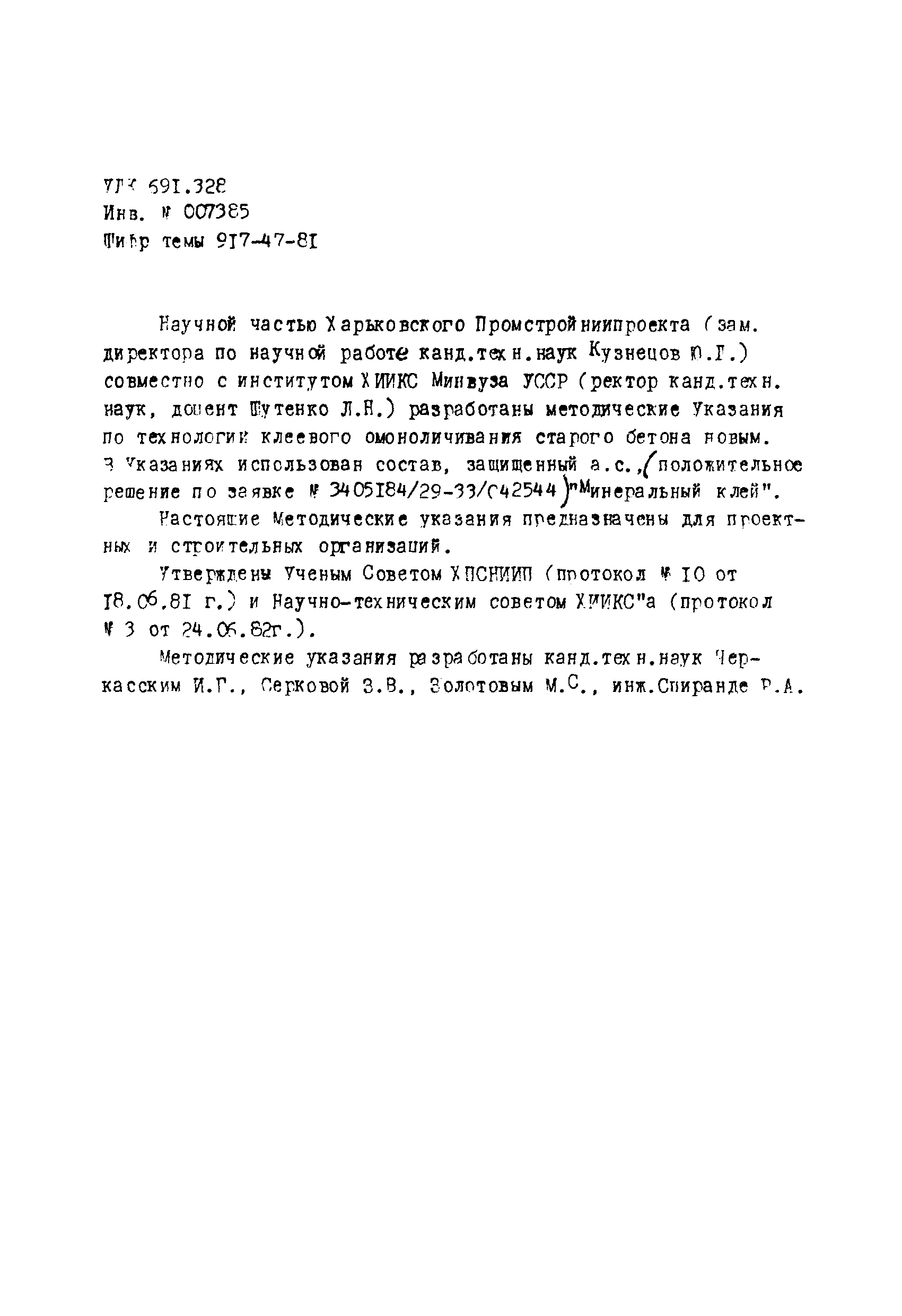 | Утверждён: | 18.06.1981 ХПСНИИП (10) 24.06.1982 ХИИКС Минвуза УССР (3)