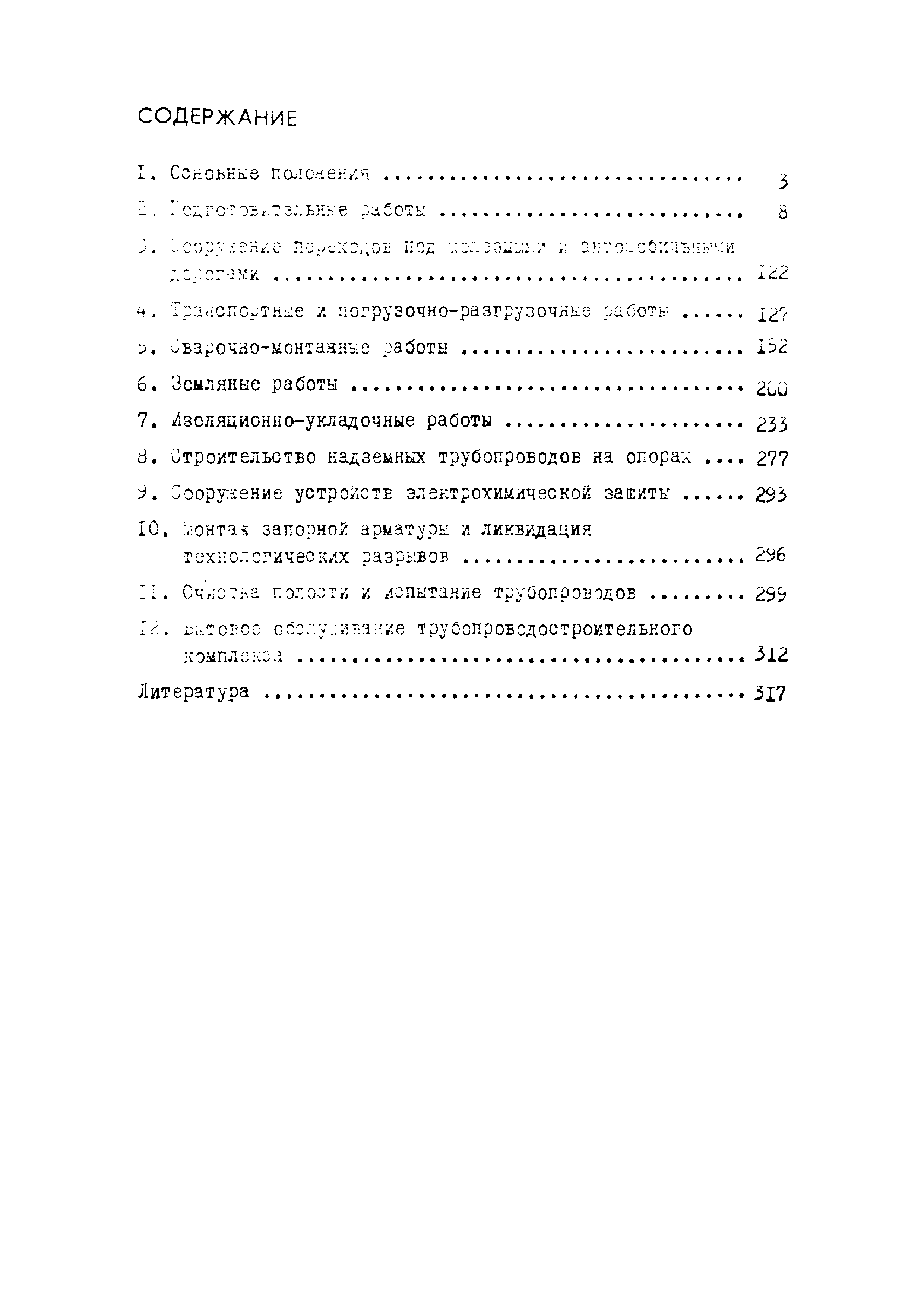 | Оглавление: | 1 Основные положения 2 Подготовительные работы 3 Сооружение переходов под железными и автомобильными дорогами 4 Транспортные и погрузочно-разгрузочные работы 5 Сварочно-монтажные работы 6 Земляные работы 7 Изоляционно-укладочные работы 8 Строительство надземных трубопроводов на опорах 9 Сооружение устройств электрохимической защиты 10 Монтаж запорной арматуры и ликвидация технологических разрывов 11 Очистка полости и испытание трубопроводов 12 Бытовое обслуживание трубопроводостроительного комплекса Литература |