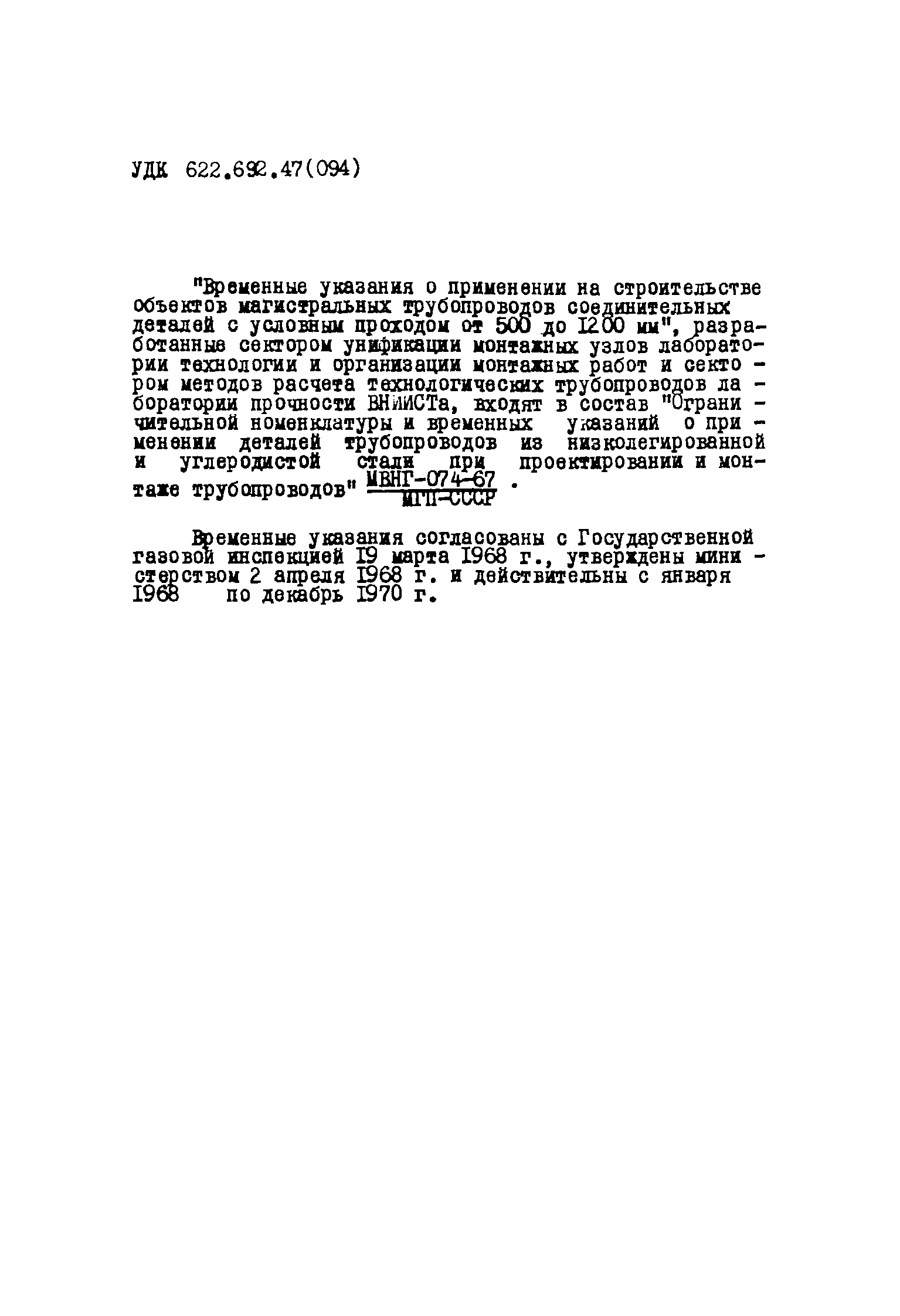 | Утверждён: | 02.04.1968 ВНИИСТ (VNIIST )
