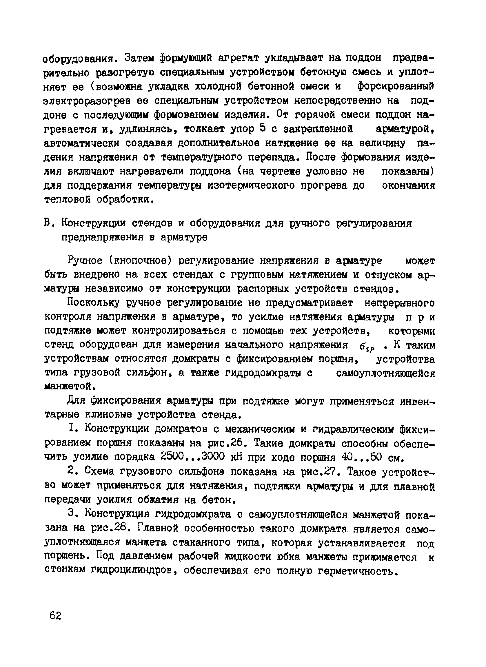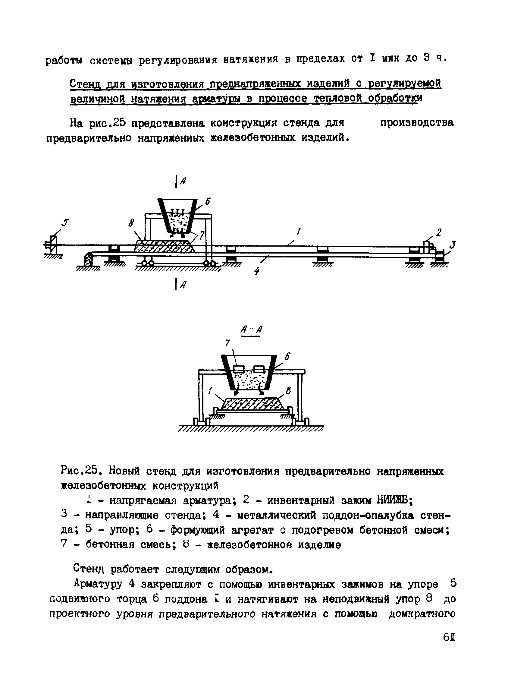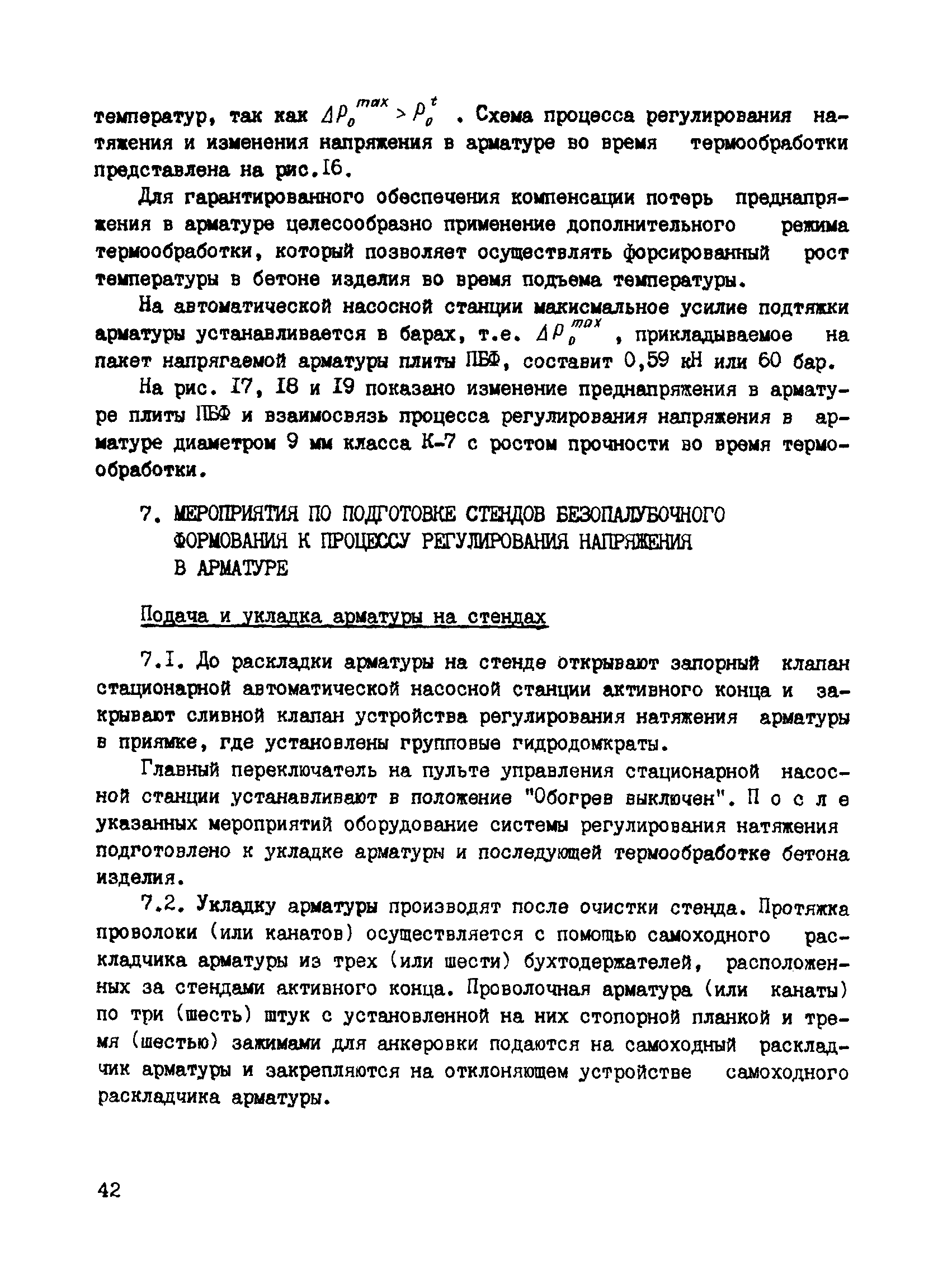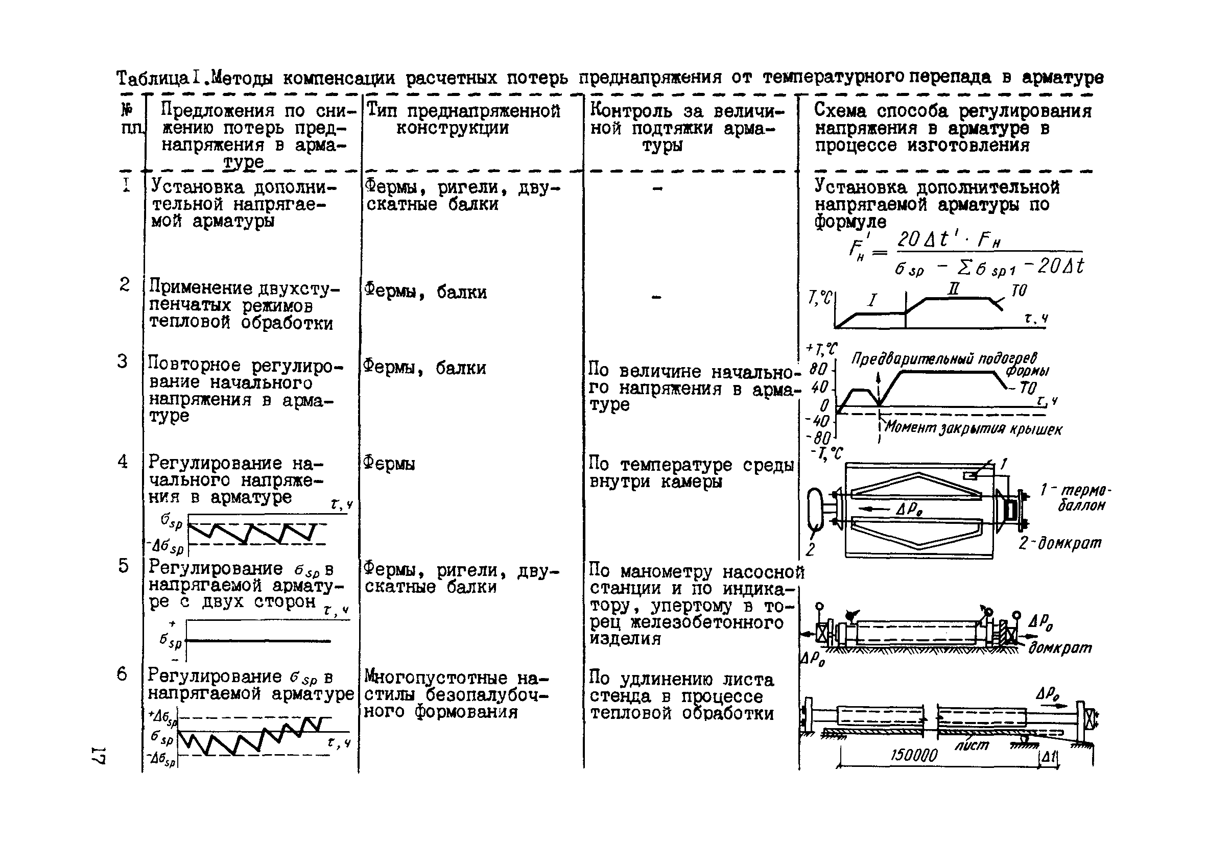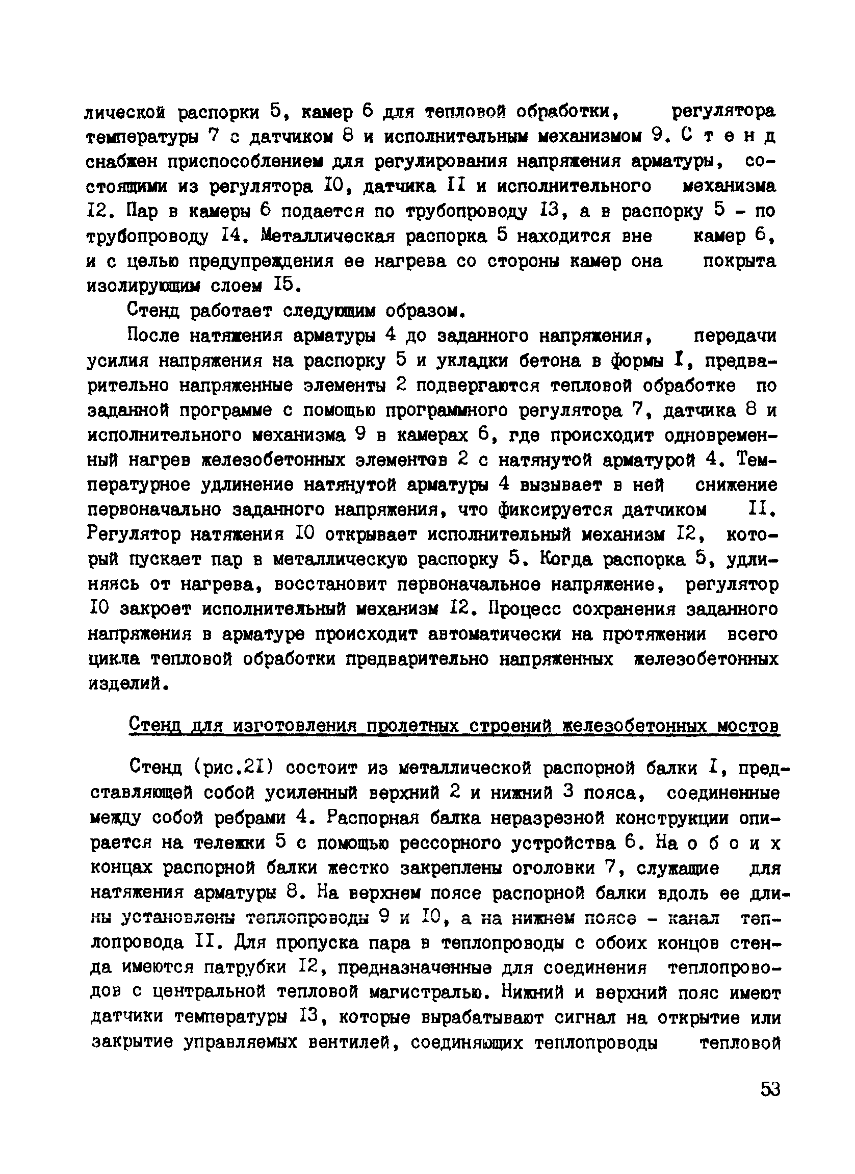 | Оглавление: | Предисловие 1. Общие положения и область применения 2. Процесс регулирования напряжения в арматуре 3. Виды стендовой технологии изготовления сборного железобетона, рекомендуемые для регулирования напряжения в арматуре 4. Аппаратура и оборудование 5. Режимы регулирования напряжения в арматуре 6. Примеры режимов регулирования напряжения 7. Мероприятия по подготовке стендов безопалубочного формования к процессу регулирования напряжения в арматуре 8. Экономическая эффективность регулирования напряжения в арматуре Приложение 1. Конструкции стендов для регулирования напряжения в арматуре в процессе изготовления железобетонных изделий Приложение 2. Требования к бетонной смеси для безопалубочного формования железобетонных конструкций Приложение 3. Справка об использовании НТД по настоящим рекомендациям |