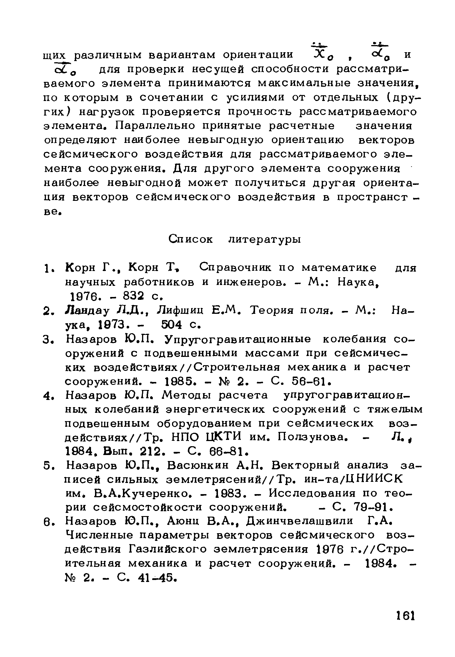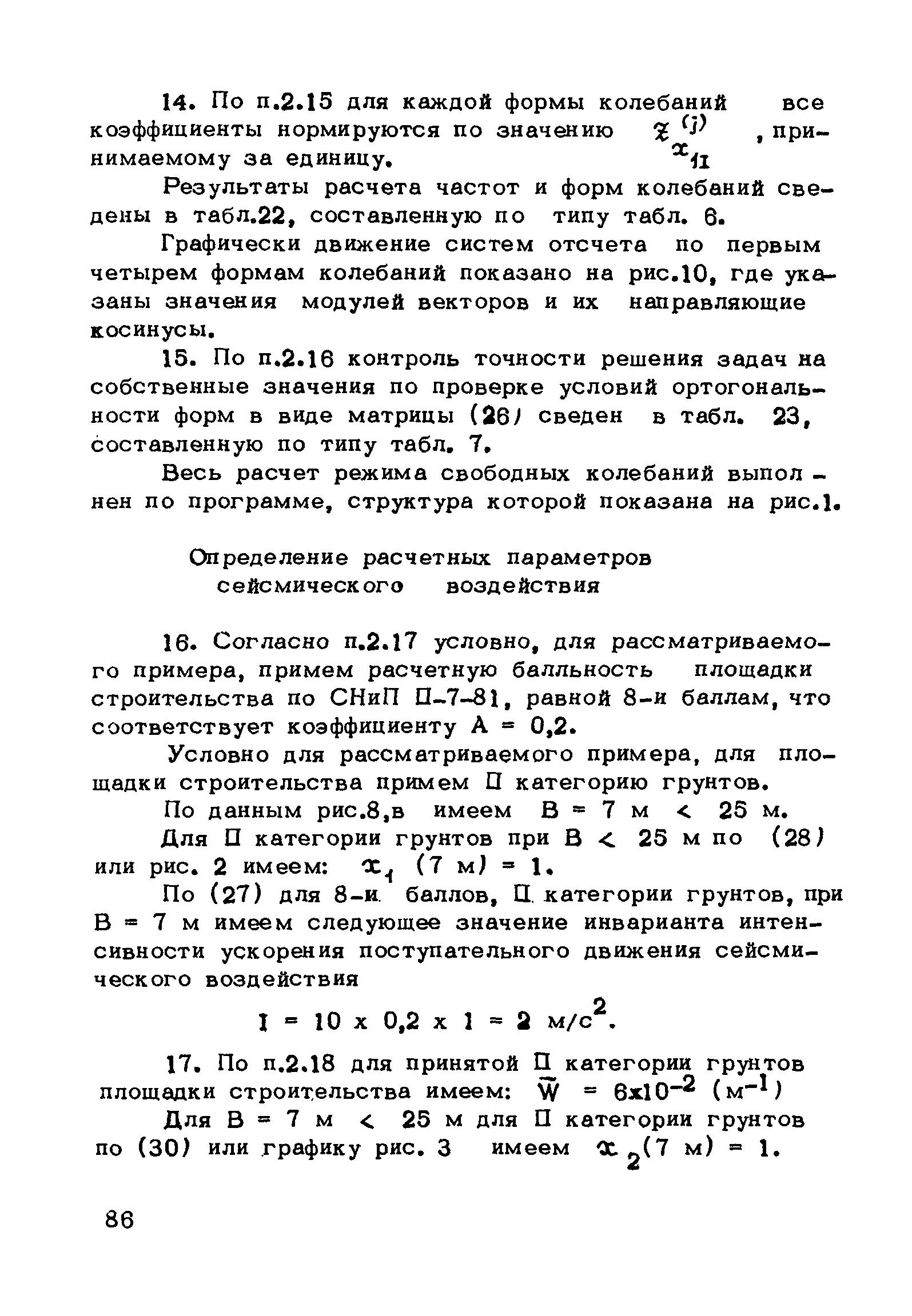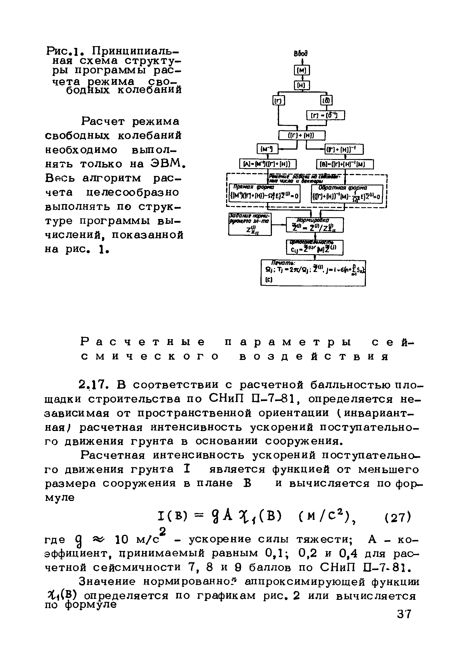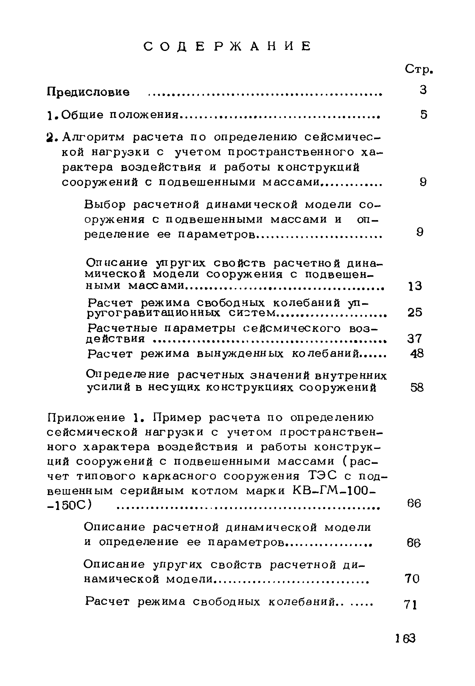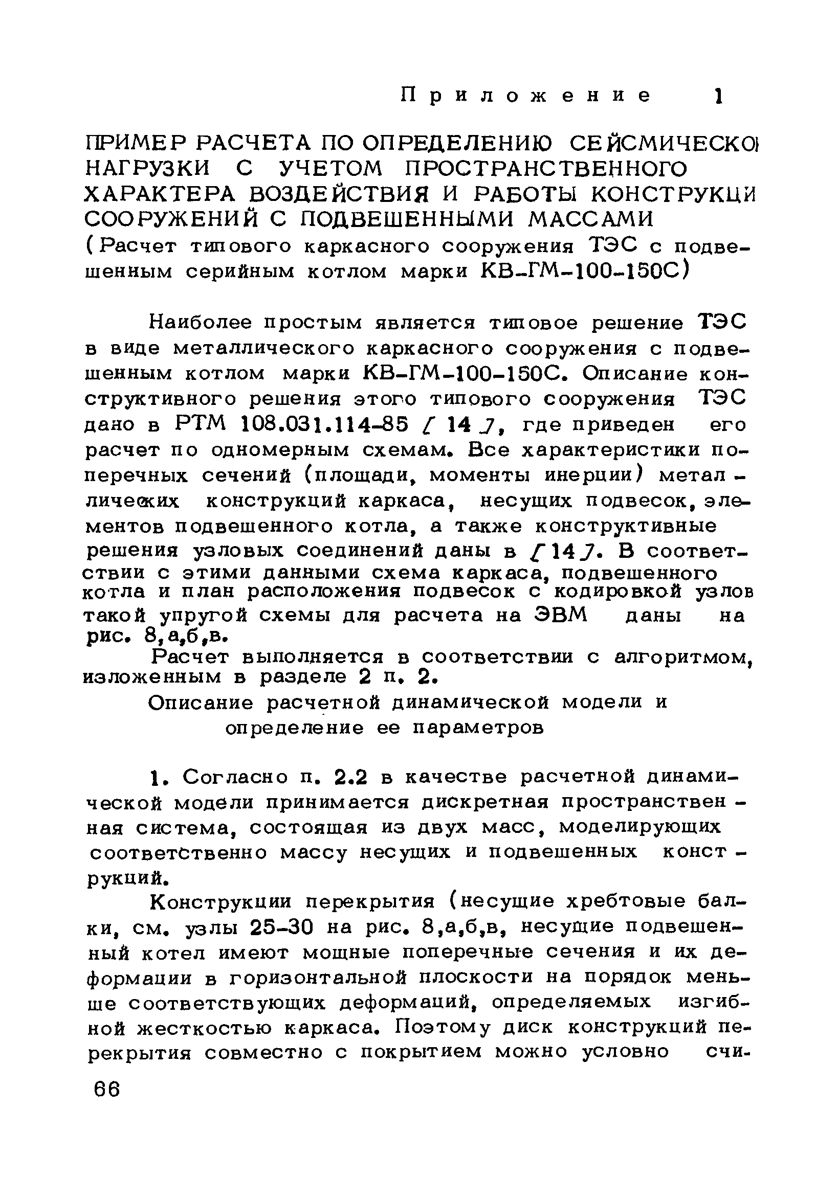| Оглавление: | Предисловие 1. Общие положения 2. Алгоритм расчета по определению сейсмической нагрузки с учетом пространственного характера воздействия и работы конструкций сооружений с подвешенными массами Выбор расчетной динамической модели сооружения с подвешенными массами и определение ее параметров Описание упругих свойств расчетной динамической модели сооружения с подвешенными массами Расчет режима свободных колебаний упругогравитационных систем Расчетные параметры сейсмического воздействия Расчет режима вынужденных колебаний Определение расчетных значений внутренних усилий в несущих конструкциях сооружений Приложение 1. Пример расчета по определению сейсмической нагрузки с учетом пространственного характера воздействия и работы конструкций сооружений с подвешенными массами (расчет типового каркасного сооружения ТЭС с подвешенным серийным котлом марки КВ_ГМ_100 -150 градусов Цельсия) Описание расчетной динамической модели и определение ее параметров Описание упругих свойств расчетной динамической модели Расчет режима свободных колебаний Определение расчетных параметров сейсмического воздействия Расчет режима вынужденных колебаний Определение расчетных значений внутренних усилий от сейсмической нагрузки в проверяемых сечениях несущих конструкций Приложение 2. Основные положения расчета по определению сейсмической нагрузки на сооружения с подвешенными массами и учетом пространственного характера воздействия и работы конструкций Расчетные динамические модели сооружений с подвешенными массами и их параметры Описание упругих свойств расчетной динамической модели сооружения Расчет режима свободных колебаний упругогравитационных систем Расчетные параметры сейсмического воздействия Расчет режима вынужденных колебаний Определение расчетных значений внутренних усилий в несущих конструкциях сооружений Список литературы |