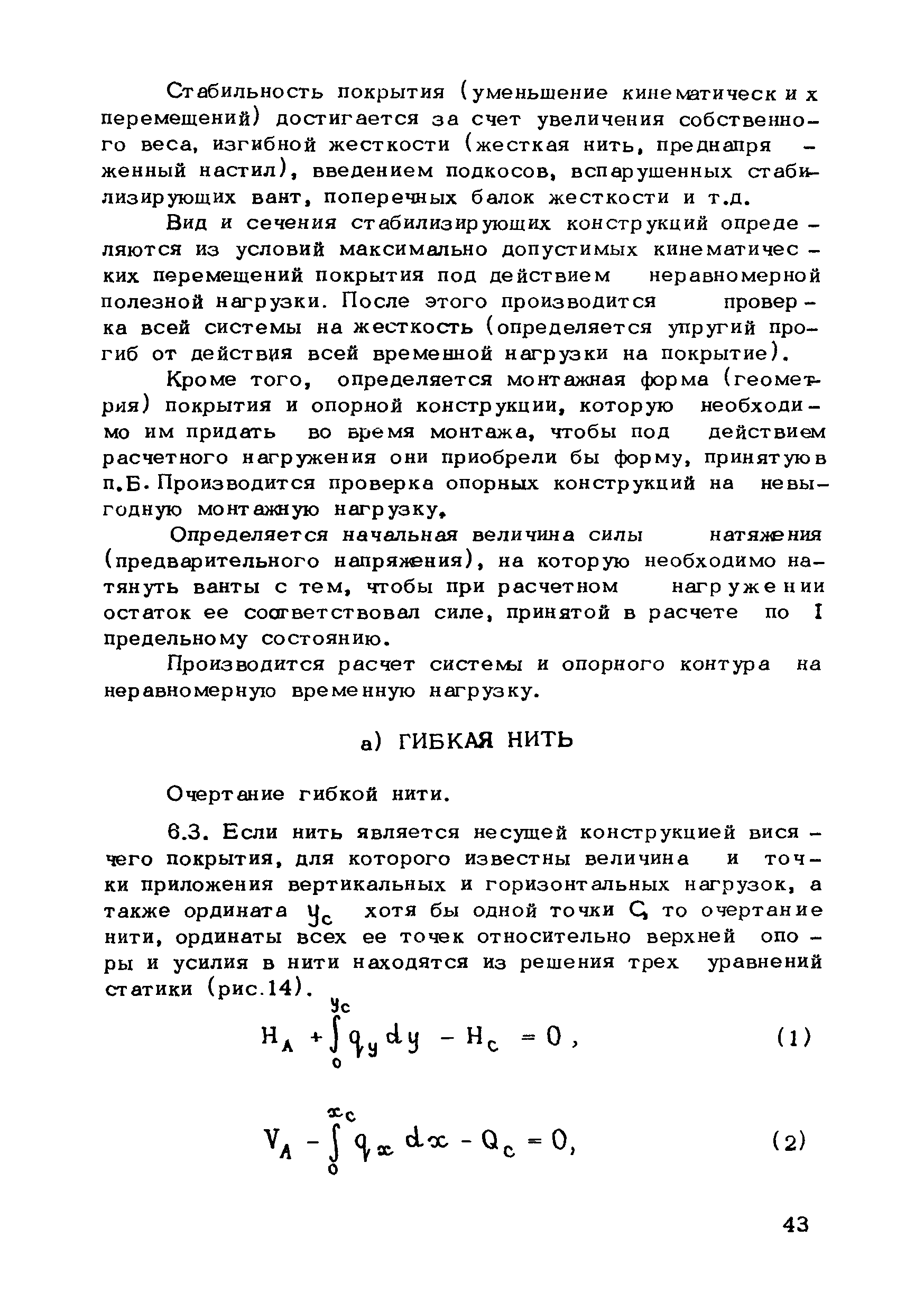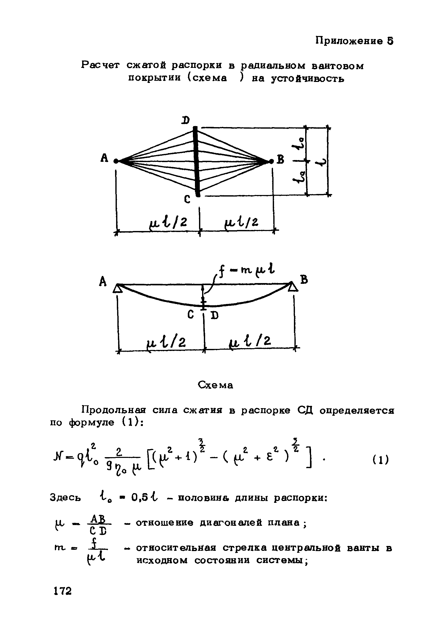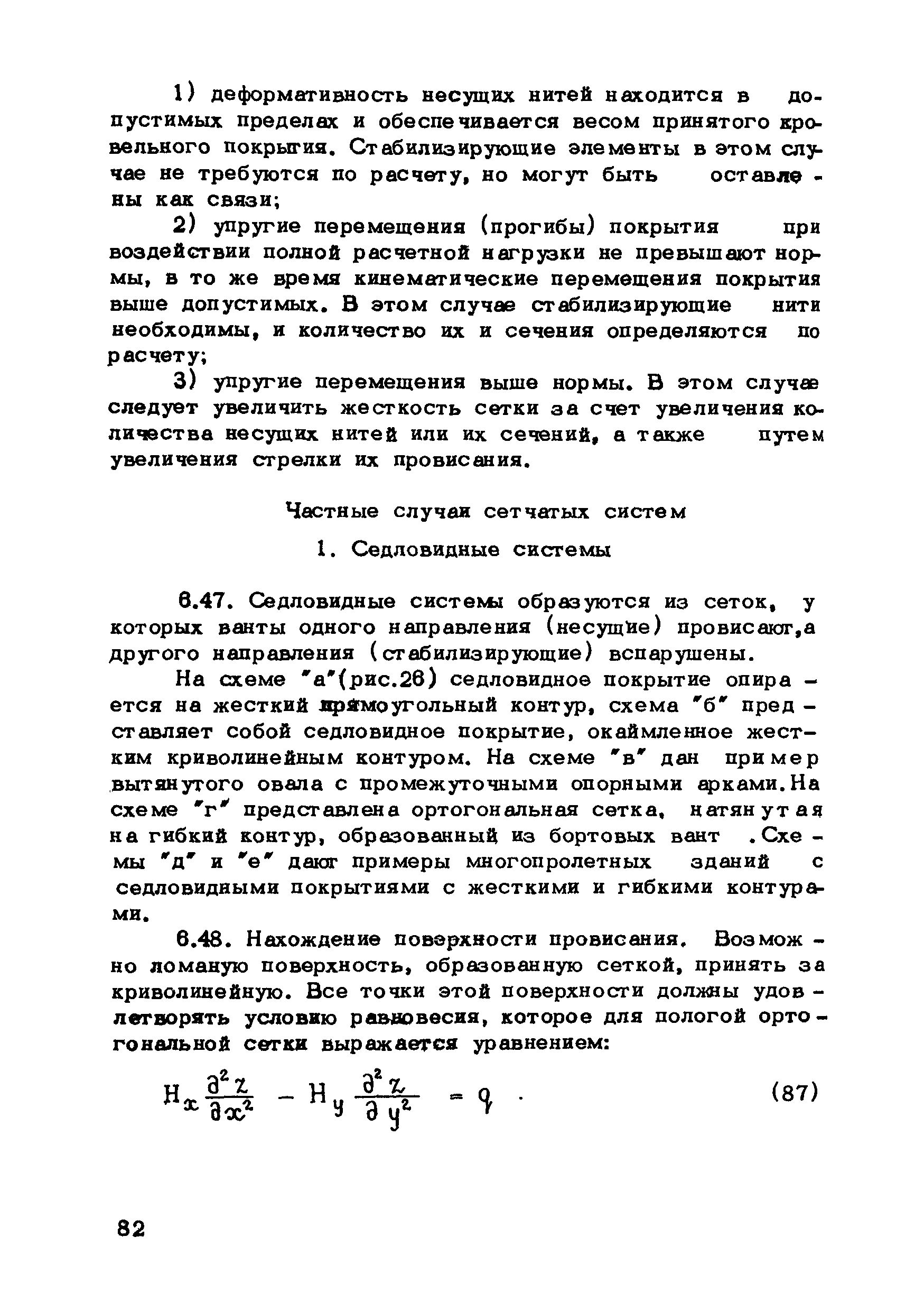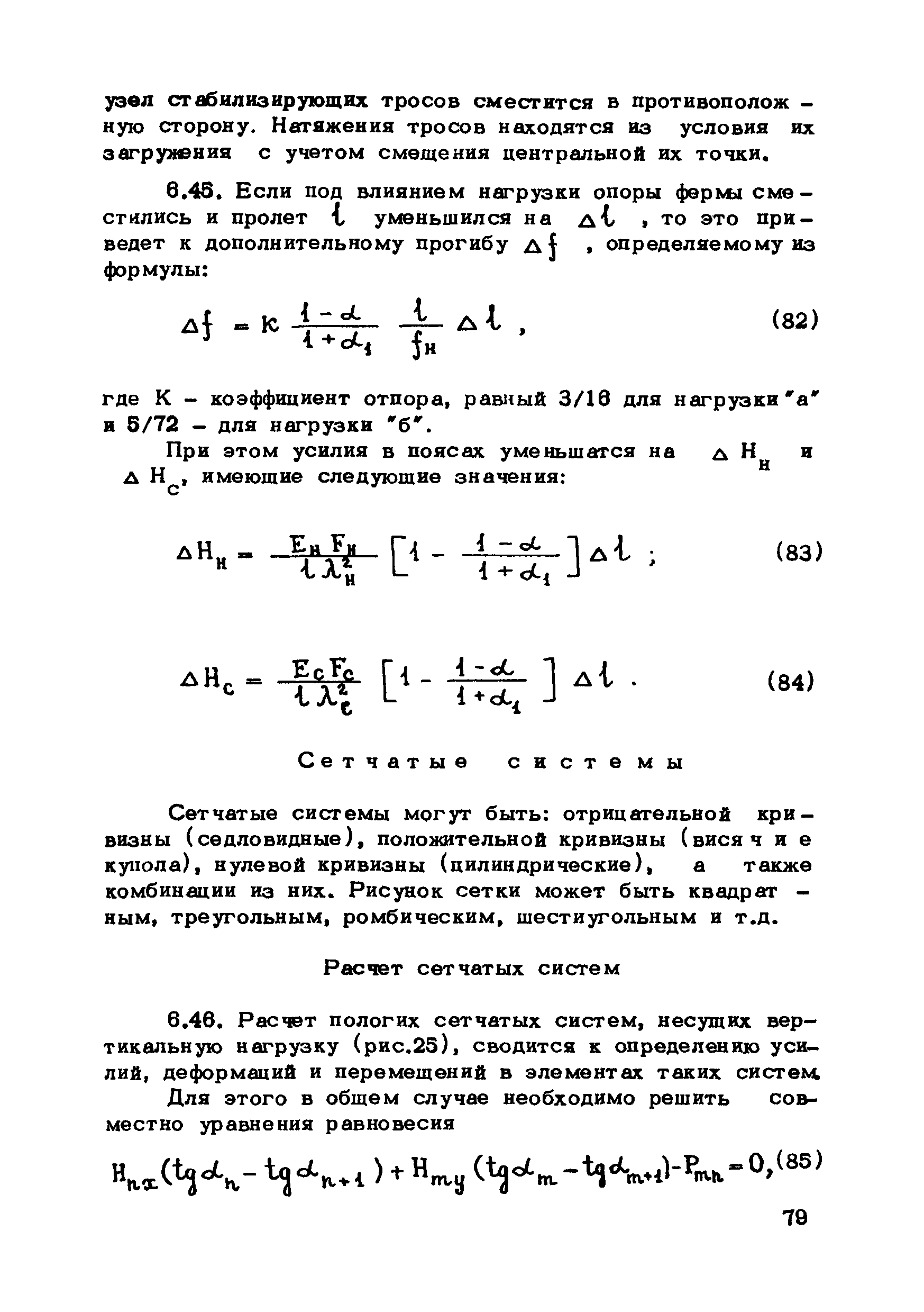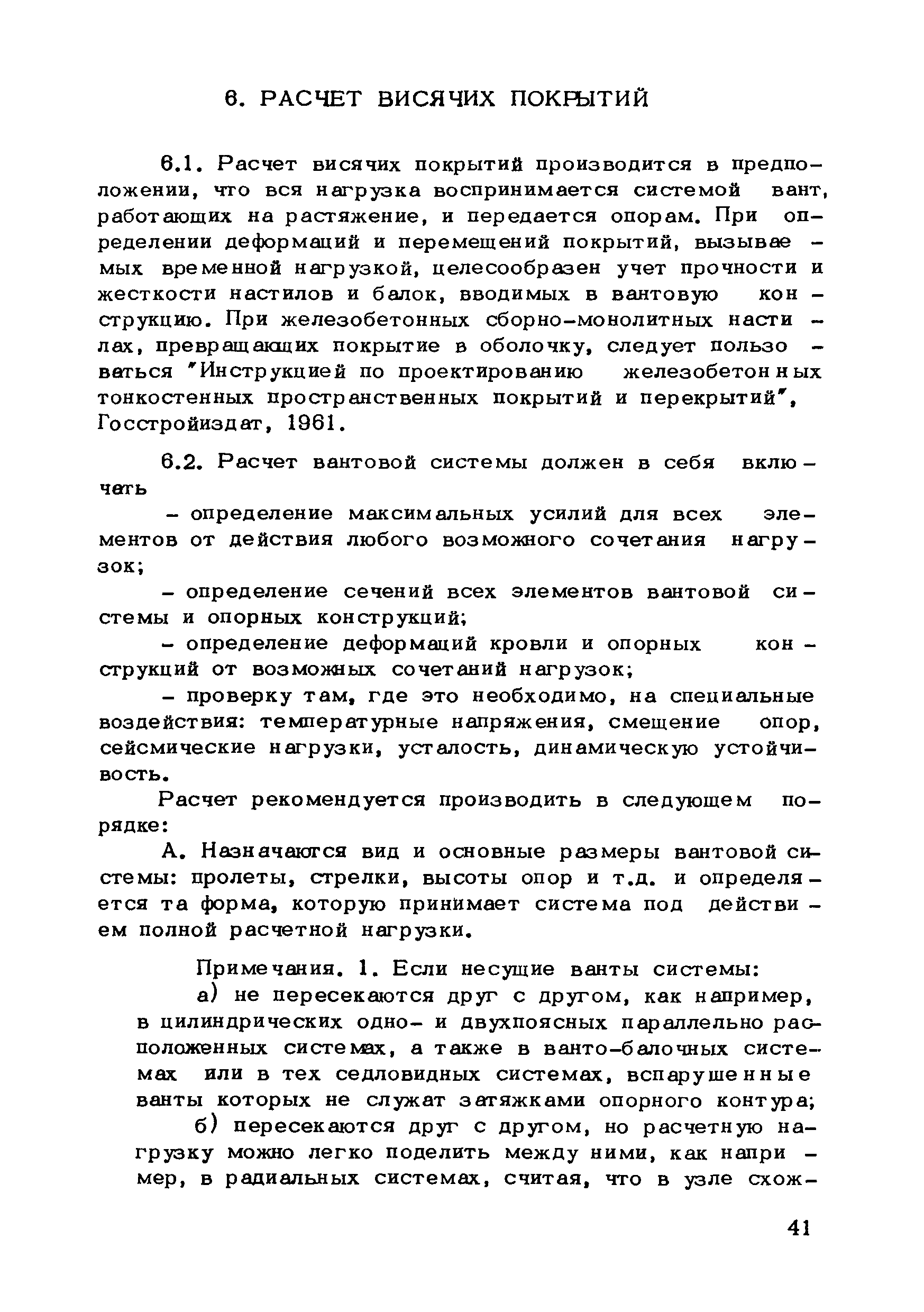 | Оглавление: | Предисловие 1. Общие указания 2. Материалы для висячих покрытий 3. Рекомендации по конструированию элементов и узлов висячих покрытий 4. Особенности возведения и изготовления элементов висячих покрытий 5. Основные расчетные положения 6. Расчет висячих покрытий а) Гибкая нить б) Расчет систем в) Расчет первоначально плоских круглых мембран на равномерную нагрузку г) Нити с изгибной жесткостью д) Опорные конструкции висячих покрытий Приложение 1. Формулы для определения характеристики D Приложение 2. Анкеровка вант с помощью гильзоклиновых анкеров Приложение 3. Анкеровка вант с заливкой во втулки Приложение 4. Данные по конструкции втулок Приложение 5. Расчет сжатой распорки в радиальном вантовом покрытии на устойчивость |