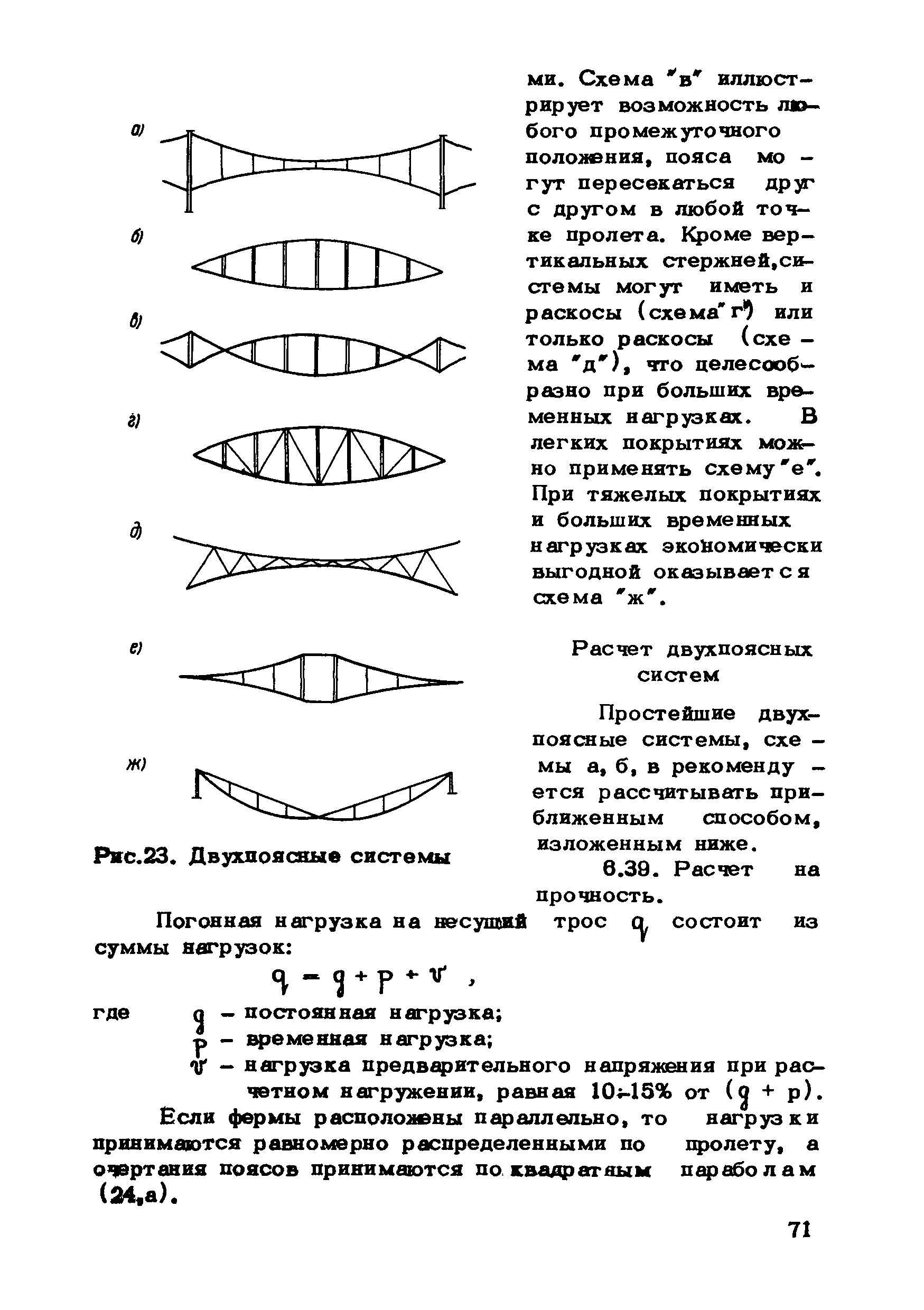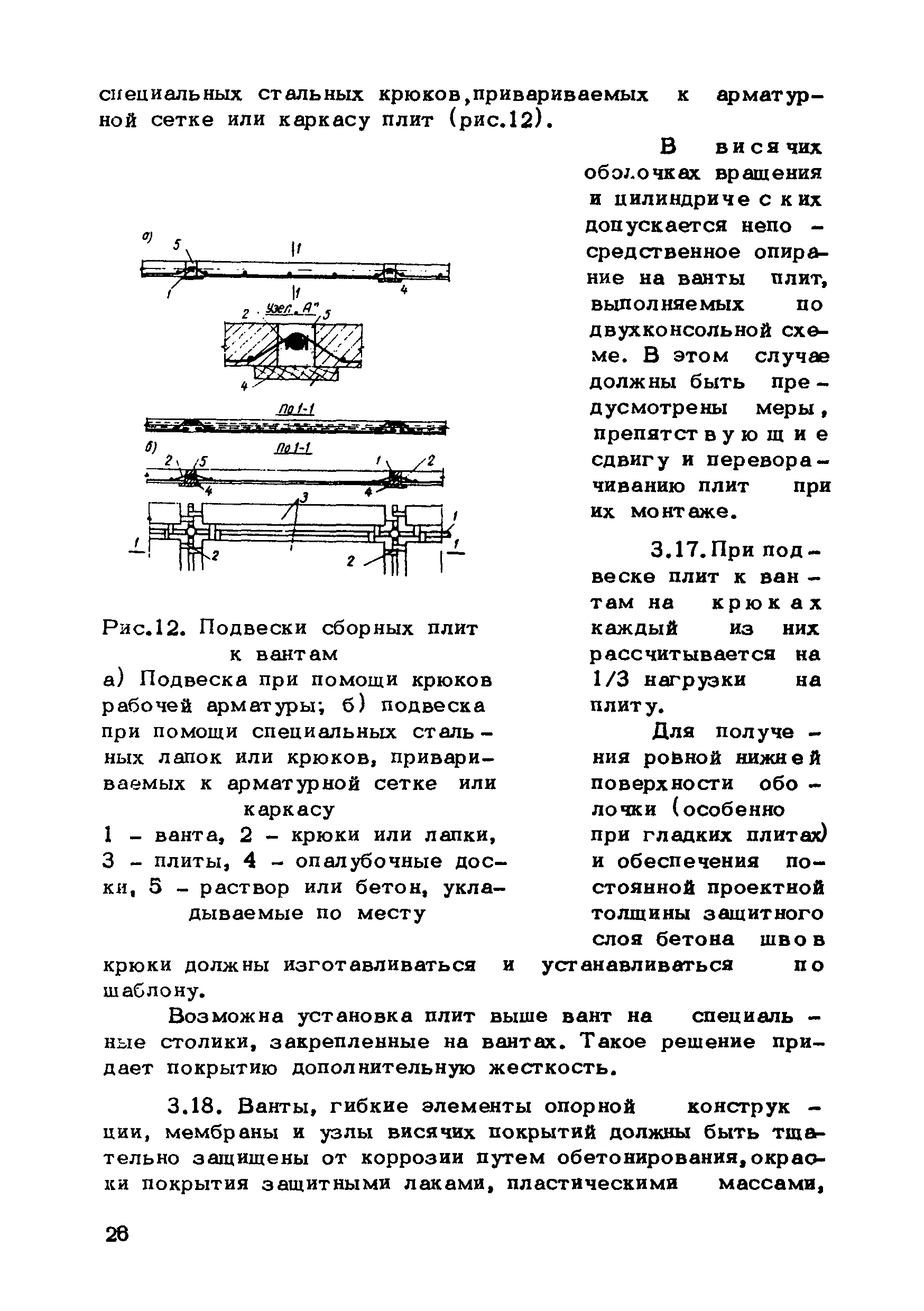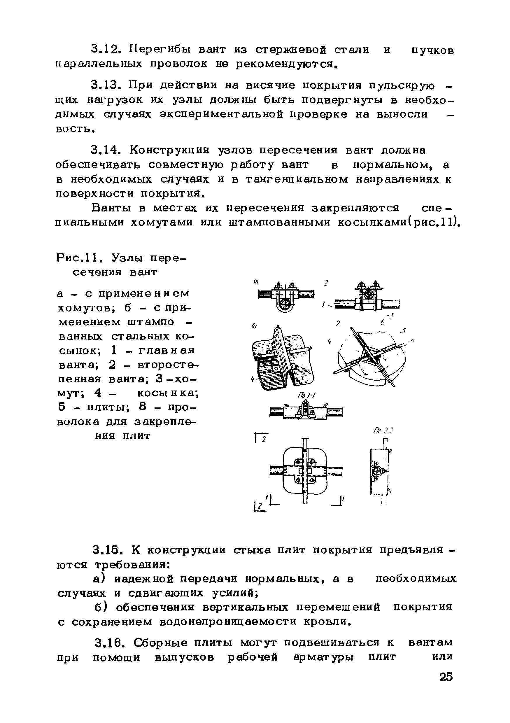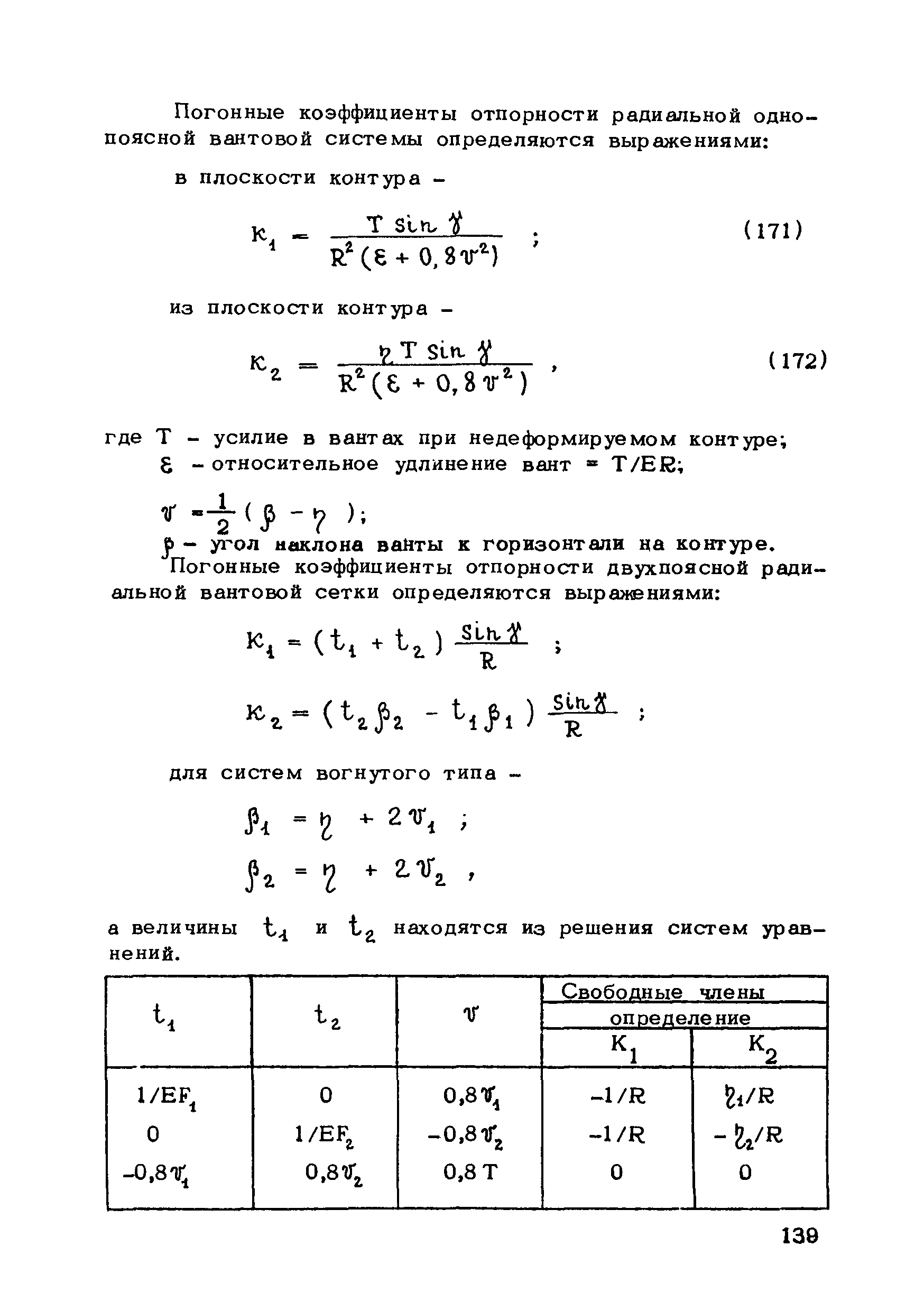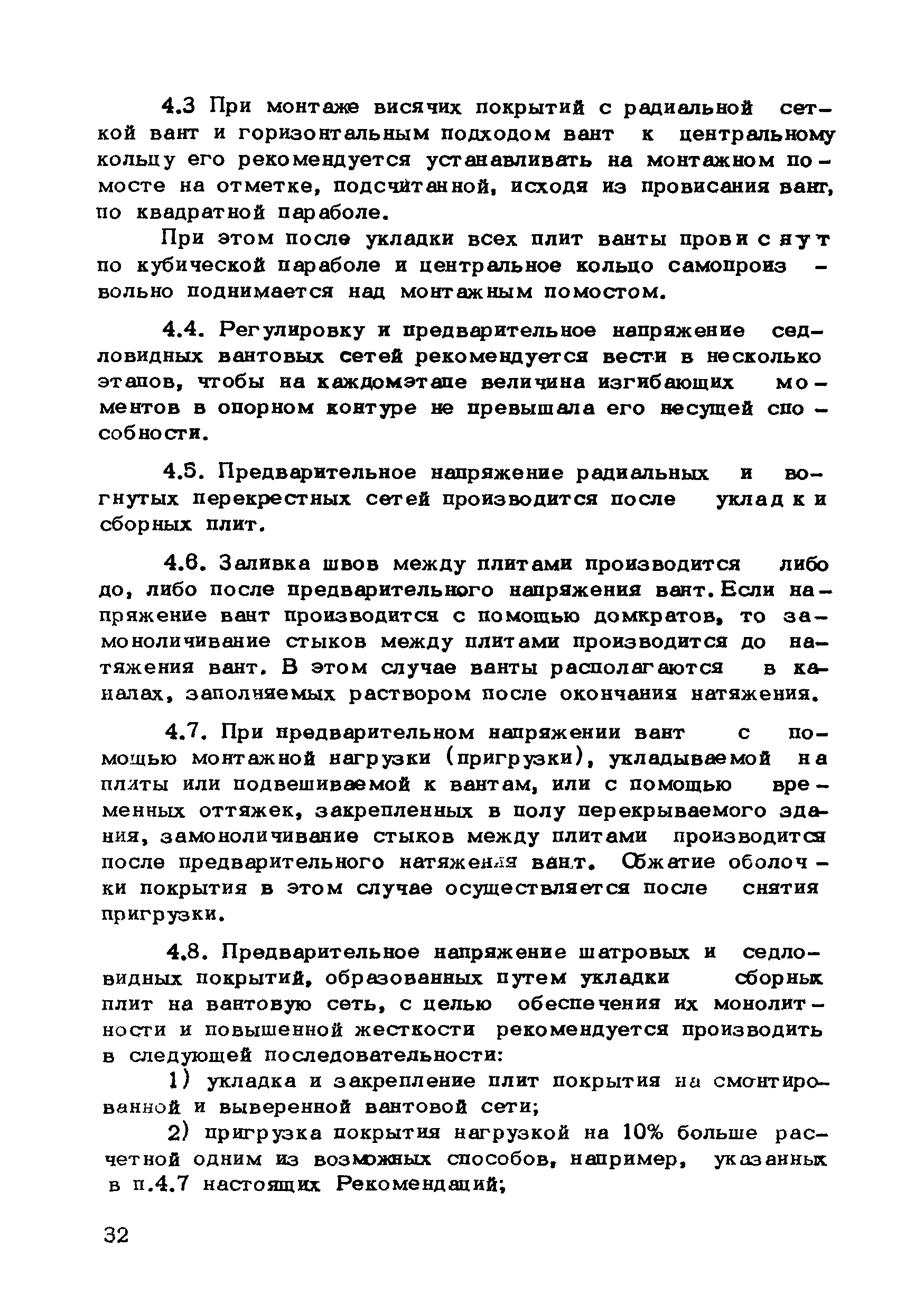 | Оглавление: | Предисловие 1. Общие указания 2. Материалы для висячих покрытий 3. Рекомендации по конструированию элементов и узлов висячих покрытий 4. Особенности возведения и изготовления элементов висячих покрытий 5. Основные расчетные положения 6. Расчет висячих покрытий а) Гибкая нить б) Расчет систем в) Расчет первоначально плоских круглых мембран на равномерную нагрузку г) Нити с изгибной жесткостью д) Опорные конструкции висячих покрытий Приложение 1. Формулы для определения характеристики D Приложение 2. Анкеровка вант с помощью гильзоклиновых анкеров Приложение 3. Анкеровка вант с заливкой во втулки Приложение 4. Данные по конструкции втулок Приложение 5. Расчет сжатой распорки в радиальном вантовом покрытии на устойчивость |