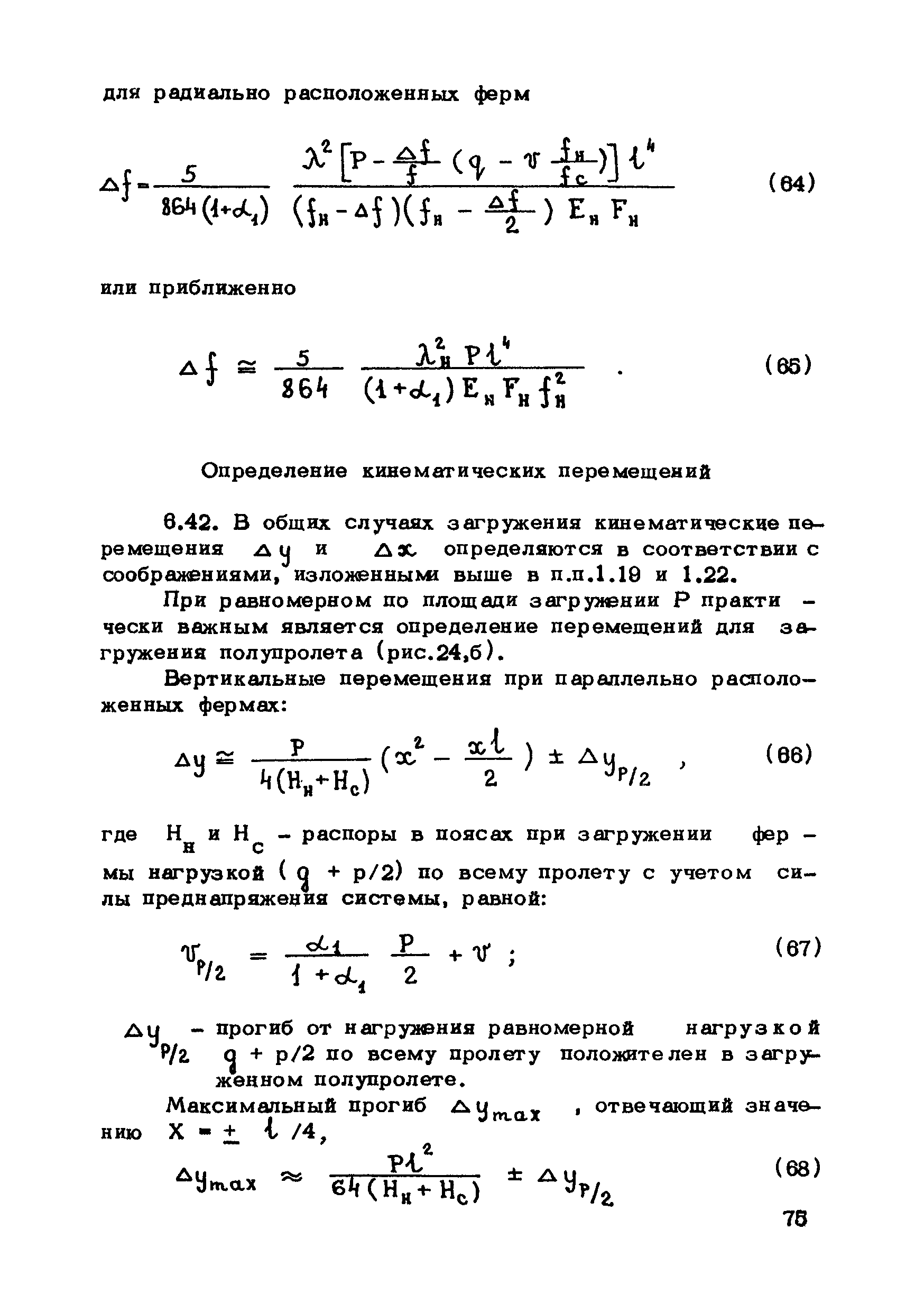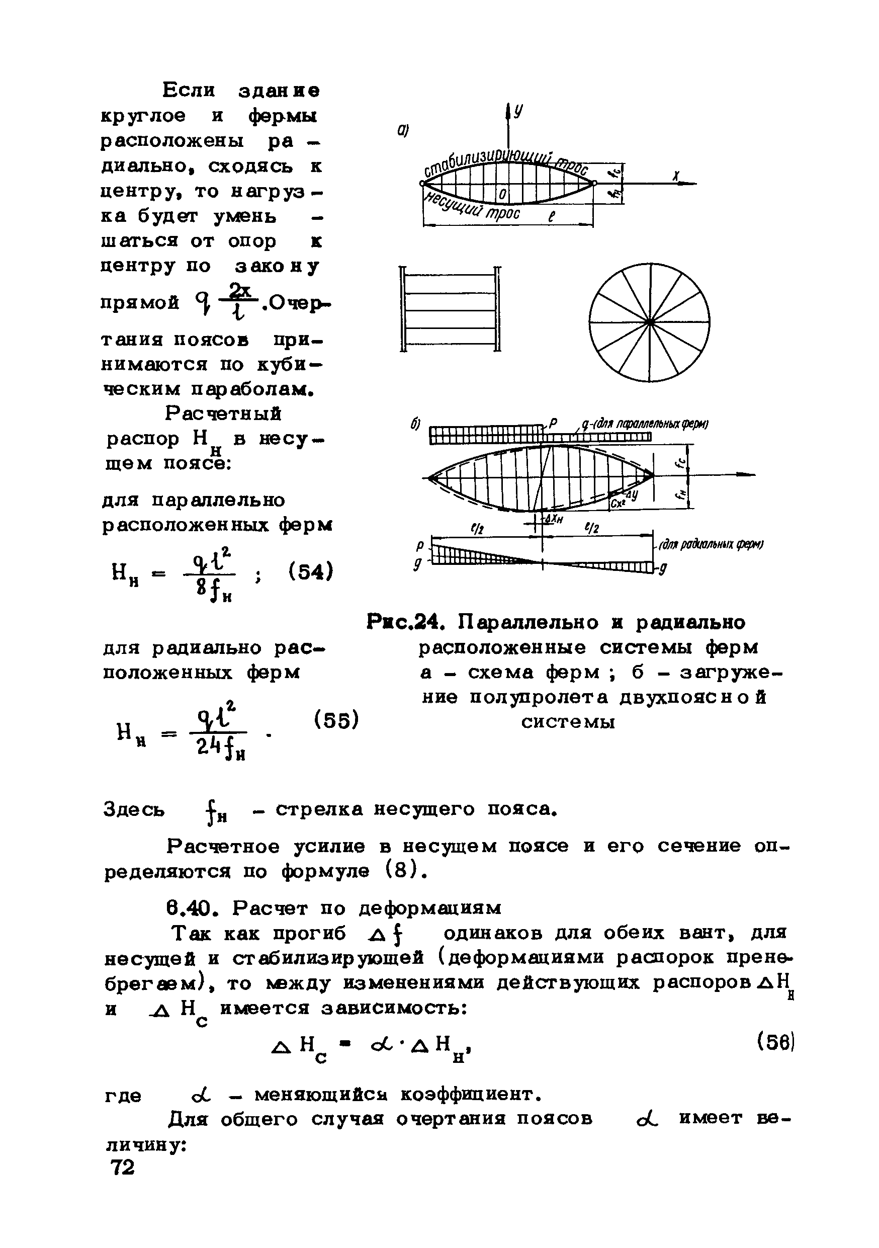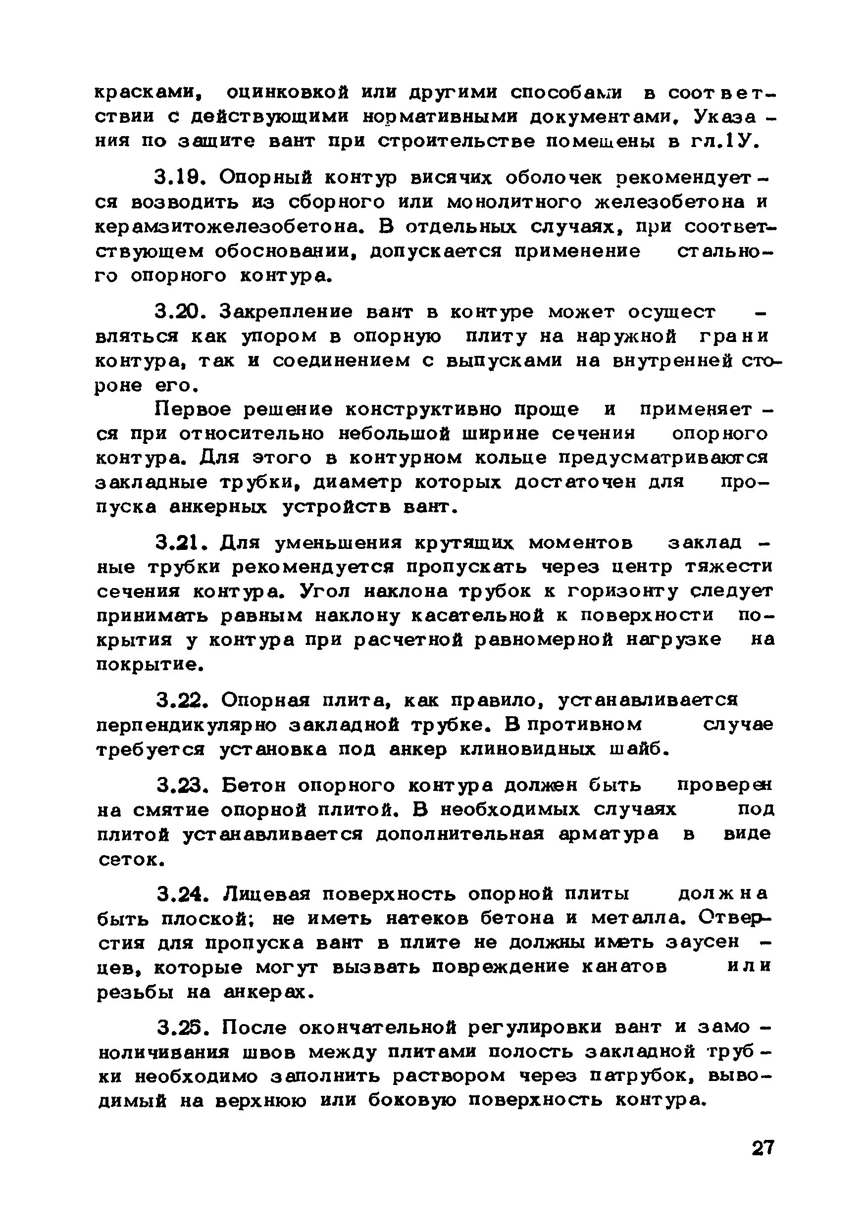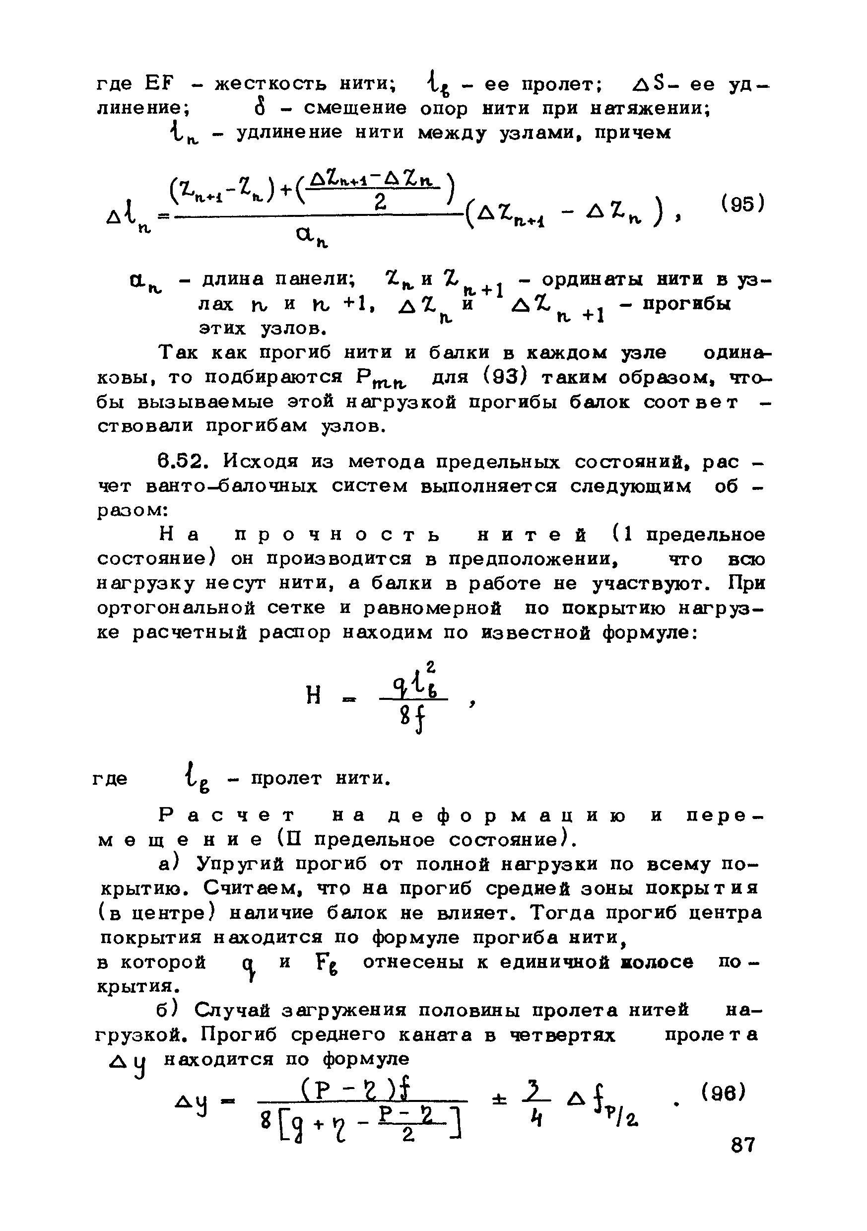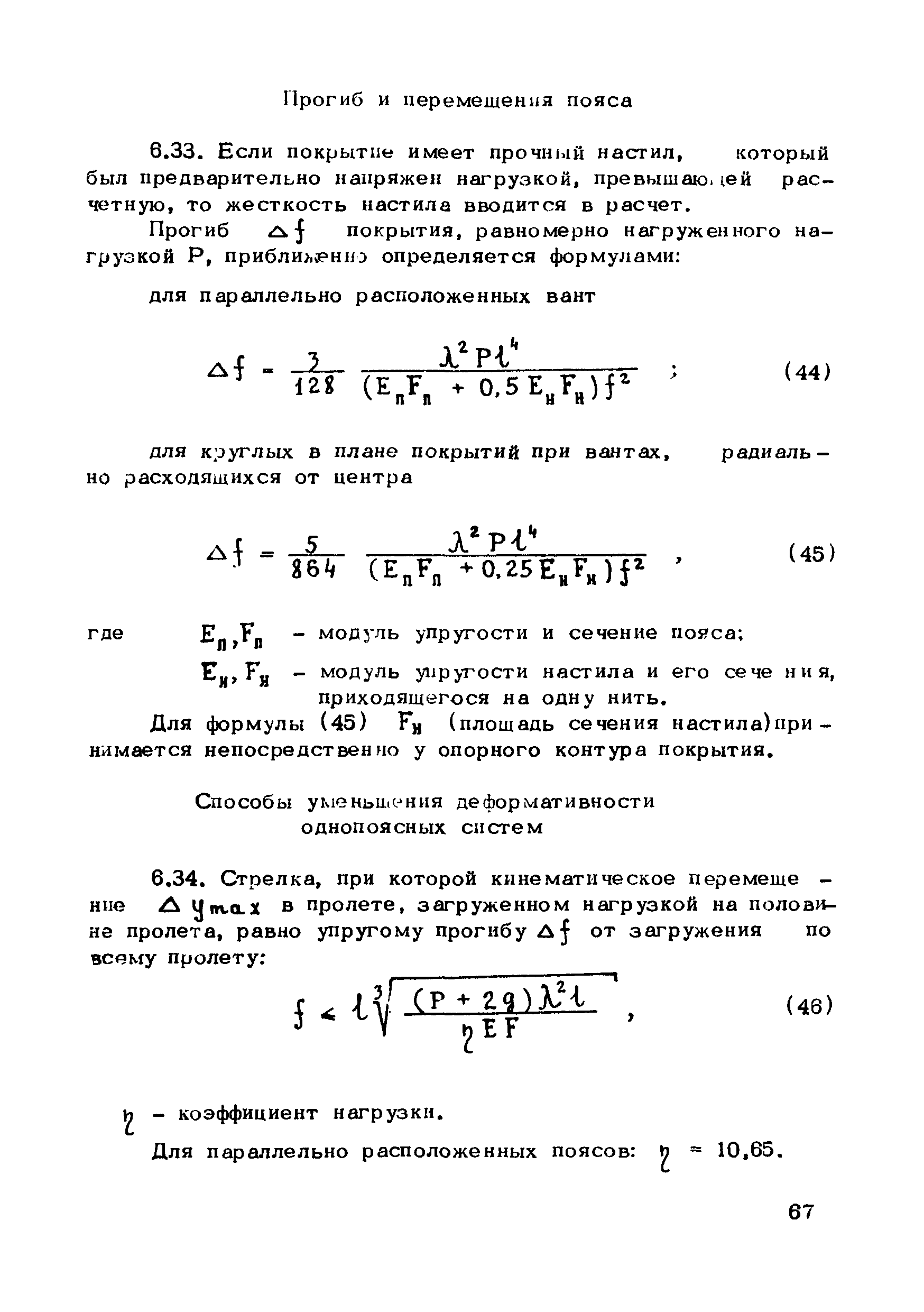 | Оглавление: | Предисловие 1. Общие указания 2. Материалы для висячих покрытий 3. Рекомендации по конструированию элементов и узлов висячих покрытий 4. Особенности возведения и изготовления элементов висячих покрытий 5. Основные расчетные положения 6. Расчет висячих покрытий а) Гибкая нить б) Расчет систем в) Расчет первоначально плоских круглых мембран на равномерную нагрузку г) Нити с изгибной жесткостью д) Опорные конструкции висячих покрытий Приложение 1. Формулы для определения характеристики D Приложение 2. Анкеровка вант с помощью гильзоклиновых анкеров Приложение 3. Анкеровка вант с заливкой во втулки Приложение 4. Данные по конструкции втулок Приложение 5. Расчет сжатой распорки в радиальном вантовом покрытии на устойчивость |