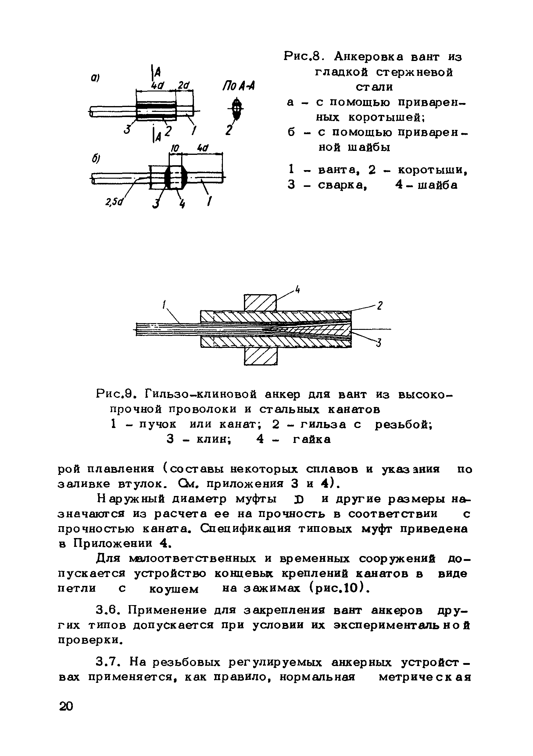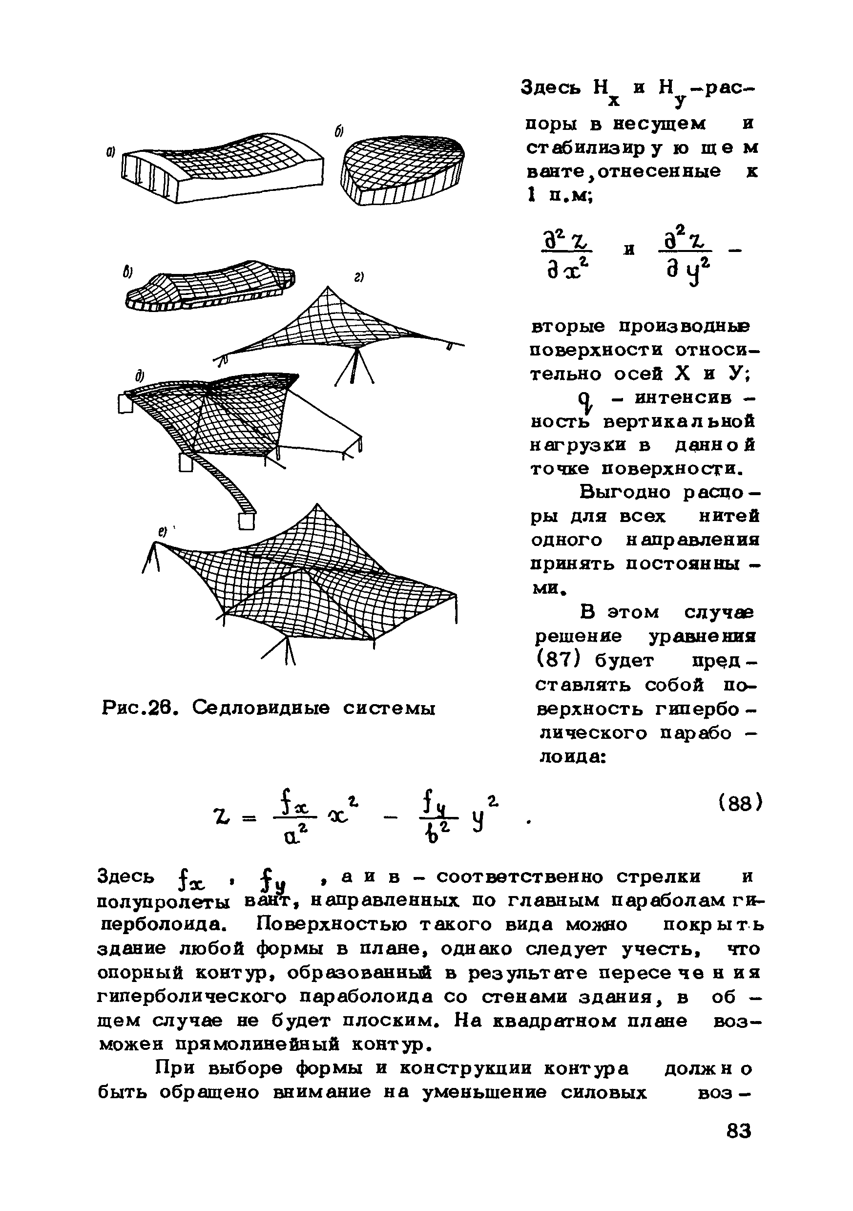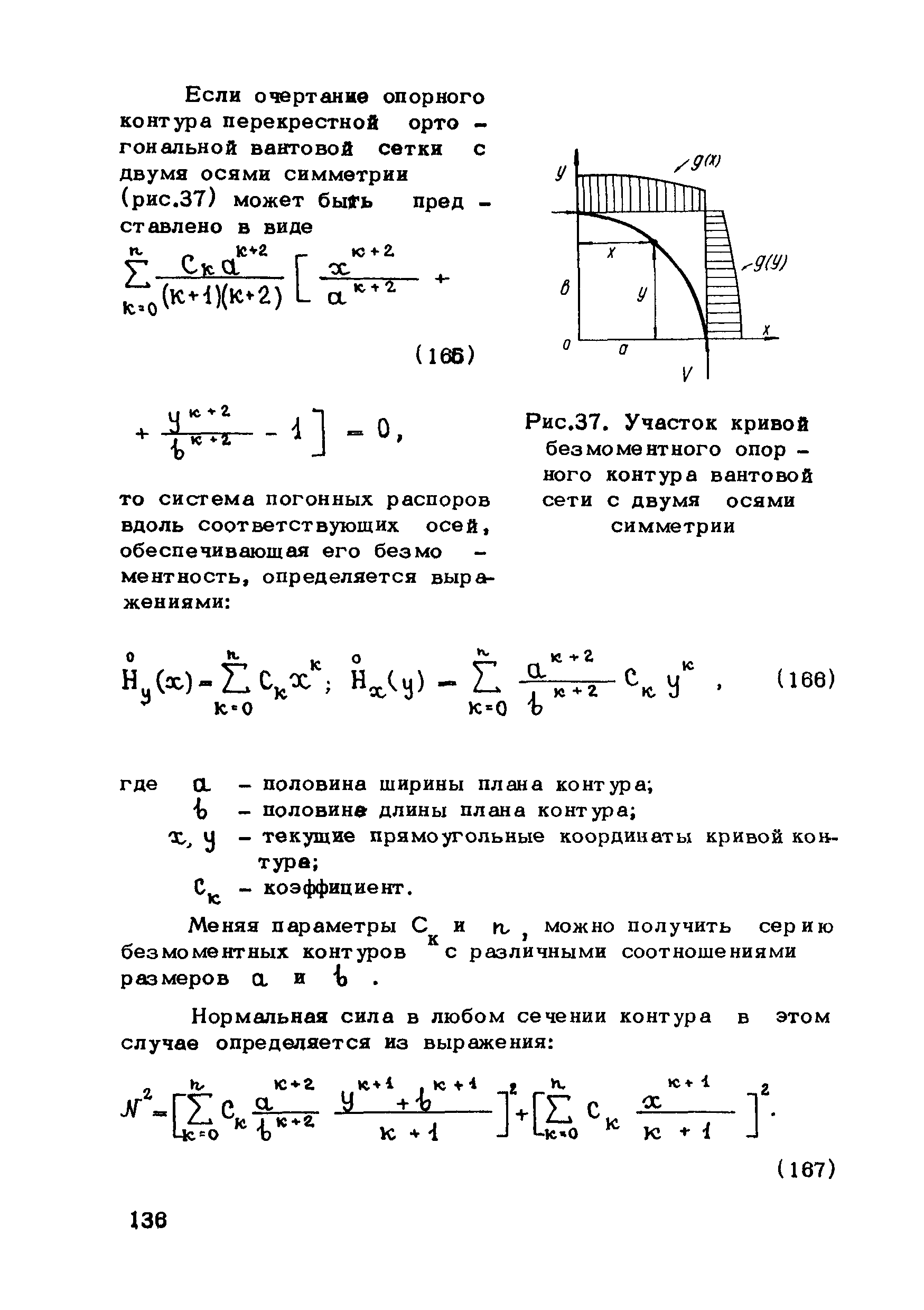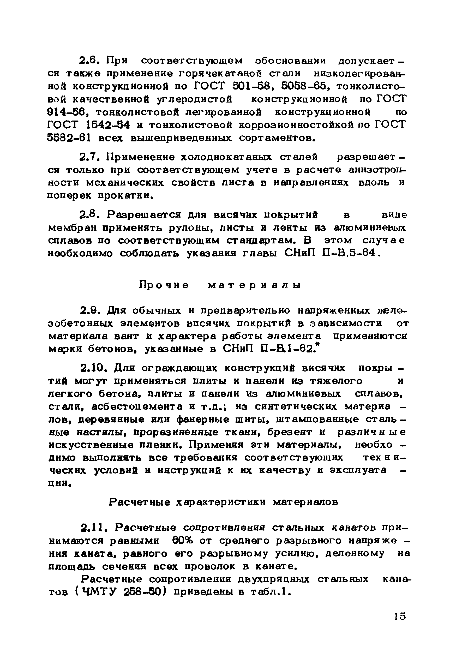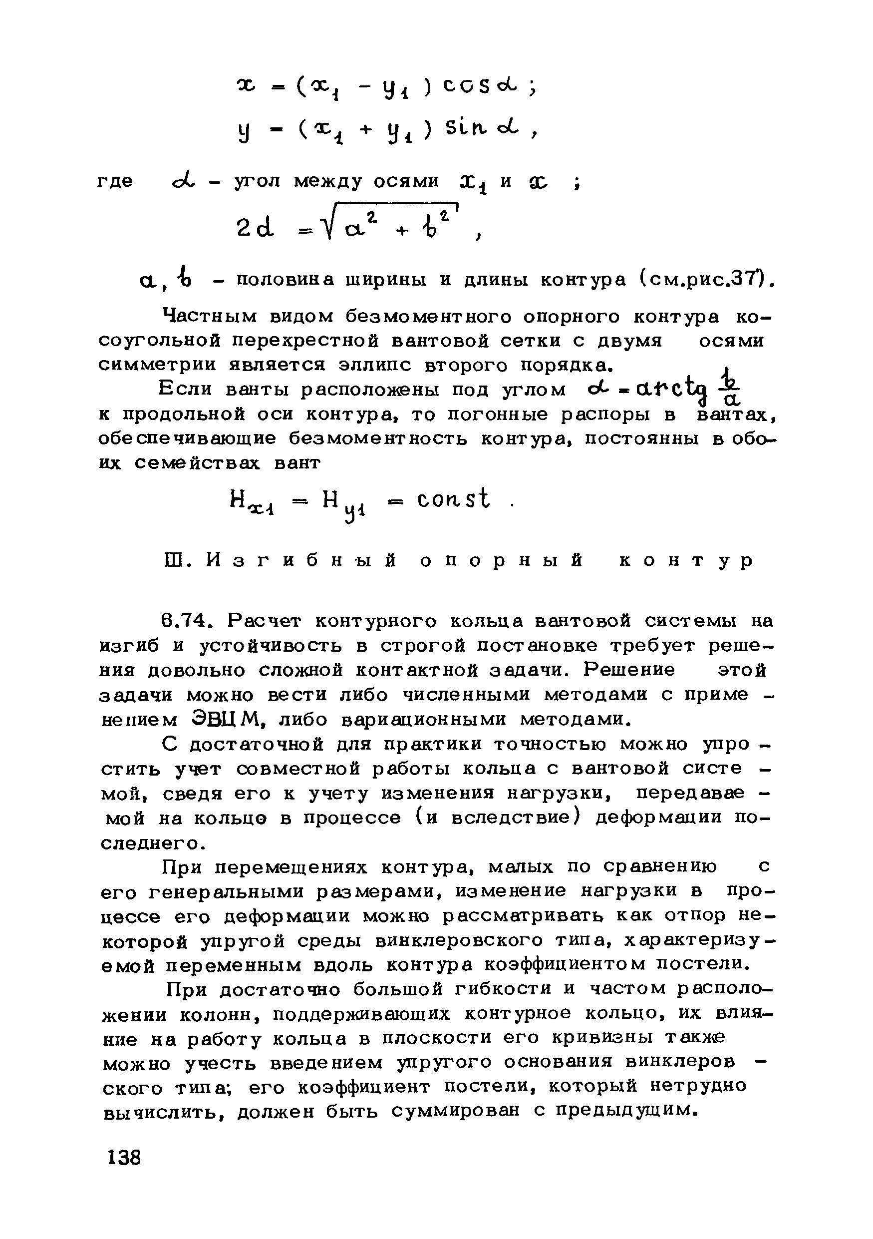 | Оглавление: | Предисловие 1. Общие указания 2. Материалы для висячих покрытий 3. Рекомендации по конструированию элементов и узлов висячих покрытий 4. Особенности возведения и изготовления элементов висячих покрытий 5. Основные расчетные положения 6. Расчет висячих покрытий а) Гибкая нить б) Расчет систем в) Расчет первоначально плоских круглых мембран на равномерную нагрузку г) Нити с изгибной жесткостью д) Опорные конструкции висячих покрытий Приложение 1. Формулы для определения характеристики D Приложение 2. Анкеровка вант с помощью гильзоклиновых анкеров Приложение 3. Анкеровка вант с заливкой во втулки Приложение 4. Данные по конструкции втулок Приложение 5. Расчет сжатой распорки в радиальном вантовом покрытии на устойчивость |