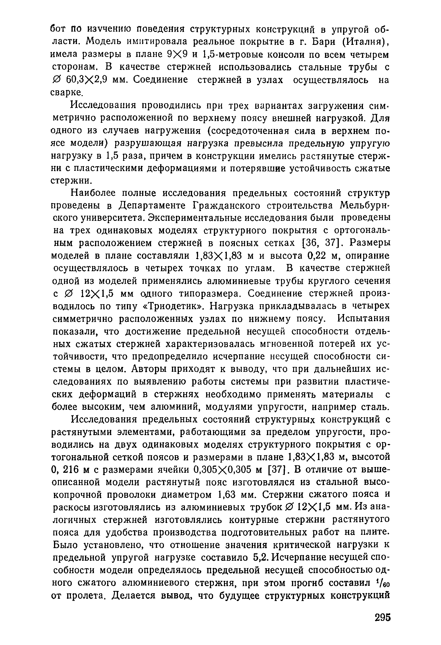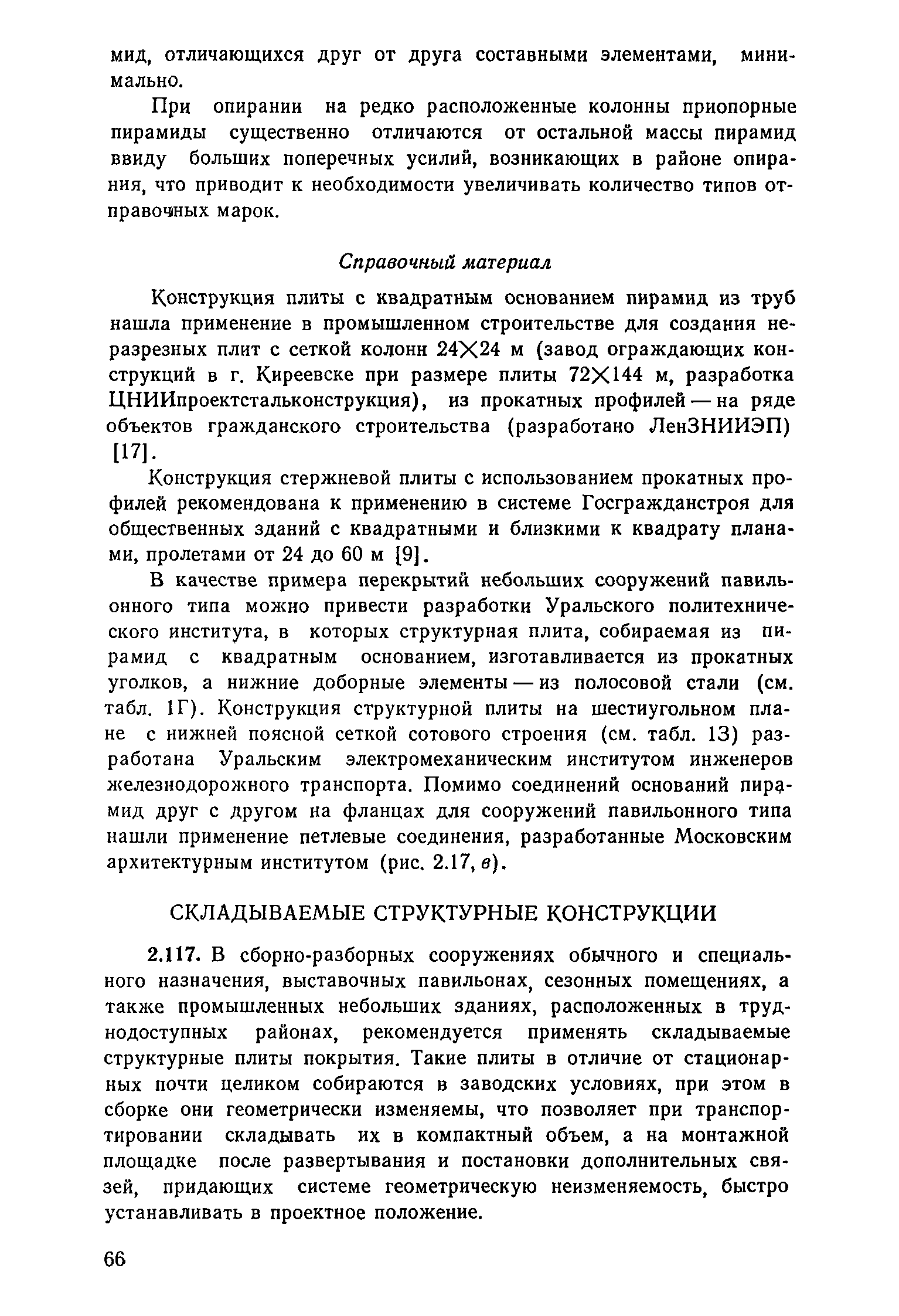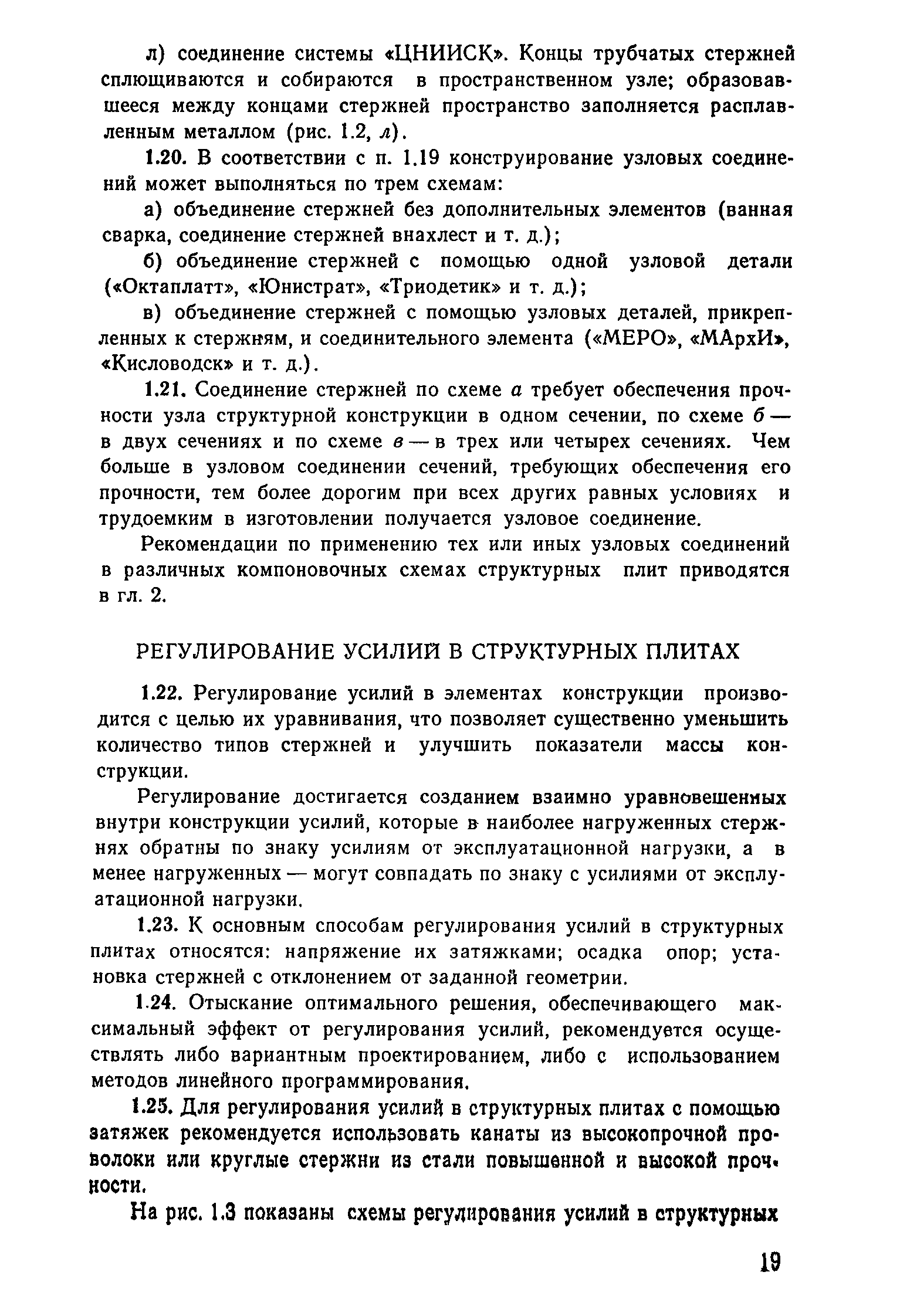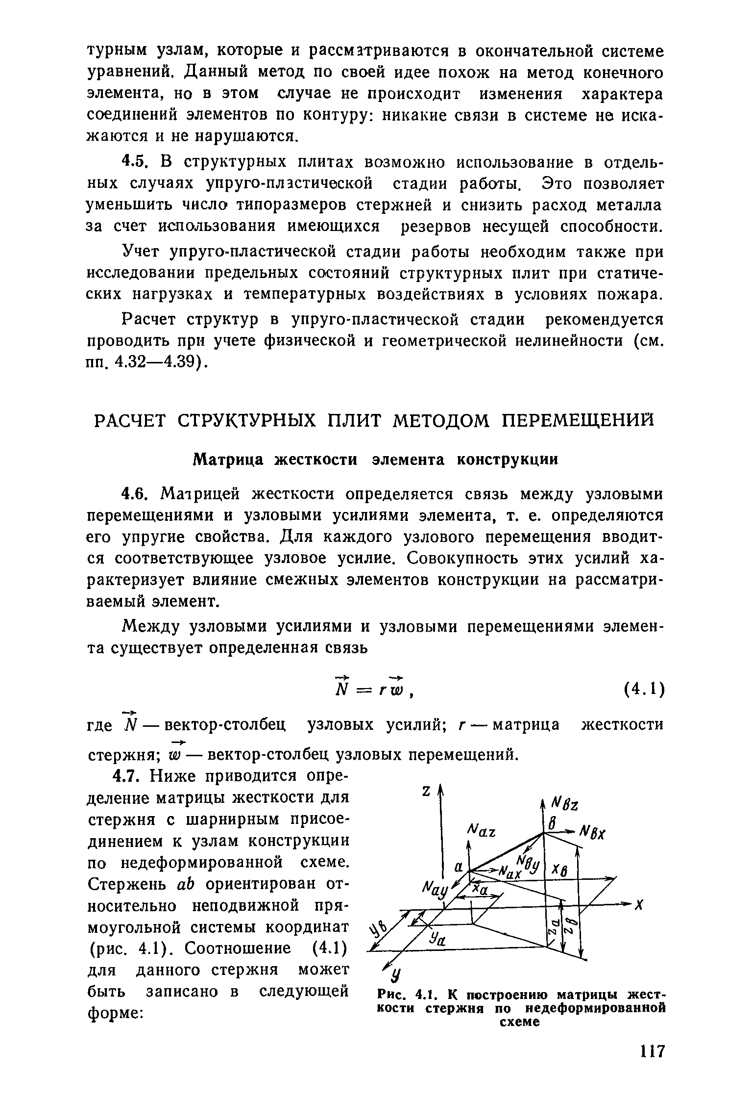 Рекомендации по проектированию структурных конструкций| Статус: | справочные материалы, мп, тпр | | Название рус.: | Рекомендации по проектированию структурных конструкций | | Дата добавления в базу: | 01.09.2013 | | Дата актуализации: | 01.01.2021 | | Область применения: | Документ содержит положения по проектированию структурных конструкций, в том числе возводимых в сейсмических районах и районах с низкими температурами, а также при наличии вибрационных нагрузок. Даны рекомендации по выбору стержневых схем, узловых сопряжений и назначению оптимальных параметров структурных плит, изложены способы приближенных расчетов стержневой системы, а также расчетов с применением ЭВМ. Приведены наиболее характерные конструктивные решения структур массового и индивидуального применения. Освещены основные способы изготовления и монтажа, а также оценки экономической эффективности структурных конструкций. Даны примеры расчетов, методика моделирования и натурного эксперимента, проводимых на стадии проектирования, а также сведения в области развития конструктивных форм и методов расчета за рубежом. Для инженерно-технических работников проектных и научно-исследовательских организаций. | | Оглавление: | Предисловие 1. Стержневые схемы структур, их узловые сопряжения, рекомендации по назначению оптимальных параметров Характеристика структур Схемы структурных конструкций и их членение на отправочные марки Классификация узлов структурных конструкций Регулирование усилий в структурных плитах Границы назначения оптимальной по расходу материала высоты структурной плиты Основные положения по оптимальному проектированию структур 2. Конструкции структурных плит Общая часть Опирание структурных плит Структурные конструкции из стержневых элементов на одну ячейку Структурные конструкции типа "Кисловодск" Структурные конструкции из унифицированного сортамента системы "МАрхИ" Структурные конструкции с длинноразмерными поясами Типовые структурные конструкции из прокатных профилей системы "ЦНИИСК" Модификации типовых конструкций из прокатных профилей Структурные плиты из плоских ферм Структурные плиты из объемных стержневых пирамид Складываемые структурные конструкции Структурные плиты с включением неметаллических элементов Структурные конструкции с металлическими и деревянными элементами Структурные конструкции с применением железобетонных плит Особенности проектирования структурных конструкций для сейсмических районов и при наличии крышных вентиляторов Подбор сечений элементов структур Расчет на прочность и устойчивость Расчет по деформациям 3. Способы приближенного расчета Цель, задачи и основные предпосылки приближенного расчета Формулы упругих характеристик при аппроксимации стержневой системы ортотропной пластиной Методика расчета структур как трехслойной пластины со средним слоем конечной жесткости Влияние жесткости узлов на распределение внутренних усилий Расчет структурных конструкций с узловыми эксцентриситетами Оценка влияния податливости узловых сопряжений на напряженно-деформированное состояние конструкции Расчет сжатых стержней структуры на устойчивость Расчет структурной конструкции как перекрестной системы Особенности приближенного расчета многопролетных структур Расчет структурных конс