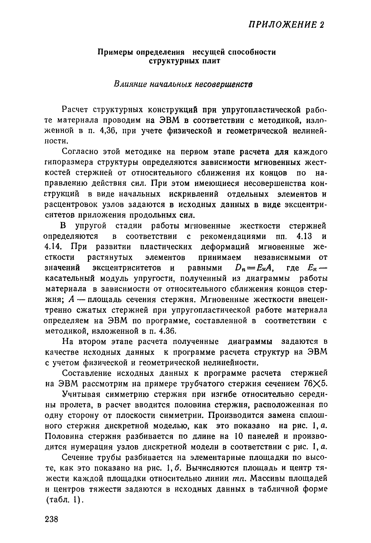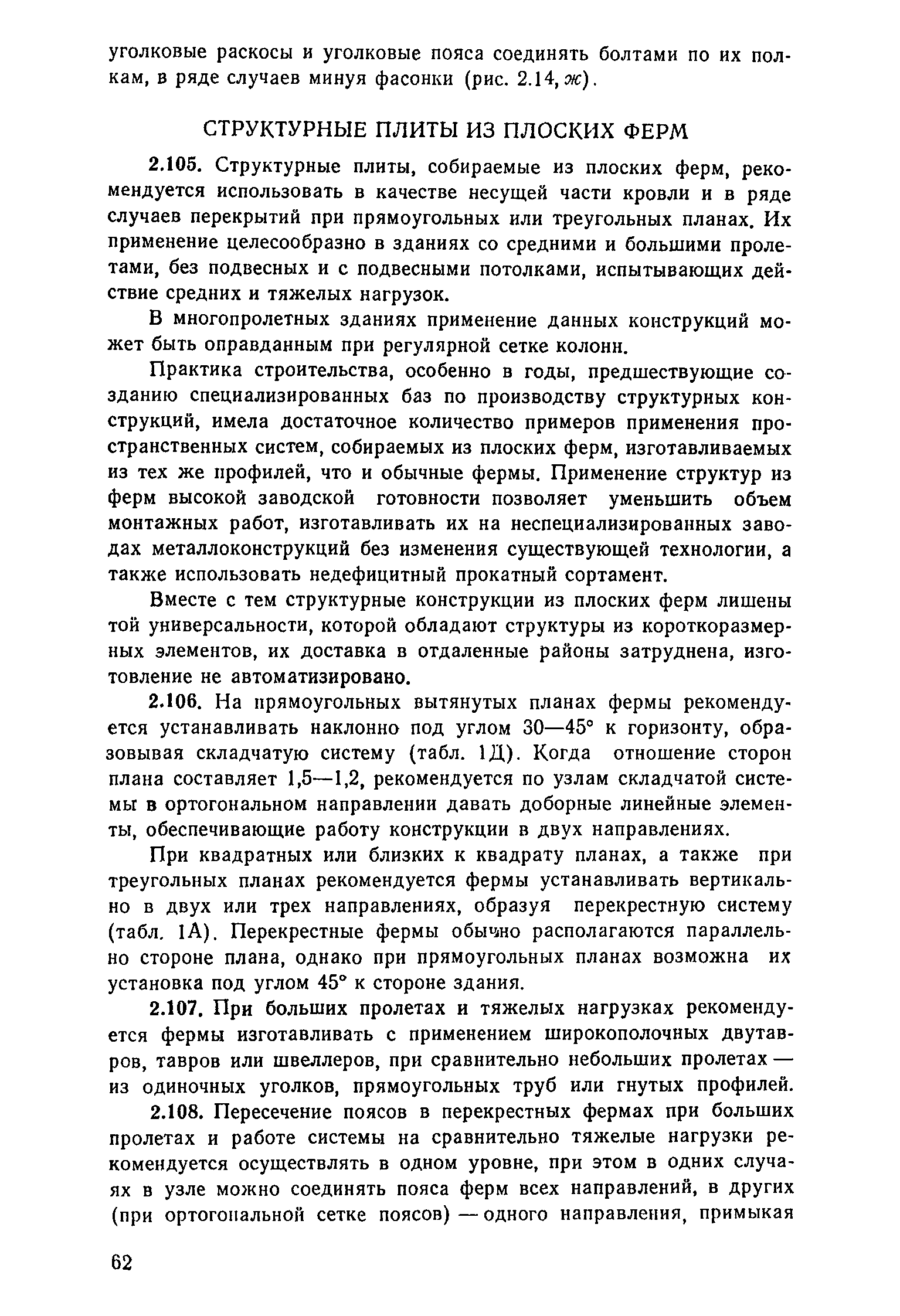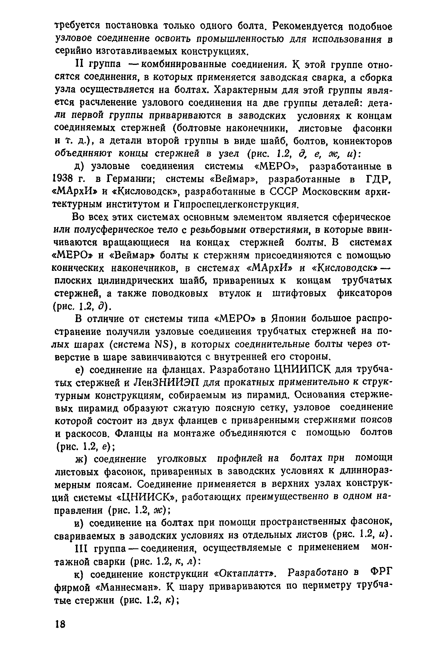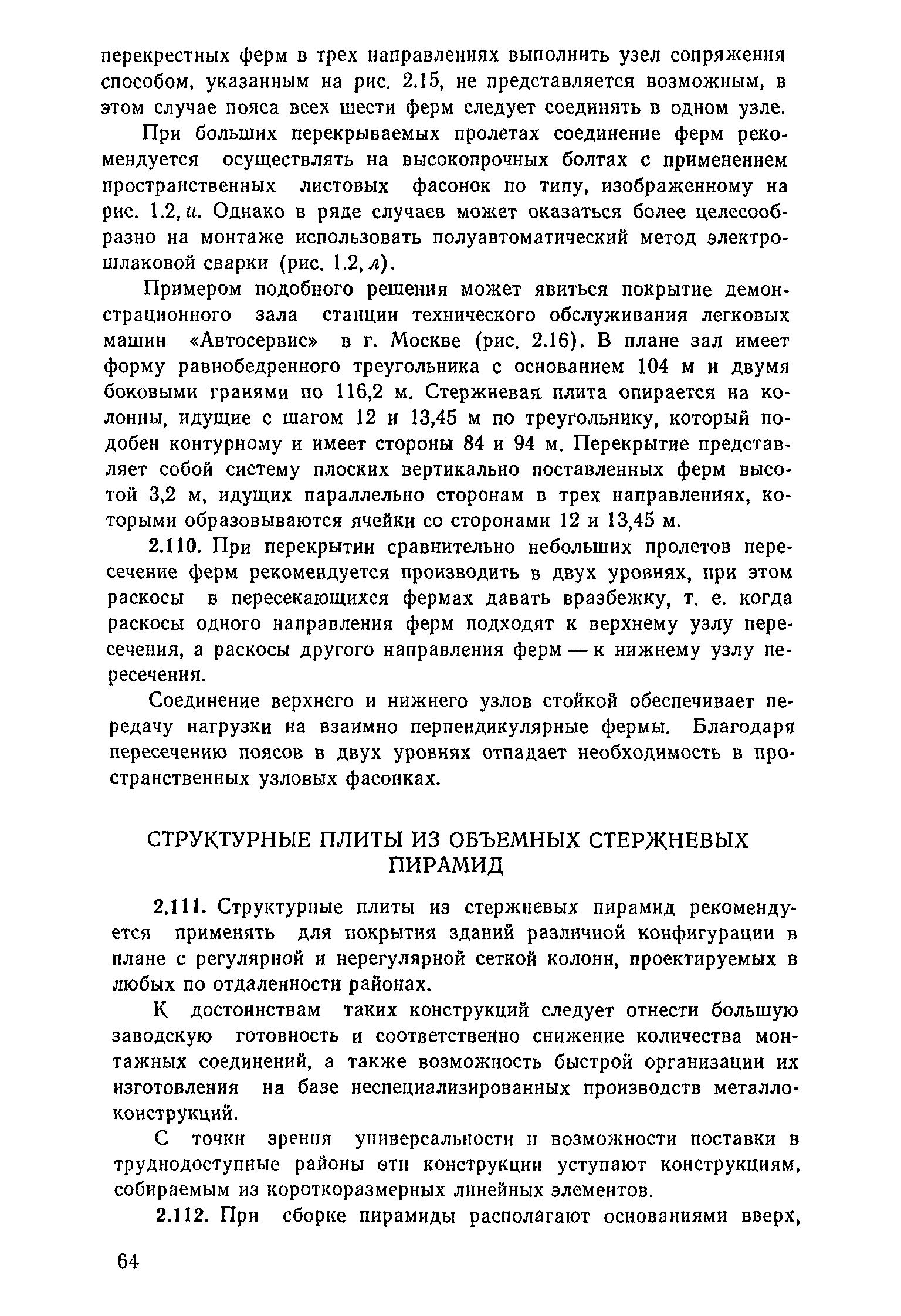 Рекомендации по проектированию структурных конструкций| Статус: | справочные материалы, мп, тпр | | Название рус.: | Рекомендации по проектированию структурных конструкций | | Дата добавления в базу: | 01.09.2013 | | Дата актуализации: | 01.01.2021 | | Область применения: | Документ содержит положения по проектированию структурных конструкций, в том числе возводимых в сейсмических районах и районах с низкими температурами, а также при наличии вибрационных нагрузок. Даны рекомендации по выбору стержневых схем, узловых сопряжений и назначению оптимальных параметров структурных плит, изложены способы приближенных расчетов стержневой системы, а также расчетов с применением ЭВМ. Приведены наиболее характерные конструктивные решения структур массового и индивидуального применения. Освещены основные способы изготовления и монтажа, а также оценки экономической эффективности структурных конструкций. Даны примеры расчетов, методика моделирования и натурного эксперимента, проводимых на стадии проектирования, а также сведения в области развития конструктивных форм и методов расчета за рубежом. Для инженерно-технических работников проектных и научно-исследовательских организаций. | | Оглавление: | Предисловие 1. Стержневые схемы структур, их узловые сопряжения, рекомендации по назначению оптимальных параметров Характеристика структур Схемы структурных конструкций и их членение на отправочные марки Классификация узлов структурных конструкций Регулирование усилий в структурных плитах Границы назначения оптимальной по расходу материала высоты структурной плиты Основные положения по оптимальному проектированию структур 2. Конструкции структурных плит Общая часть Опирание структурных плит Структурные конструкции из стержневых элементов на одну ячейку Структурные конструкции типа "Кисловодск" Структурные конструкции из унифицированного сортамента системы "МАрхИ" Структурные конструкции с длинноразмерными поясами Типовые структурные конструкции из прокатных профилей системы "ЦНИИСК" Модификации типовых конструкций из прокатных профилей Структурные плиты из плоских ферм Структурные плиты из объемных стержневых пирамид Складываемые структурные конструкции Структурные плиты с включением неметаллических элементов Структурные конструкции с металлическими и деревянными элементами Структурные конструкции с применением железобетонных плит Особенности проектирования структурных конструкций для сейсмических районов и при наличии крышных вентиляторов Подбор сечений элементов структур Расчет на прочность и устойчивость Расчет по деформациям 3. Способы приближенного расчета Цель, задачи и основные предпосылки приближенного расчета Формулы упругих характеристик при аппроксимации стержневой системы ортотропной пластиной Методика расчета структур как трехслойной пластины со средним слоем конечной жесткости Влияние жесткости узлов на распределение внутренних усилий Расчет структурных конструкций с узловыми эксцентриситетами Оценка влияния податливости узловых сопряжений на напряженно-деформированное состояние конструкции Расчет сжатых стержней структуры на устойчивость Расчет структурной конструкции как перекрестной системы Особенности приближенного расчета многопролетных структур Расчет структурных конс