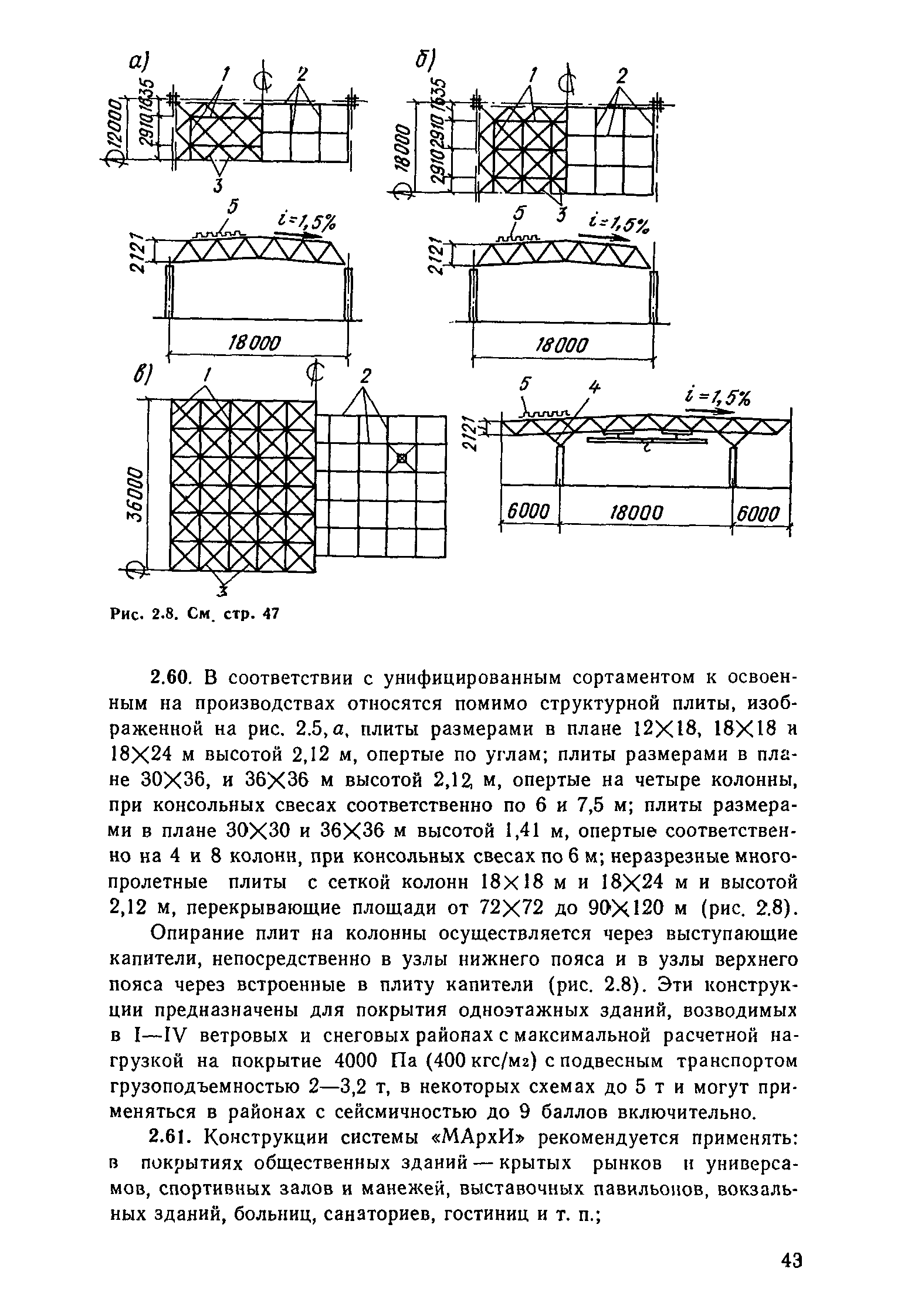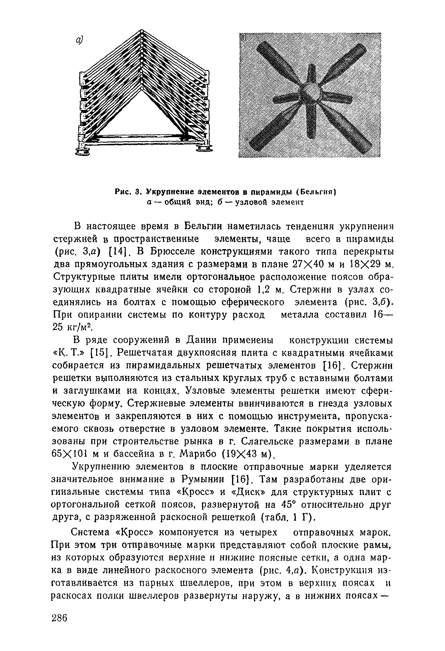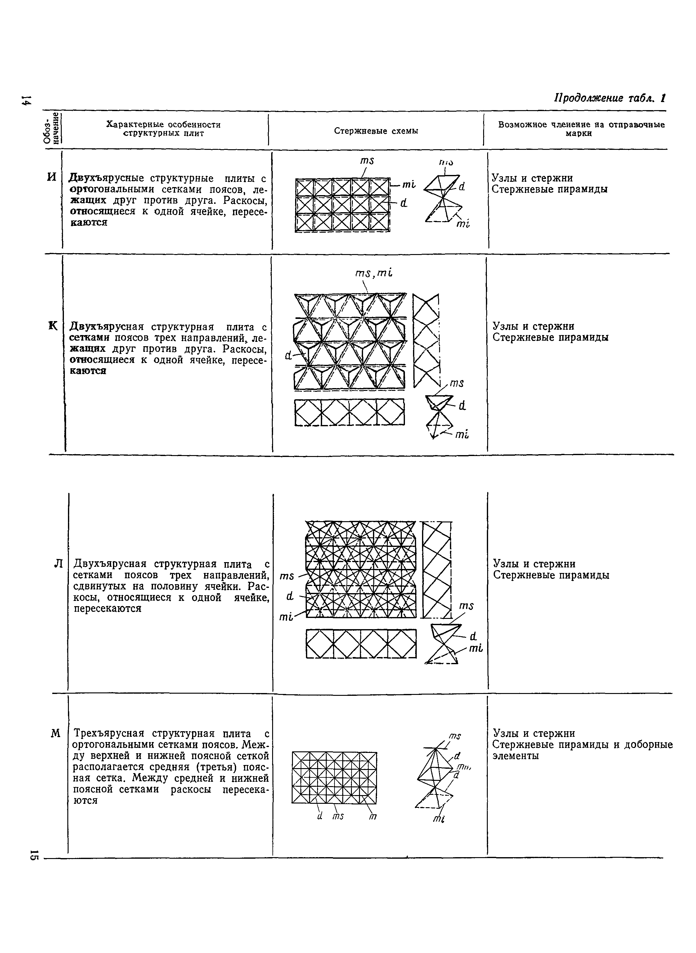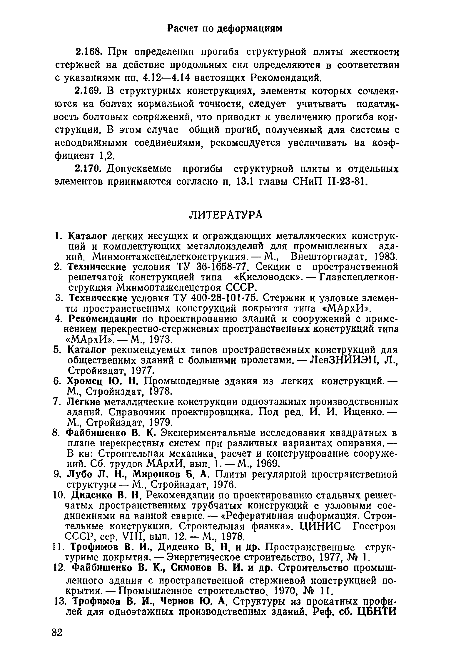 Рекомендации по проектированию структурных конструкций| Статус: | справочные материалы, мп, тпр | | Название рус.: | Рекомендации по проектированию структурных конструкций | | Дата добавления в базу: | 01.09.2013 | | Дата актуализации: | 01.01.2021 | | Область применения: | Документ содержит положения по проектированию структурных конструкций, в том числе возводимых в сейсмических районах и районах с низкими температурами, а также при наличии вибрационных нагрузок. Даны рекомендации по выбору стержневых схем, узловых сопряжений и назначению оптимальных параметров структурных плит, изложены способы приближенных расчетов стержневой системы, а также расчетов с применением ЭВМ. Приведены наиболее характерные конструктивные решения структур массового и индивидуального применения. Освещены основные способы изготовления и монтажа, а также оценки экономической эффективности структурных конструкций. Даны примеры расчетов, методика моделирования и натурного эксперимента, проводимых на стадии проектирования, а также сведения в области развития конструктивных форм и методов расчета за рубежом. Для инженерно-технических работников проектных и научно-исследовательских организаций. | | Оглавление: | Предисловие 1. Стержневые схемы структур, их узловые сопряжения, рекомендации по назначению оптимальных параметров Характеристика структур Схемы структурных конструкций и их членение на отправочные марки Классификация узлов структурных конструкций Регулирование усилий в структурных плитах Границы назначения оптимальной по расходу материала высоты структурной плиты Основные положения по оптимальному проектированию структур 2. Конструкции структурных плит Общая часть Опирание структурных плит Структурные конструкции из стержневых элементов на одну ячейку Структурные конструкции типа "Кисловодск" Структурные конструкции из унифицированного сортамента системы "МАрхИ" Структурные конструкции с длинноразмерными поясами Типовые структурные конструкции из прокатных профилей системы "ЦНИИСК" Модификации типовых конструкций из прокатных профилей Структурные плиты из плоских ферм Структурные плиты из объемных стержневых пирамид Складываемые структурные конструкции Структурные плиты с включением неметаллических элементов Структурные конструкции с металлическими и деревянными элементами Структурные конструкции с применением железобетонных плит Особенности проектирования структурных конструкций для сейсмических районов и при наличии крышных вентиляторов Подбор сечений элементов структур Расчет на прочность и устойчивость Расчет по деформациям 3. Способы приближенного расчета Цель, задачи и основные предпосылки приближенного расчета Формулы упругих характеристик при аппроксимации стержневой системы ортотропной пластиной Методика расчета структур как трехслойной пластины со средним слоем конечной жесткости Влияние жесткости узлов на распределение внутренних усилий Расчет структурных конструкций с узловыми эксцентриситетами Оценка влияния податливости узловых сопряжений на напряженно-деформированное состояние конструкции Расчет сжатых стержней структуры на устойчивость Расчет структурной конструкции как перекрестной системы Особенности приближенного расчета многопролетных структур Расчет структурных конс