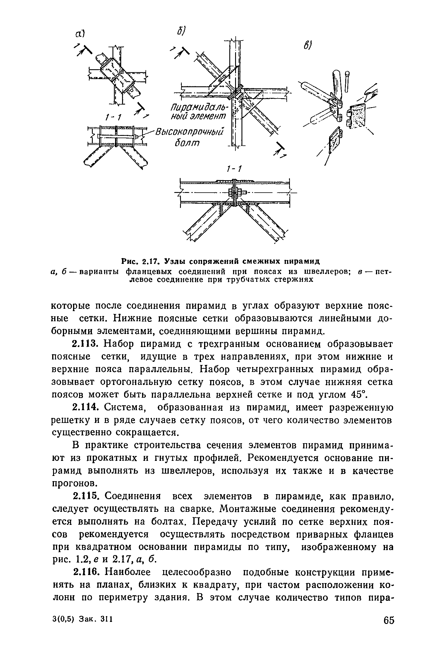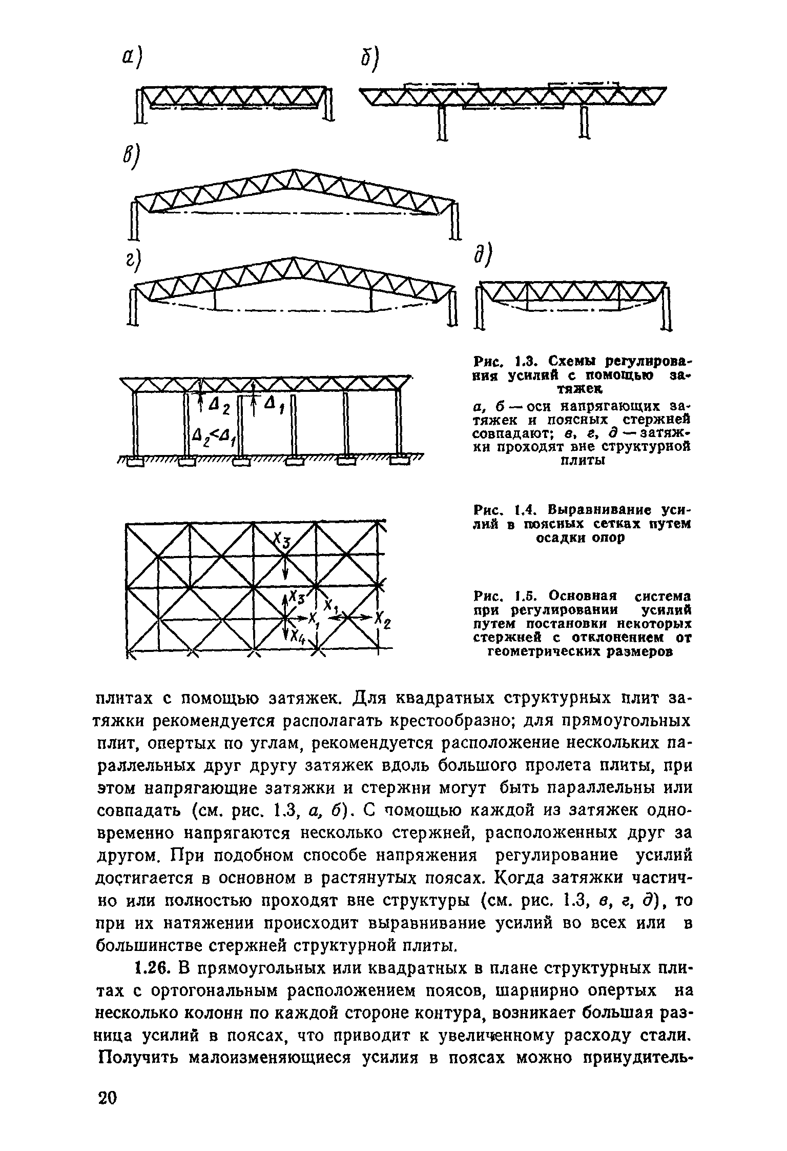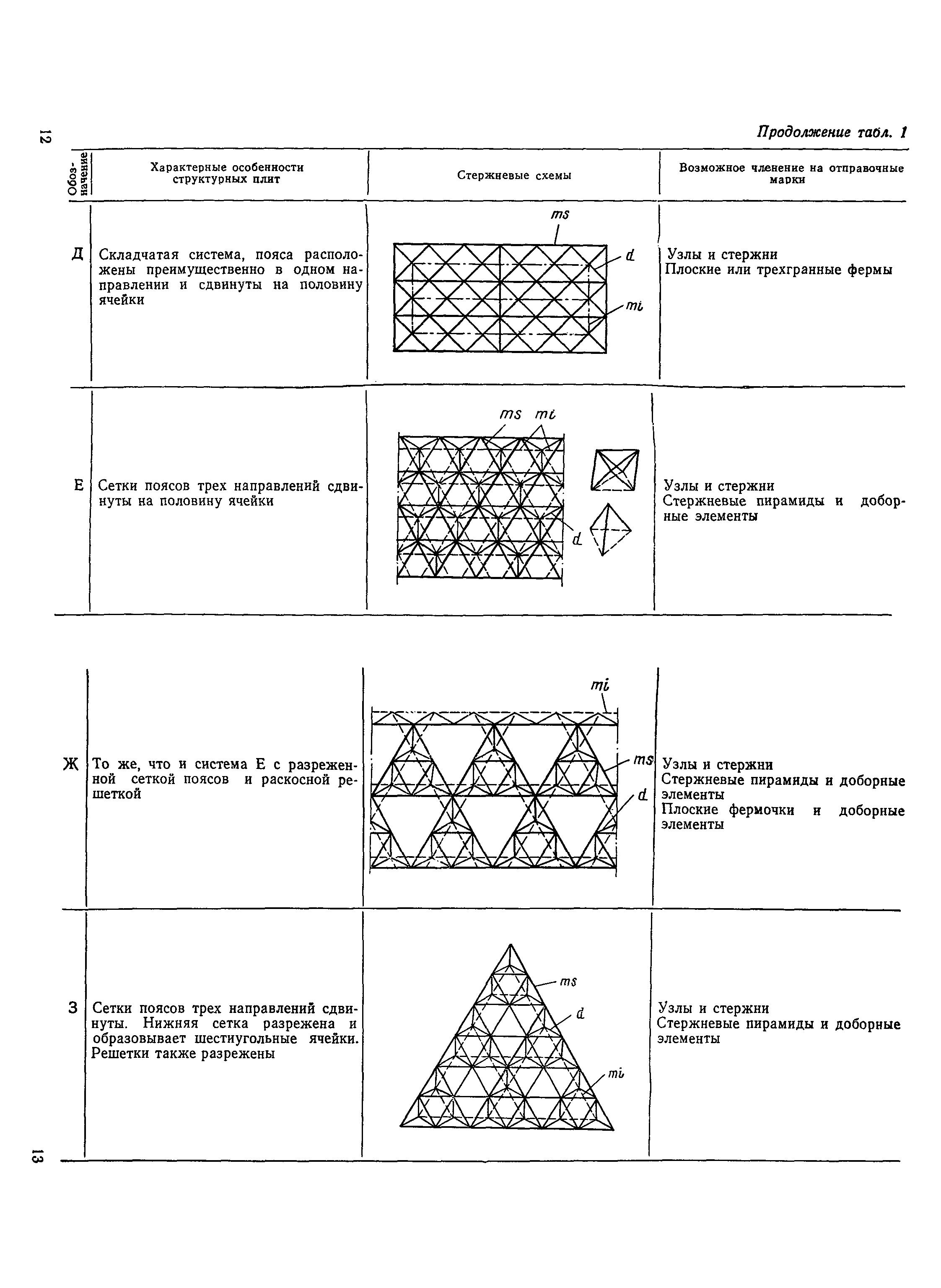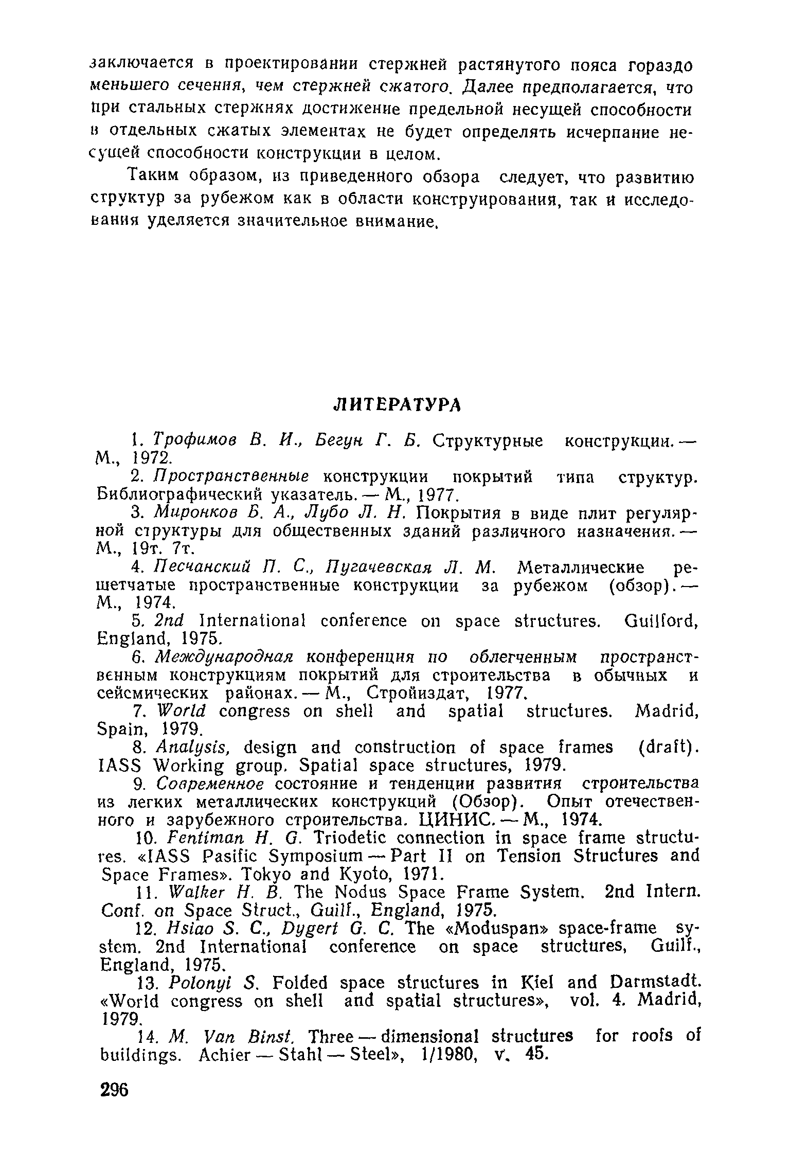 Рекомендации по проектированию структурных конструкций| Статус: | справочные материалы, мп, тпр | | Название рус.: | Рекомендации по проектированию структурных конструкций | | Дата добавления в базу: | 01.09.2013 | | Дата актуализации: | 01.01.2021 | | Область применения: | Документ содержит положения по проектированию структурных конструкций, в том числе возводимых в сейсмических районах и районах с низкими температурами, а также при наличии вибрационных нагрузок. Даны рекомендации по выбору стержневых схем, узловых сопряжений и назначению оптимальных параметров структурных плит, изложены способы приближенных расчетов стержневой системы, а также расчетов с применением ЭВМ. Приведены наиболее характерные конструктивные решения структур массового и индивидуального применения. Освещены основные способы изготовления и монтажа, а также оценки экономической эффективности структурных конструкций. Даны примеры расчетов, методика моделирования и натурного эксперимента, проводимых на стадии проектирования, а также сведения в области развития конструктивных форм и методов расчета за рубежом. Для инженерно-технических работников проектных и научно-исследовательских организаций. | | Оглавление: | Предисловие 1. Стержневые схемы структур, их узловые сопряжения, рекомендации по назначению оптимальных параметров Характеристика структур Схемы структурных конструкций и их членение на отправочные марки Классификация узлов структурных конструкций Регулирование усилий в структурных плитах Границы назначения оптимальной по расходу материала высоты структурной плиты Основные положения по оптимальному проектированию структур 2. Конструкции структурных плит Общая часть Опирание структурных плит Структурные конструкции из стержневых элементов на одну ячейку Структурные конструкции типа "Кисловодск" Структурные конструкции из унифицированного сортамента системы "МАрхИ" Структурные конструкции с длинноразмерными поясами Типовые структурные конструкции из прокатных профилей системы "ЦНИИСК" Модификации типовых конструкций из прокатных профилей Структурные плиты из плоских ферм Структурные плиты из объемных стержневых пирамид Складываемые структурные конструкции Структурные плиты с включением неметаллических элементов Структурные конструкции с металлическими и деревянными элементами Структурные конструкции с применением железобетонных плит Особенности проектирования структурных конструкций для сейсмических районов и при наличии крышных вентиляторов Подбор сечений элементов структур Расчет на прочность и устойчивость Расчет по деформациям 3. Способы приближенного расчета Цель, задачи и основные предпосылки приближенного расчета Формулы упругих характеристик при аппроксимации стержневой системы ортотропной пластиной Методика расчета структур как трехслойной пластины со средним слоем конечной жесткости Влияние жесткости узлов на распределение внутренних усилий Расчет структурных конструкций с узловыми эксцентриситетами Оценка влияния податливости узловых сопряжений на напряженно-деформированное состояние конструкции Расчет сжатых стержней структуры на устойчивость Расчет структурной конструкции как перекрестной системы Особенности приближенного расчета многопролетных структур Расчет структурных конс