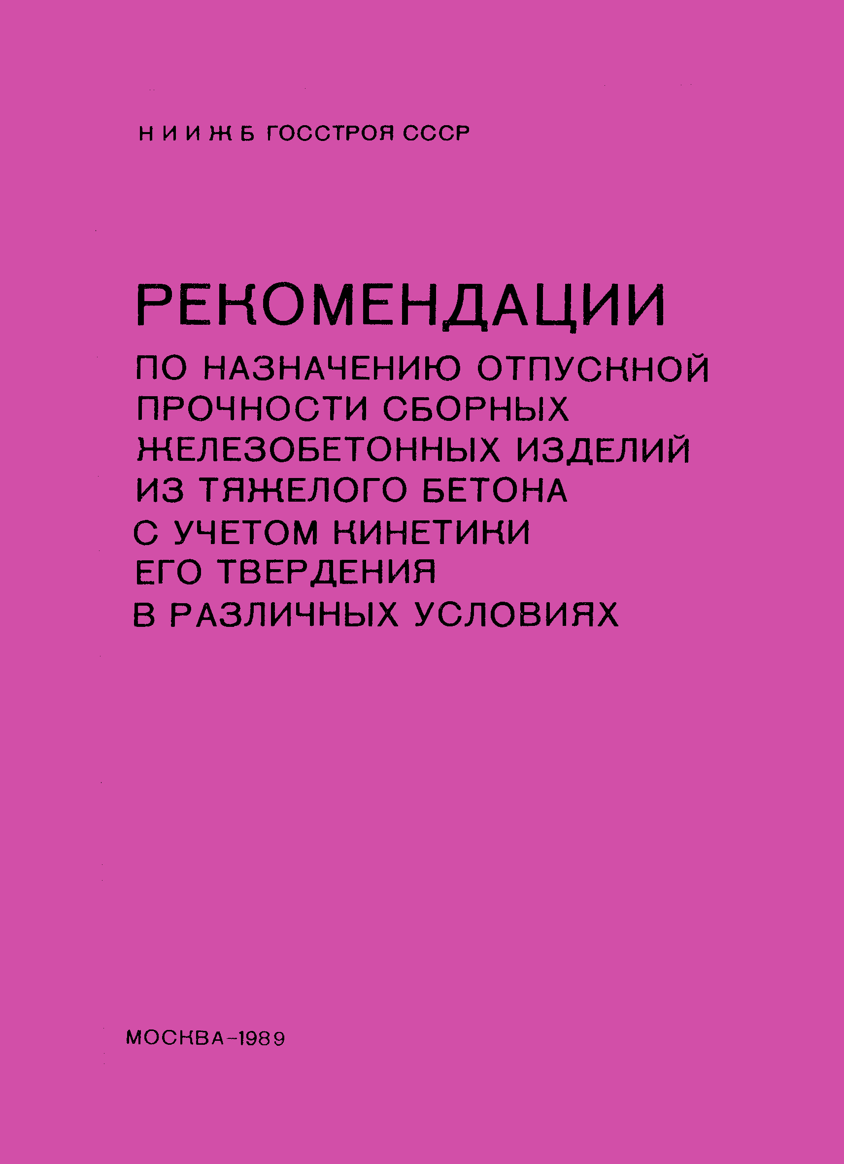 | Название рус.: | Рекомендации по назначению отпускной прочности сборных железобетонных изделий из тяжелого бетона с учетом кинетики его твердения в различных условиях |
