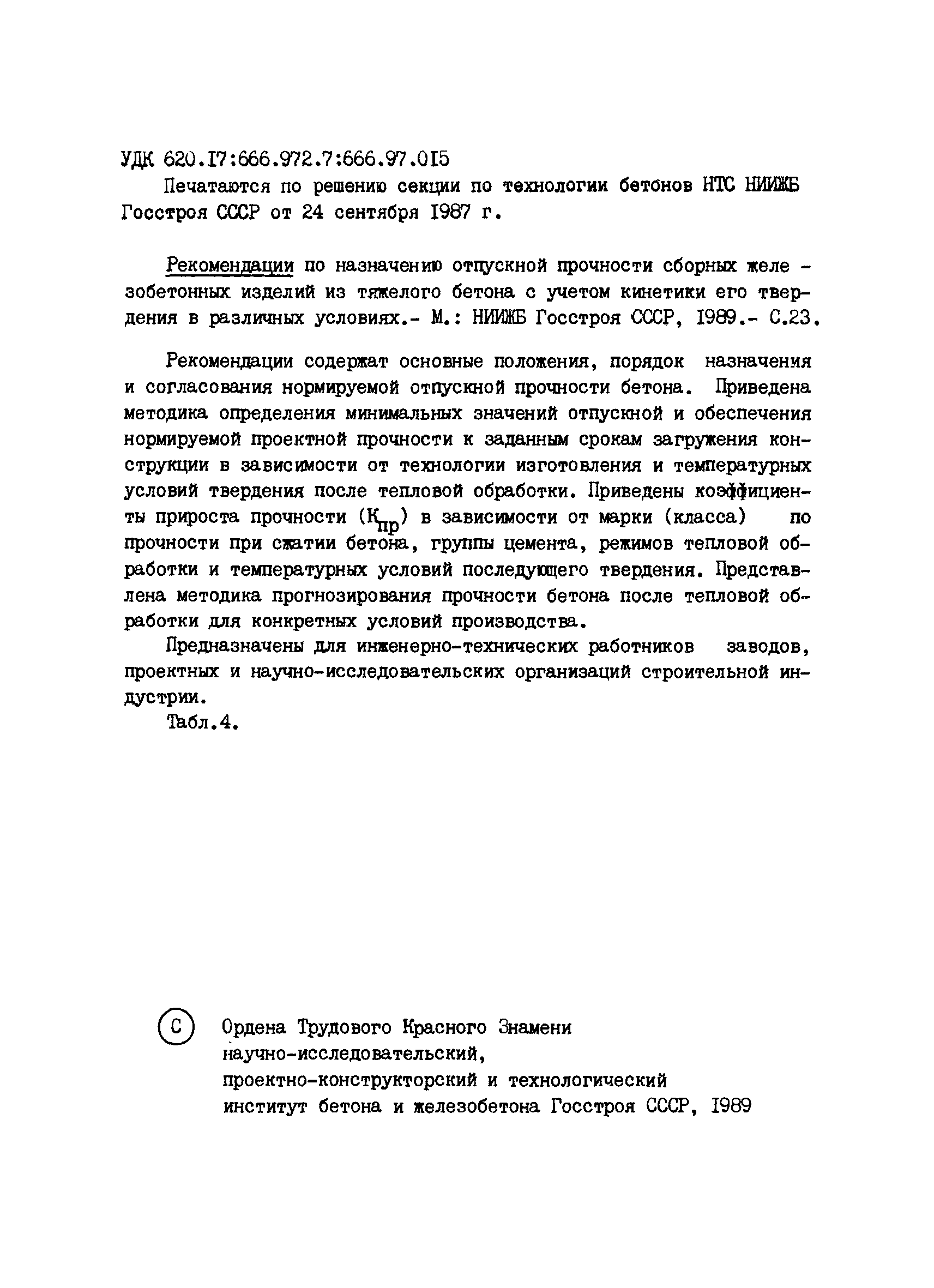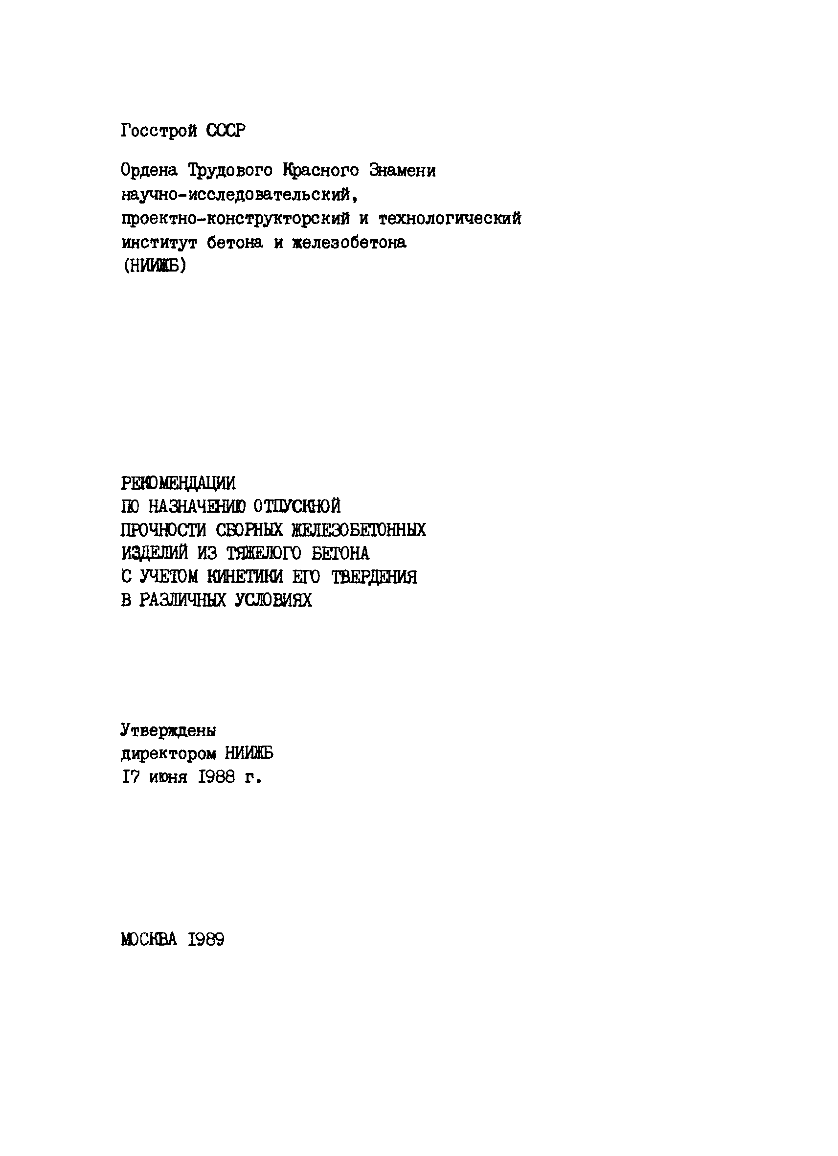 | Утверждён: | 17.06.1988 НИИЖБ Госстроя СССР (NIIZhB, USSR Gosstroy ) |
