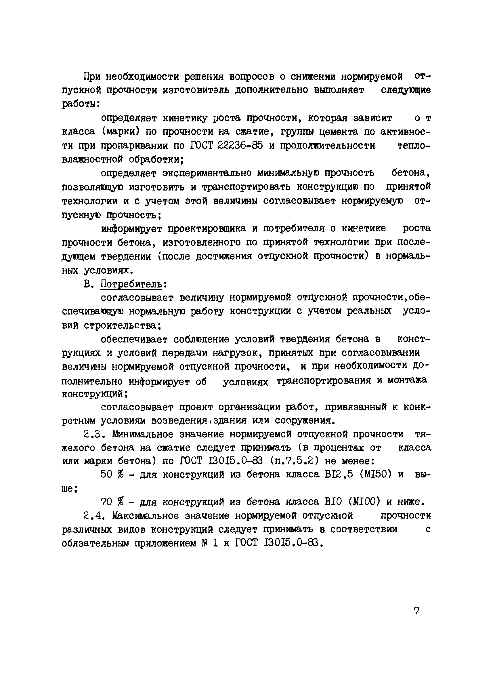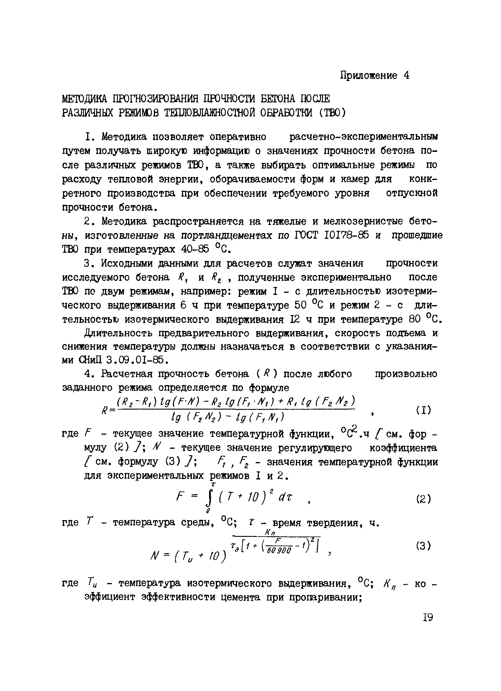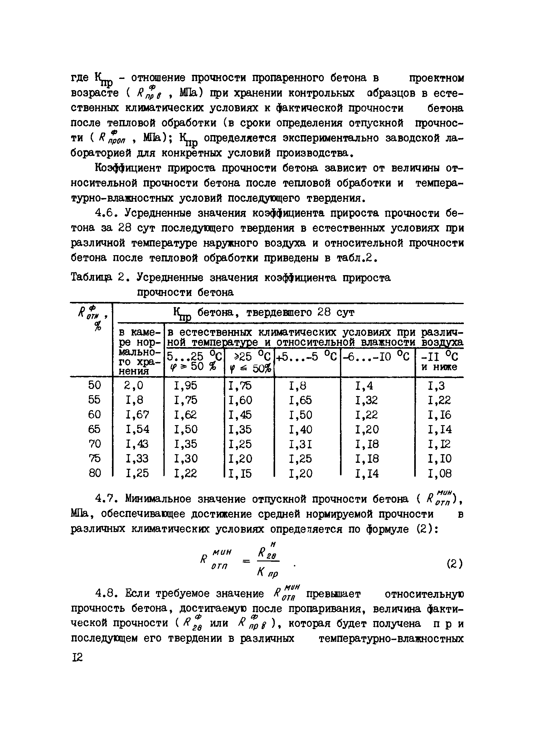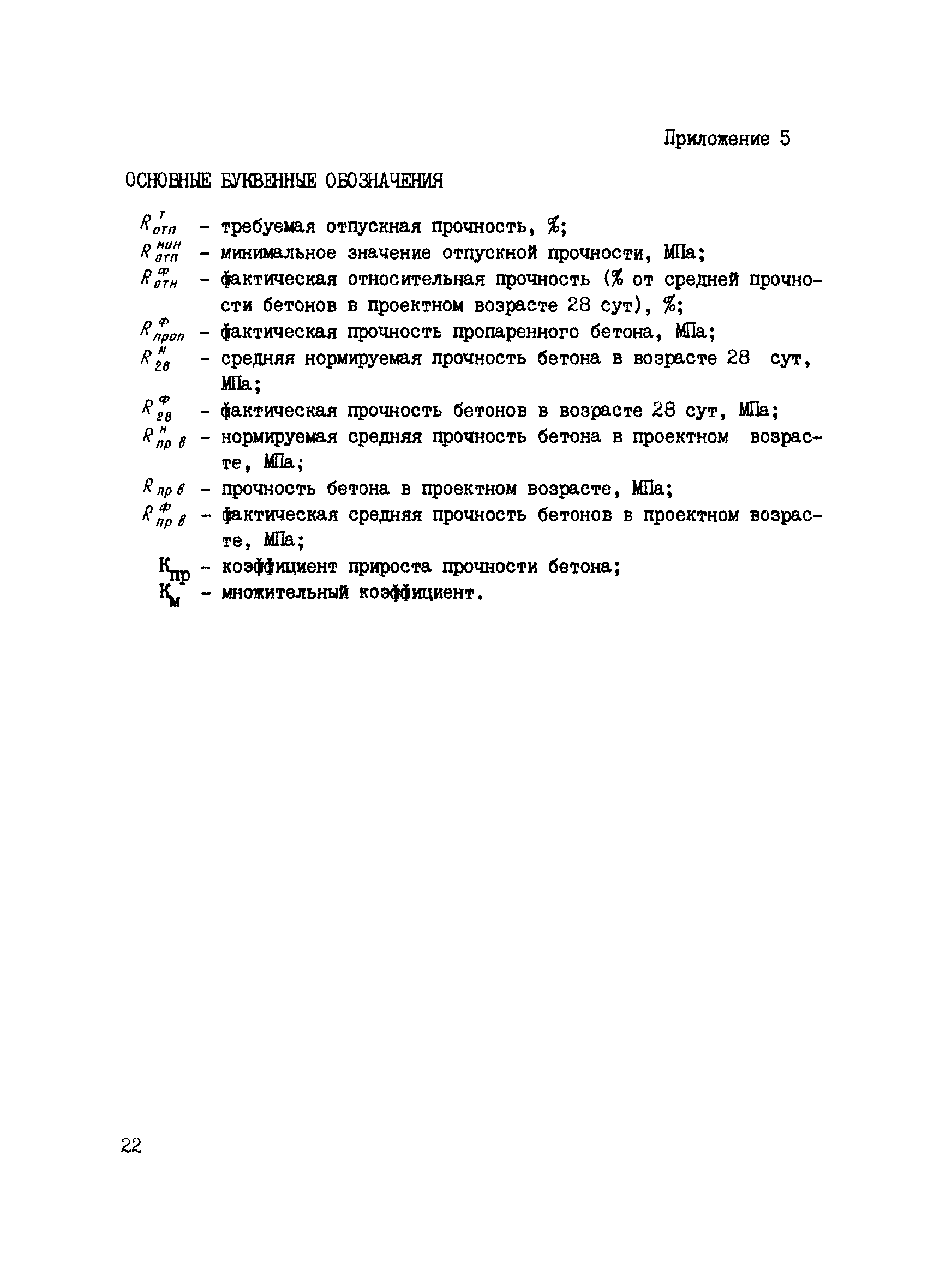 | Оглавление: | Предисловие 1. Общие положения и область применения 2. Порядок назначения и согласования нормируемой отпускной прочности 3. Назначение нормируемой отпускной прочности бетона в зависимости от температурных условий последующего твердения бетона конструкций 4. Назначение нормируемой отпускной прочности бетона при проектном возрасте 28 сут 5. Назначение нормируемой отпускной прочности бетона при проектном возрасте, превышающем 28 сут Приложение 1. Минимальные значения отпускной прочности бетона при последующем его твердении при различных температурах в зависимости от относительной прочности бетона после тепловой обработки Приложение 2. Фактическая прочность бетона, обеспечивающая достижение при последующем хранении в течение 28 сут при различных температурах Приложение 3. Минимальные значения отпускной прочности, обеспечивающие достижение нормируемой проектной прочности в зависимости от возраста бетона и условий твердения Приложение 4. Методика прогнозирования прочности бетона после различных режимов тепловлажностной обработки (ТВО) Приложение 5. Основные буквенные обозначения |