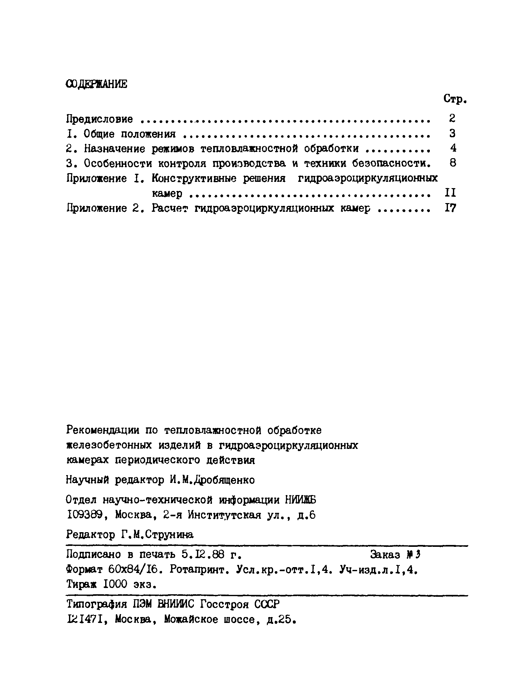 | Оглавление: | Предисловие 1. Общие положения 2. Назначение режимов тепловлажной обработки 3. Особенности контроля производства и техники безопасности Приложение 1. Конструктивные решения гидроаэроциркуляционных камер Приложение 2. Расчет гидроаэроциркуляционных камер |