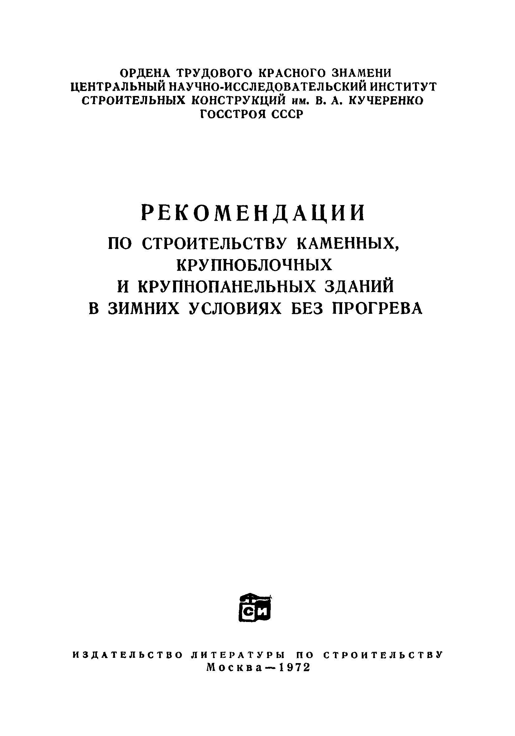 | Название рус.: | Рекомендации по строительству каменных, крупноблочных и крупнопанельных зданий в зимних условиях без прогрева |