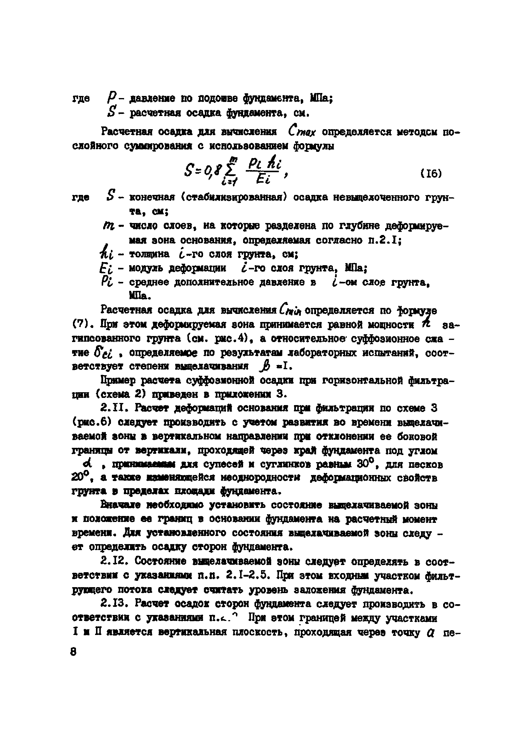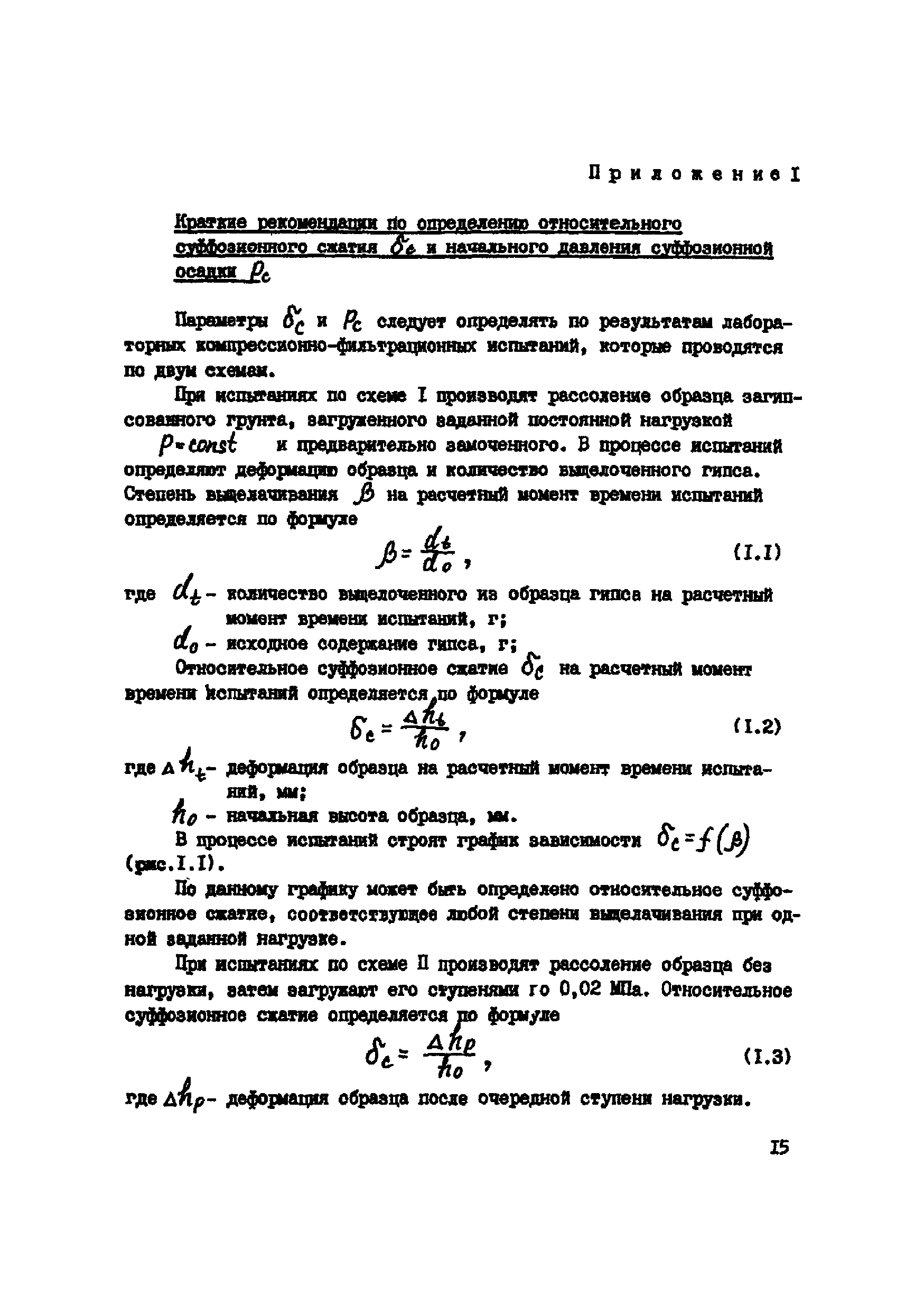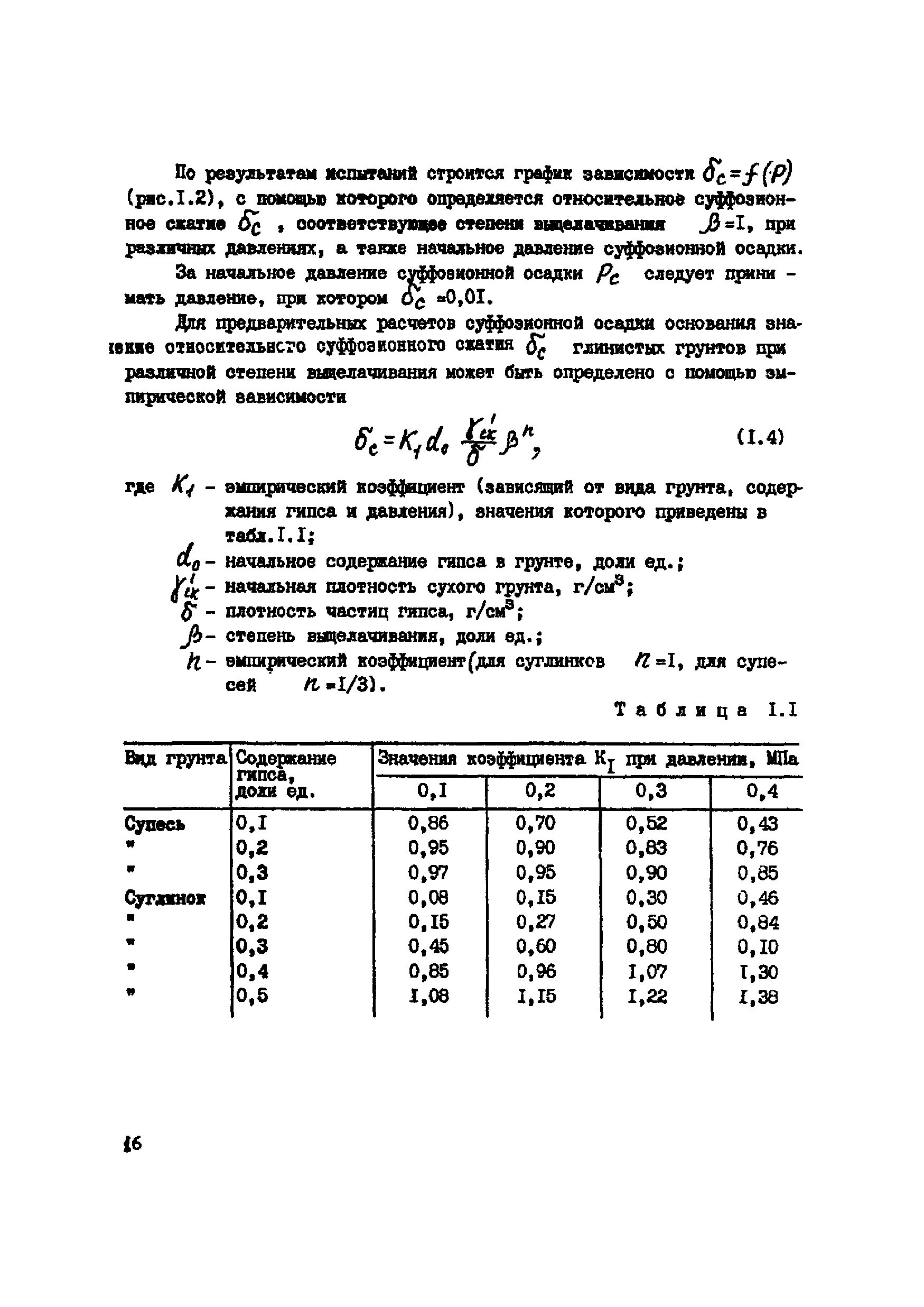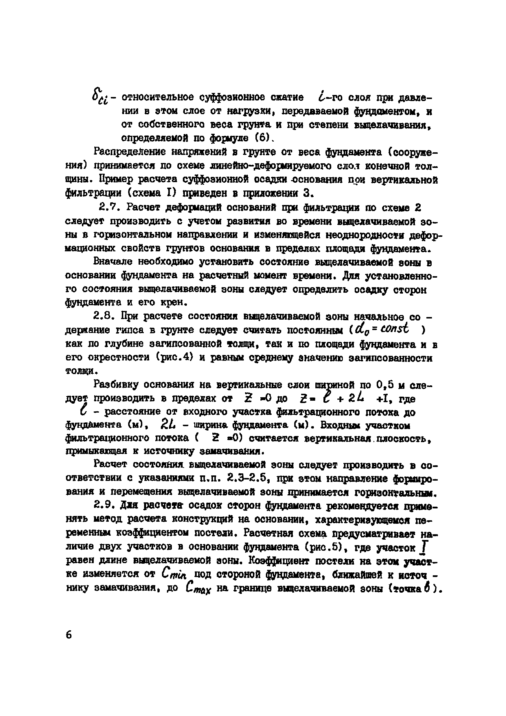 Рекомендации по расчету суффозионных деформаций оснований зданий и сооружений, возводимых на загипсованных грунтах| Статус: | действует | | Название рус.: | Рекомендации по расчету суффозионных деформаций оснований зданий и сооружений, возводимых на загипсованных грунтах | | Дата добавления в базу: | 01.09.2013 | | Дата актуализации: | 01.01.2021 | | Область применения: | Рекомендации распространяются на проектирование оснований, сложенных суглинками, супесями и песками, находящимися в естественных условиях в воздушно-сухом (необводненном) состоянии и содержащими гипс в любом количестве, а также примеси легкорастворимых солей в количестве не более 5 % | | Оглавление: | 1. Общие положения 2. Проведение расчета Приложение 1. Определение относительной суффозионной осадки и начального давления суффозионной осадки Приложение 2. Определение коэффициента растворения Приложение 3. Примеры расчета суффозионной осадки | | Разработан: | НИИОСП им. Н.М. Герсеванова Госстроя СССР