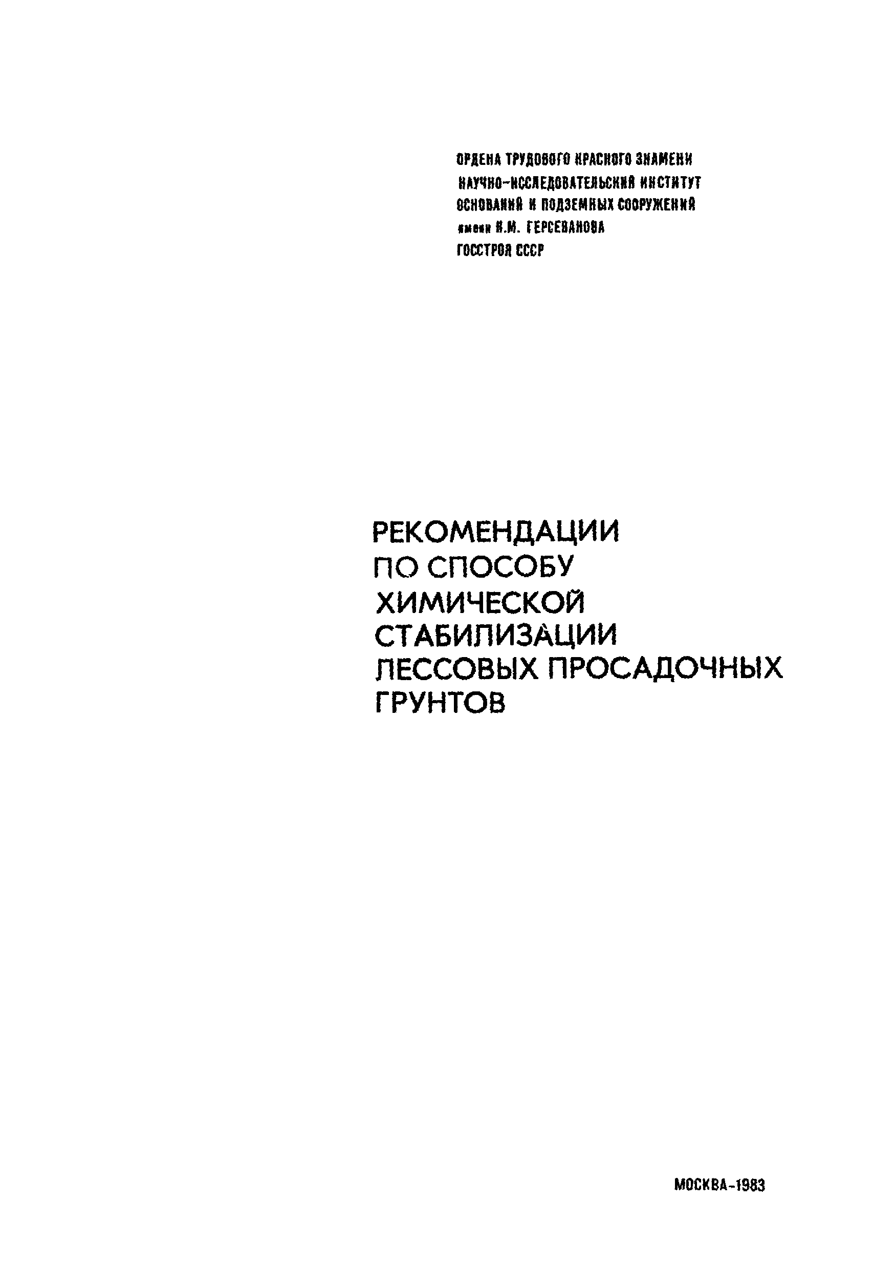 | Название рус.: | Рекомендации по способу химической стабилизации лессовых просадочных грунтов |