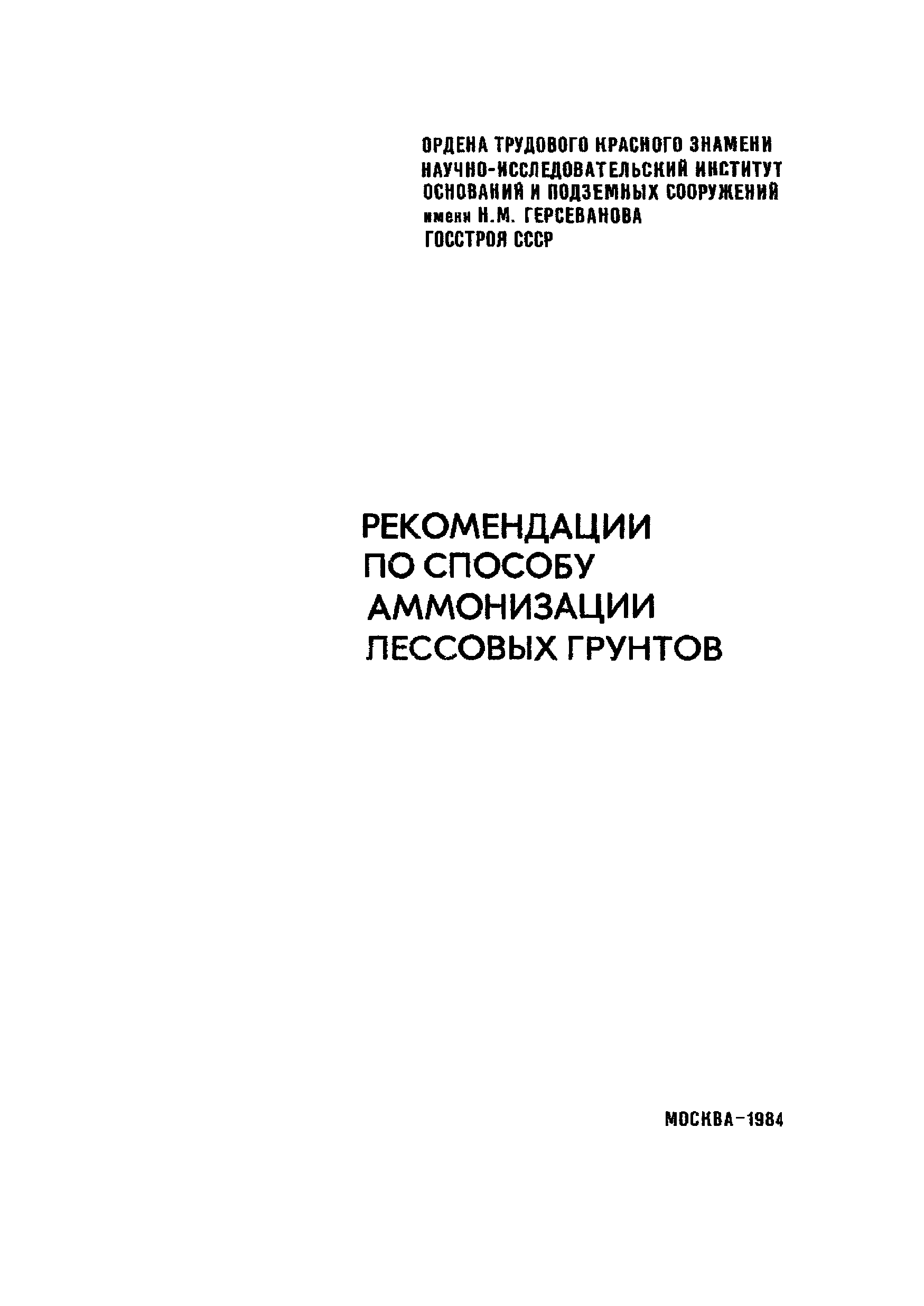| Название рус.: | Рекомендации по способу аммонизации лессовых грунтов |