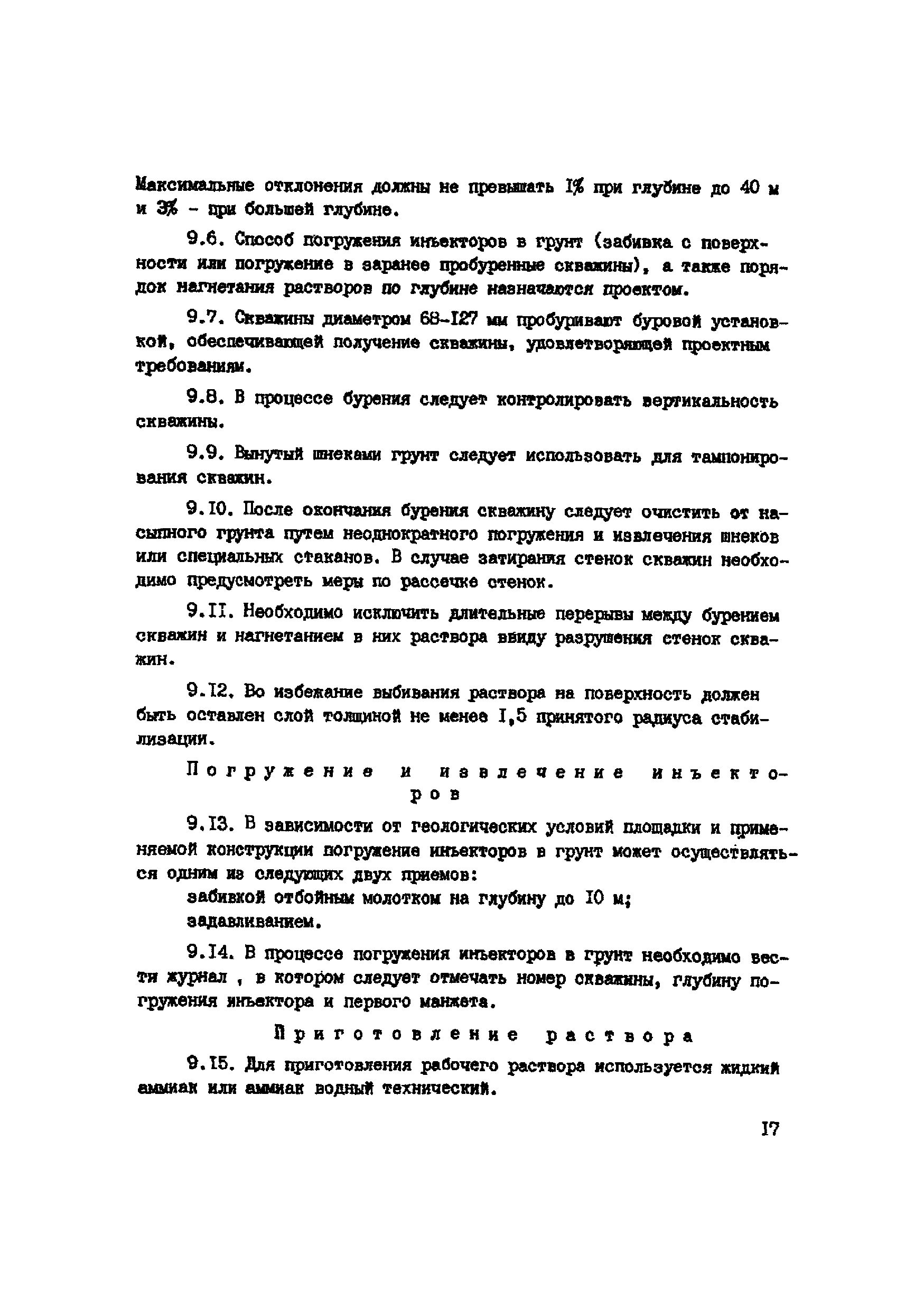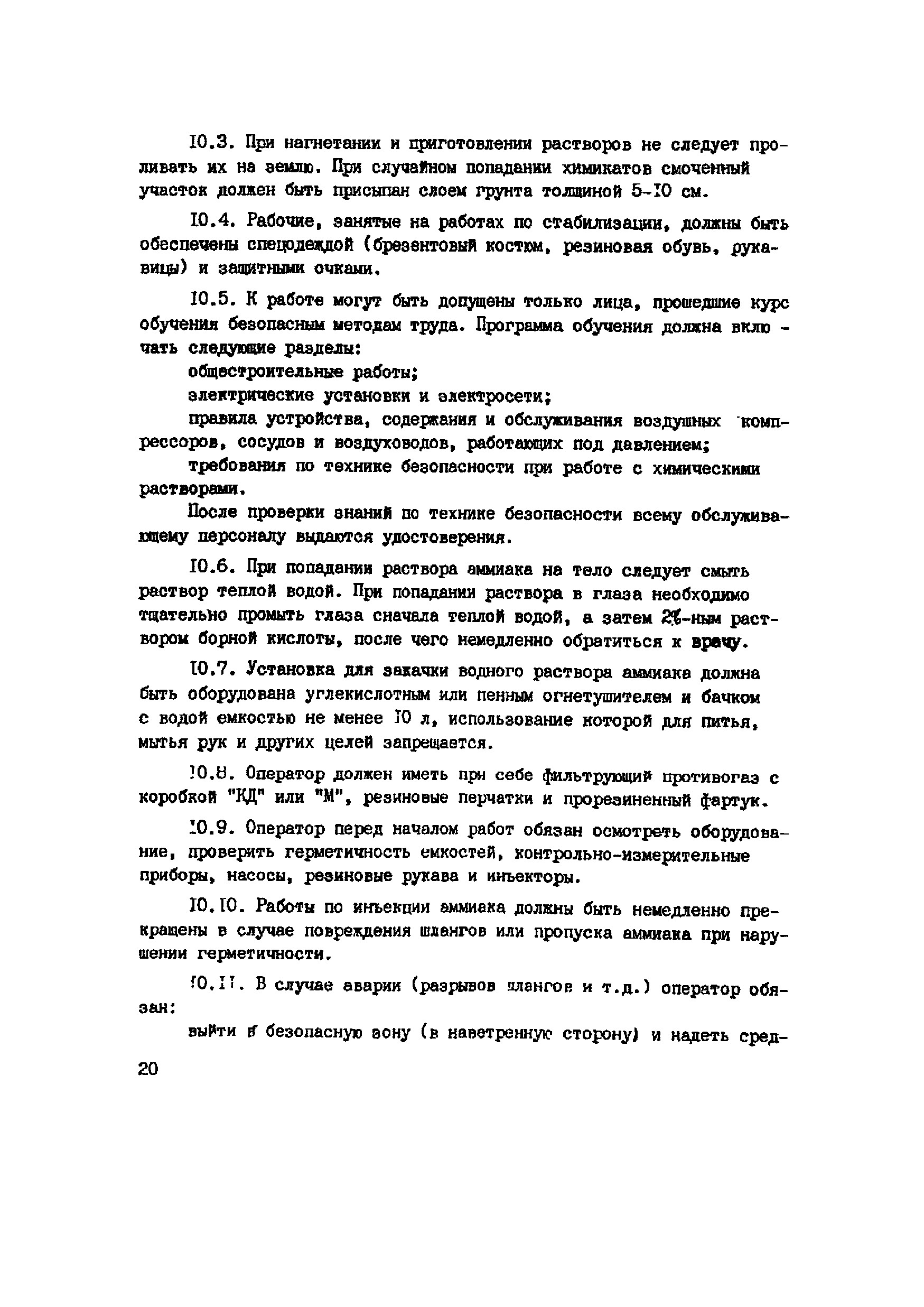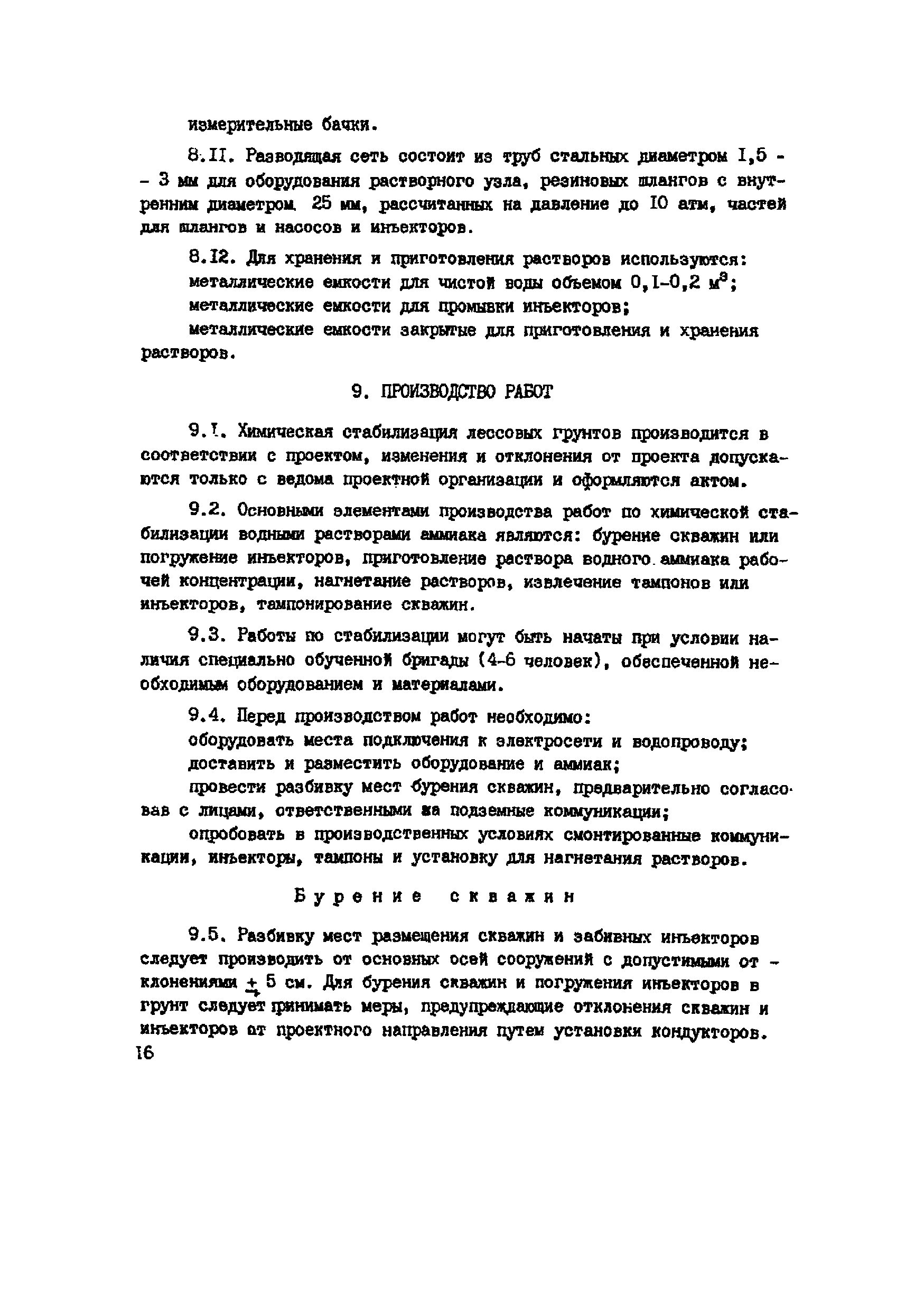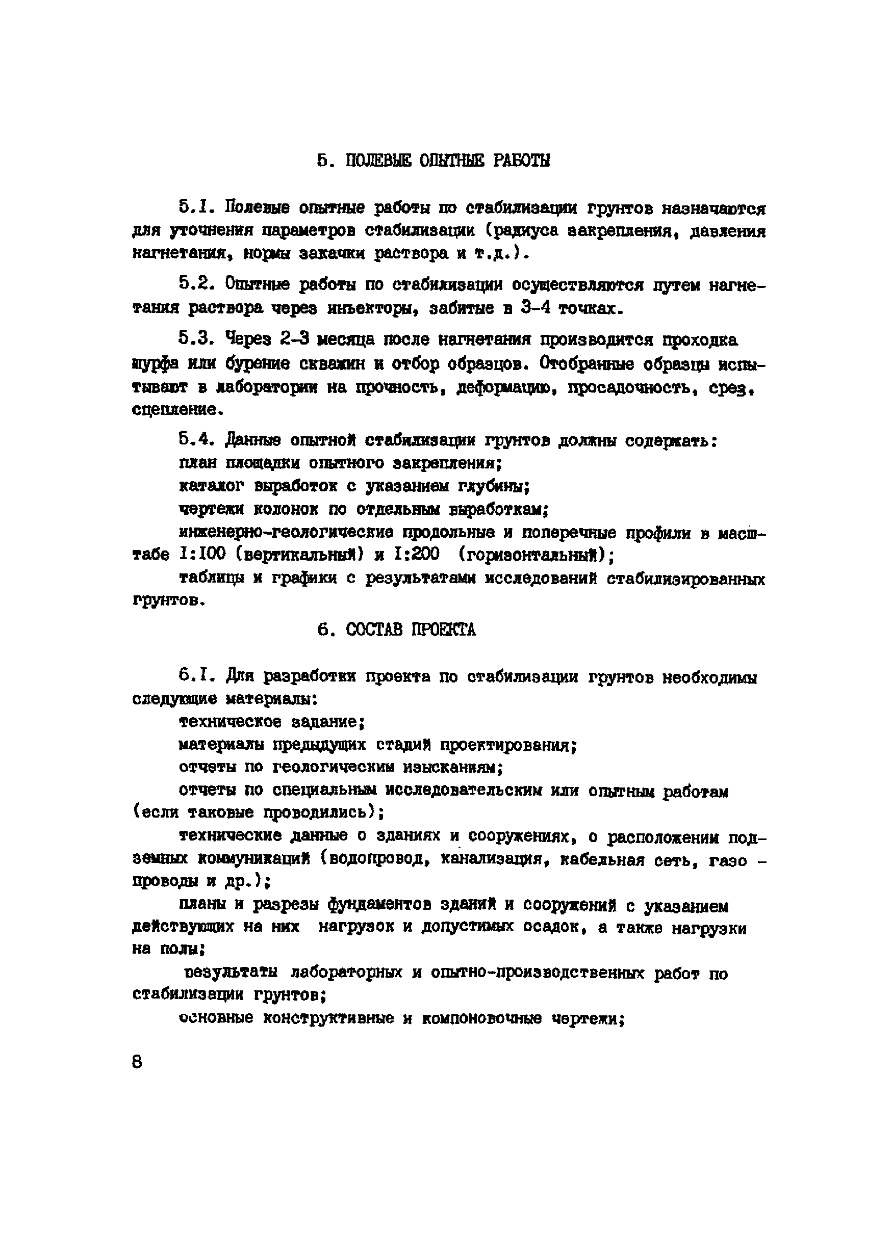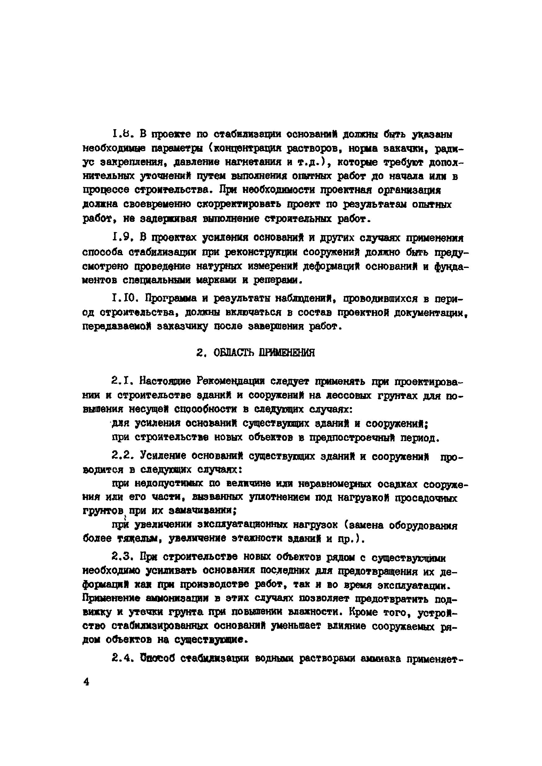 | Оглавление: | 1. Общие положения 2. Область применения 3. Изыскательские работы 4. Лабораторные исследования грунтов 5. Полевые опытные работы 6. Состав проекта 7. Материалы 8. Оборудование 9. Производство работ 10 Требования по технике безопасности при работе с аммиаком 11. Контроль качества к документации Пример стабилизации Приложение 1. Основные параметры для растворов аммиака Приложение 2. Определение емкости поглощения лессовых грунтов в щелочном растворе |