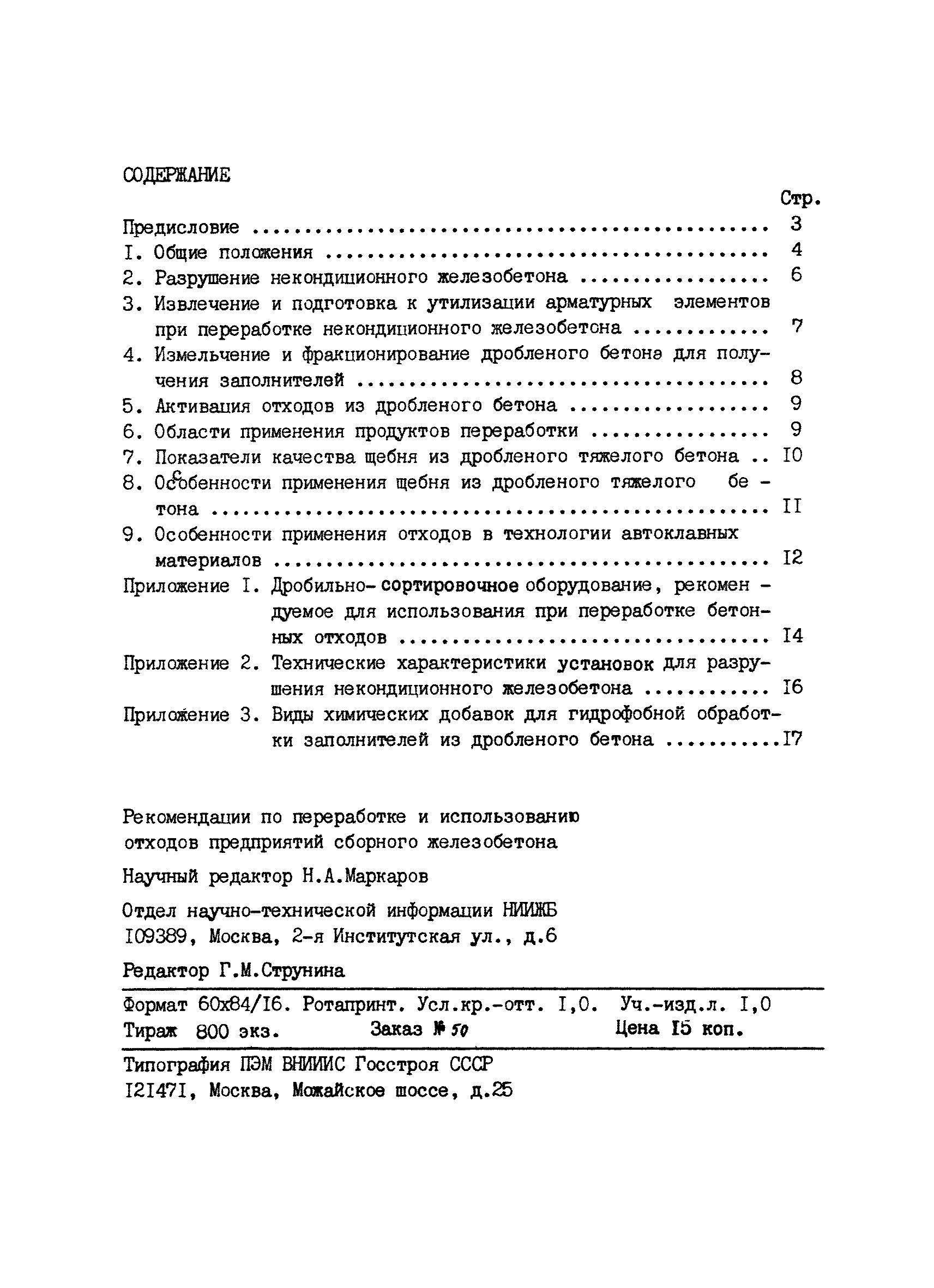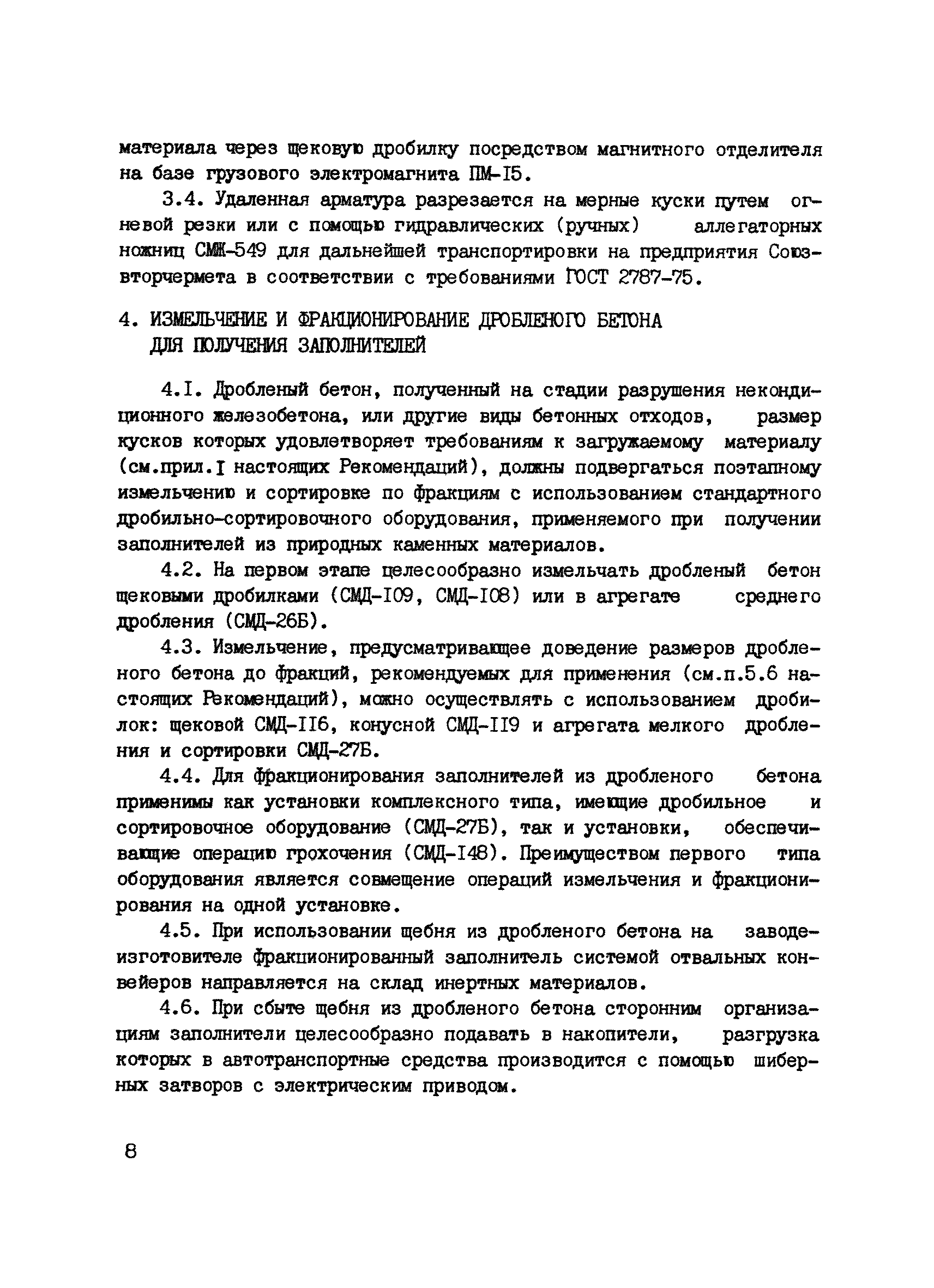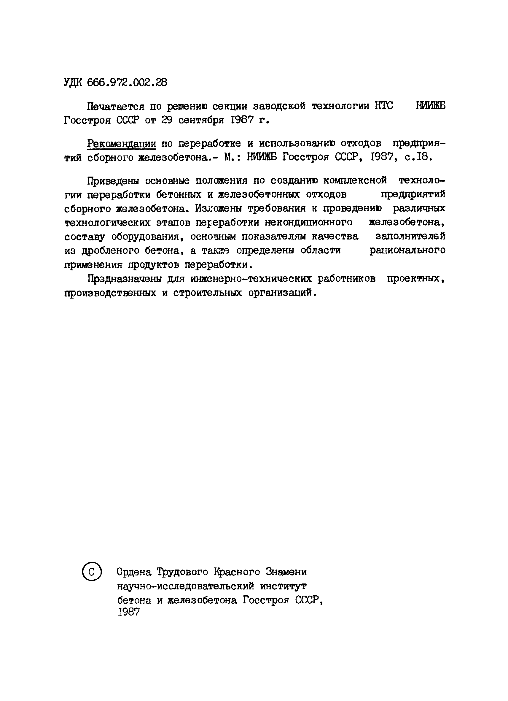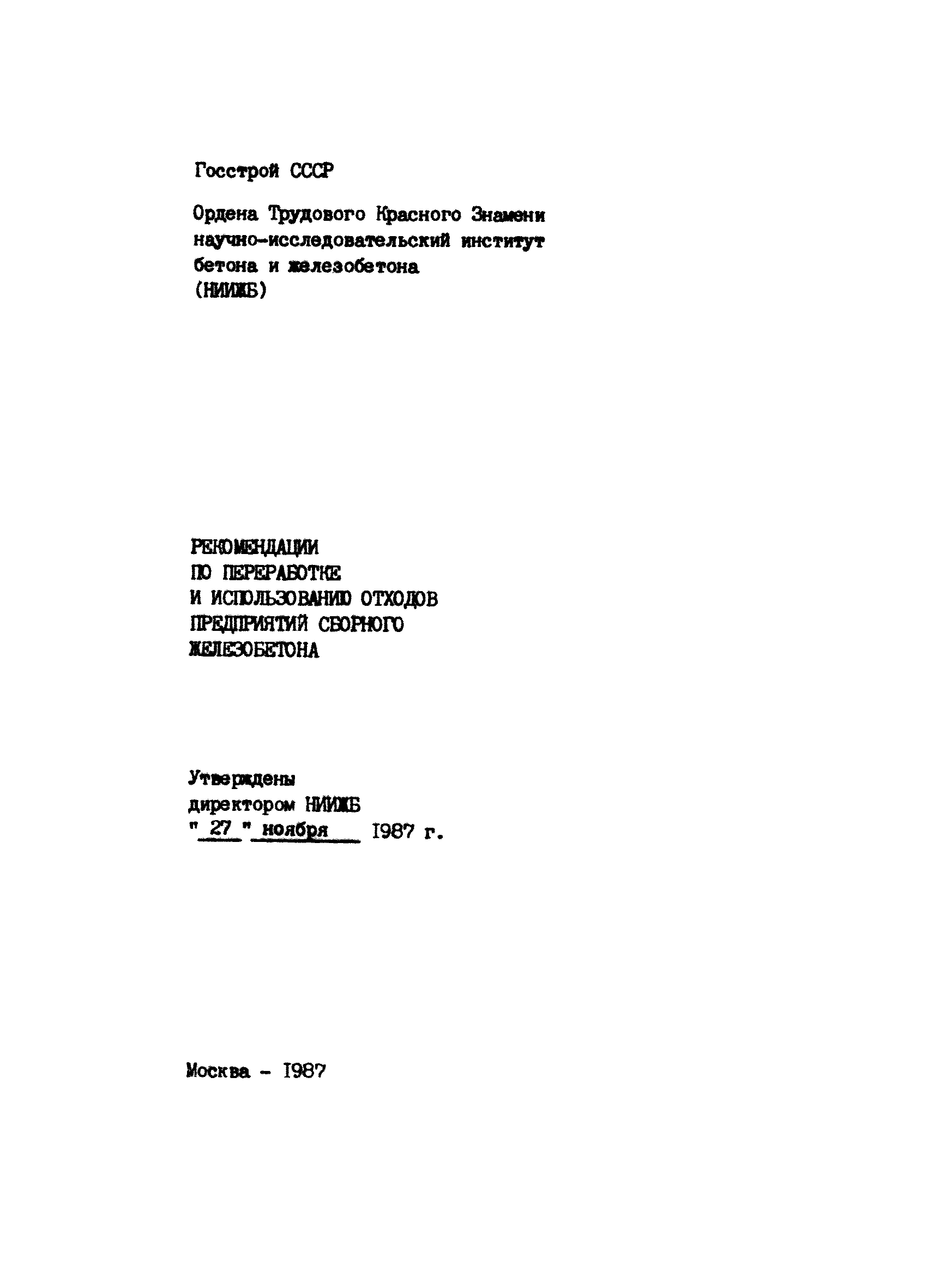 | Название рус.: | Рекомендации по переработке и использованию отходов предприятий сборного железобетона |