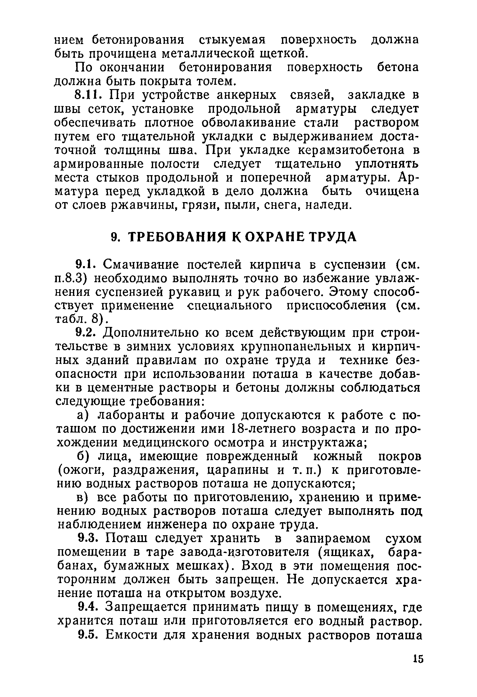 | Оглавление: | Предисловие 1. Особенности беспрогревной технологии возведения кирпичных стен комплексной конструкции с применением добавки ПКМ 2. Область применения 3. Технико-экономические показатели 4. Организация работ при возведении стен 5. Приготовление и транспортирование раствора (растворной части легкого бетона) и тяжелого бетона 6. Контроль за качеством работ 7. Подбор состава раствора (растворной части бетона) с добавкой ПКМ 8. Состав операций и организация рабочего места при возведении стен 9. Требования к охране труда 10. Требования к материалам Приложение 1. Определение соотношения компонентов в добавке ПКМ при оптимизации содержания щелочей и щелочеактивных окислов в кладочном растворе (растворной части бетона) Приложение 2. Технические условия на типовую стационарную растворную установку, модернизированную для приготовления безпрогревного раствора с добавкой ПКМ Приложение 3. Примеры выполнения технологической линии приготовления глиняного теста Приложение 4. Физико-механические испытания раствора с добавкой ПКМ, кладки, изготовленной на таком растворе, а также бетона с этой добавкой |