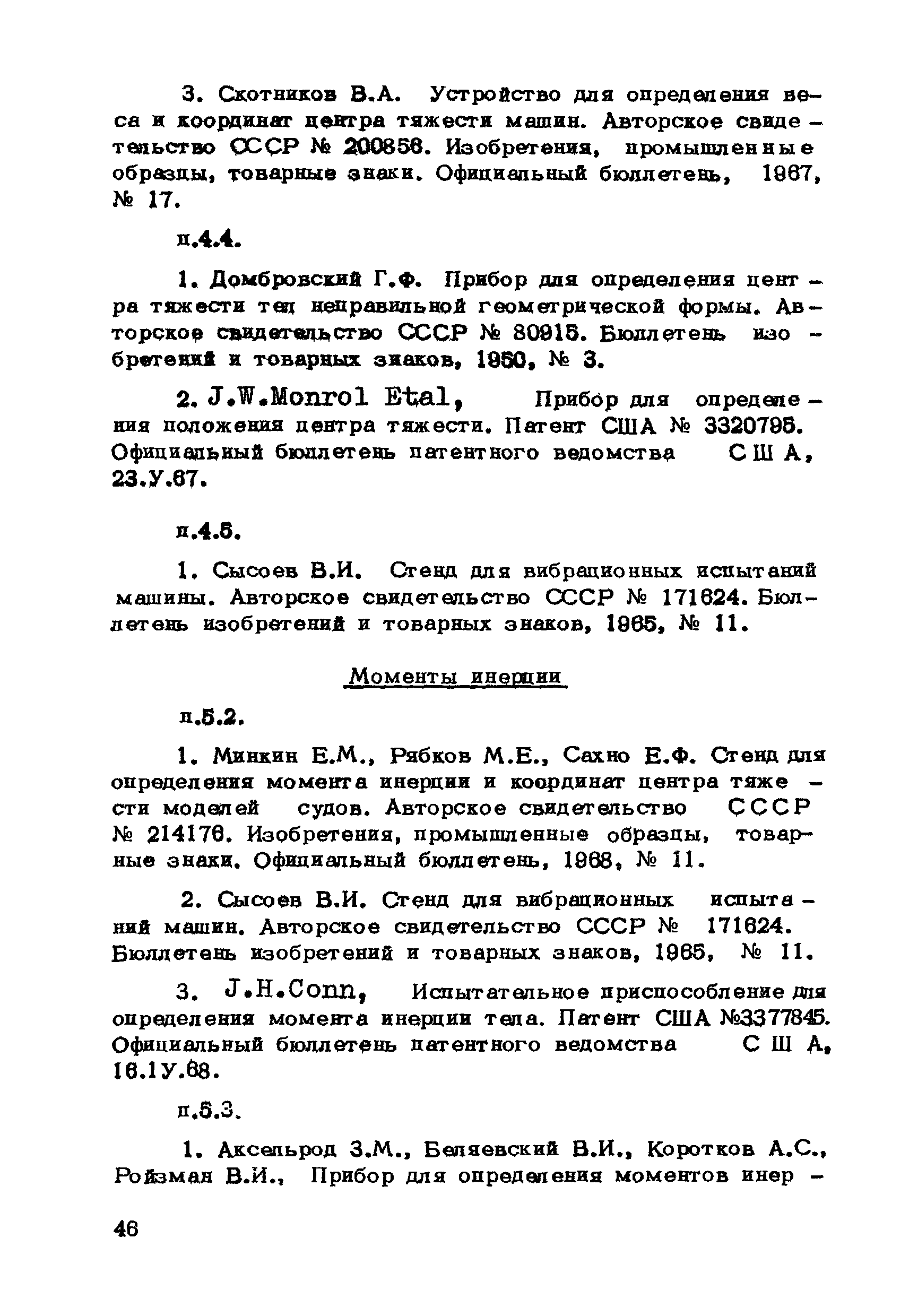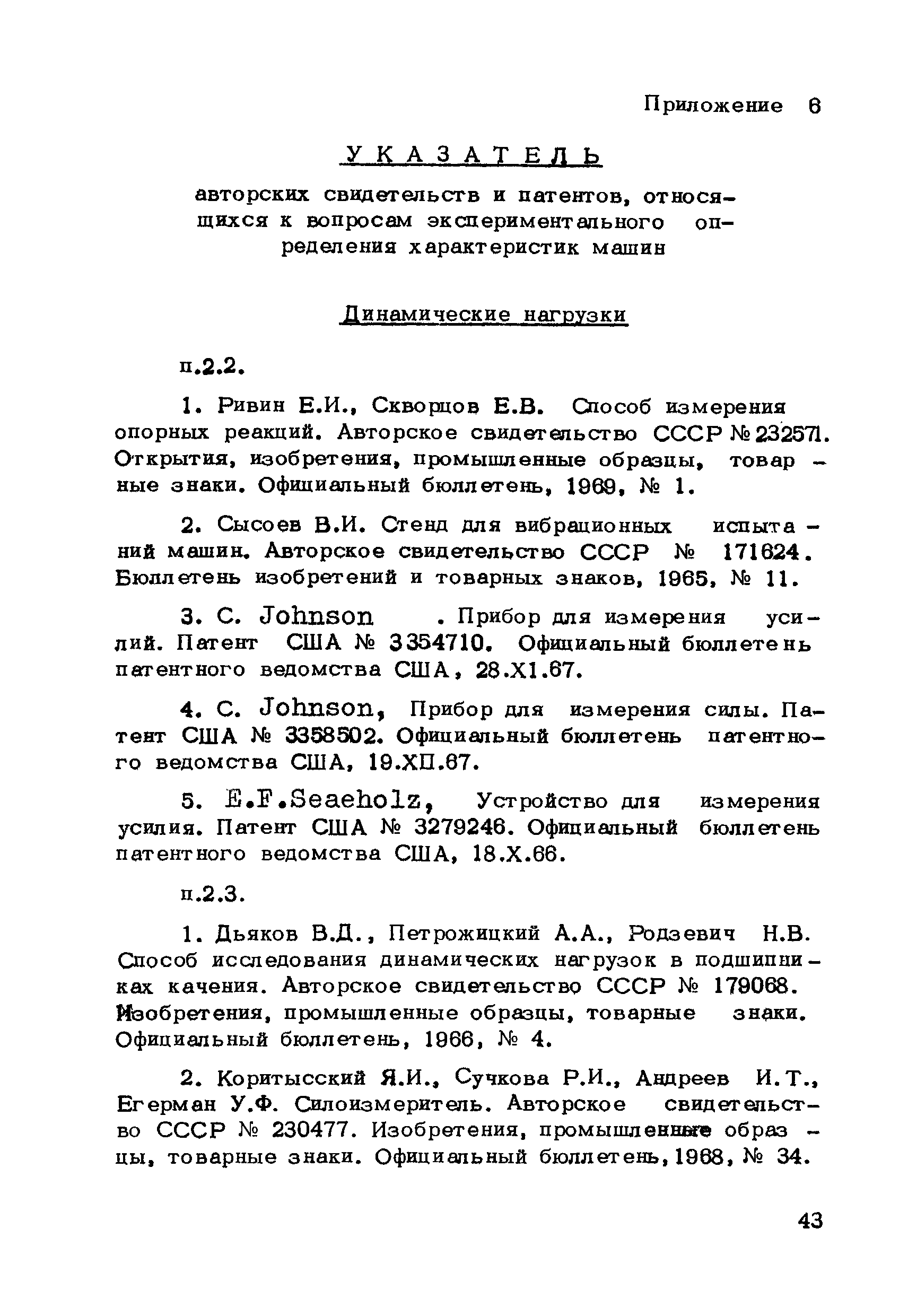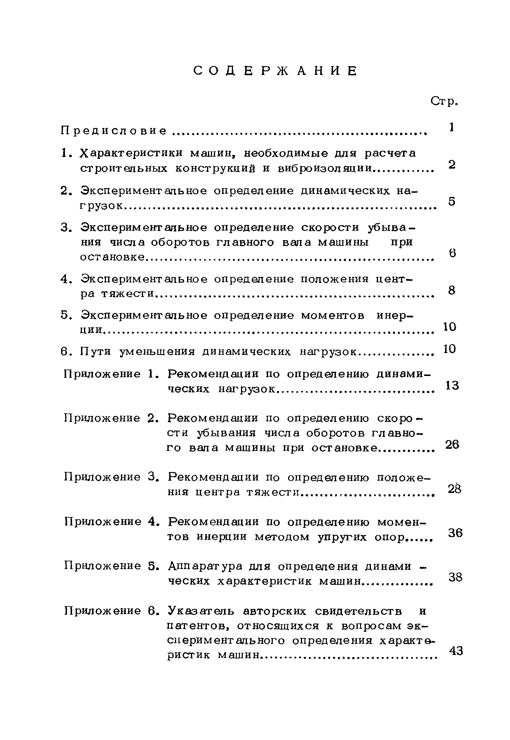 | Оглавление: | Предисловие 1. Характеристики машин, необходимые для расчета строительных конструкций и виброизоляции 2. Экспериментальное определение динамических нагрузок 3. Экспериментальное определение скорости убывания числа оборотов главного вала машины при остановке 4. Экспериментальное определение положения центра тяжести 5. Экспериментальное определение моментов инерции 6. Пути уменьшения динамических нагрузок Приложение 1. Рекомендации по определению динамических нагрузок Приложение 2. Рекомендации по определению скорости убывания числа оборотов главного вала машины при остановке Приложение 3. Рекомендации по определению положения центра тяжести Приложение 4. Рекомендации по определению моментов инерции методом упругих опор Приложение 5. Аппаратура для определения динамических характеристик машин Приложение 6. Указатель авторских свидетельств и патентов, относящихся к вопросам экспериментального определения характеристик машин |