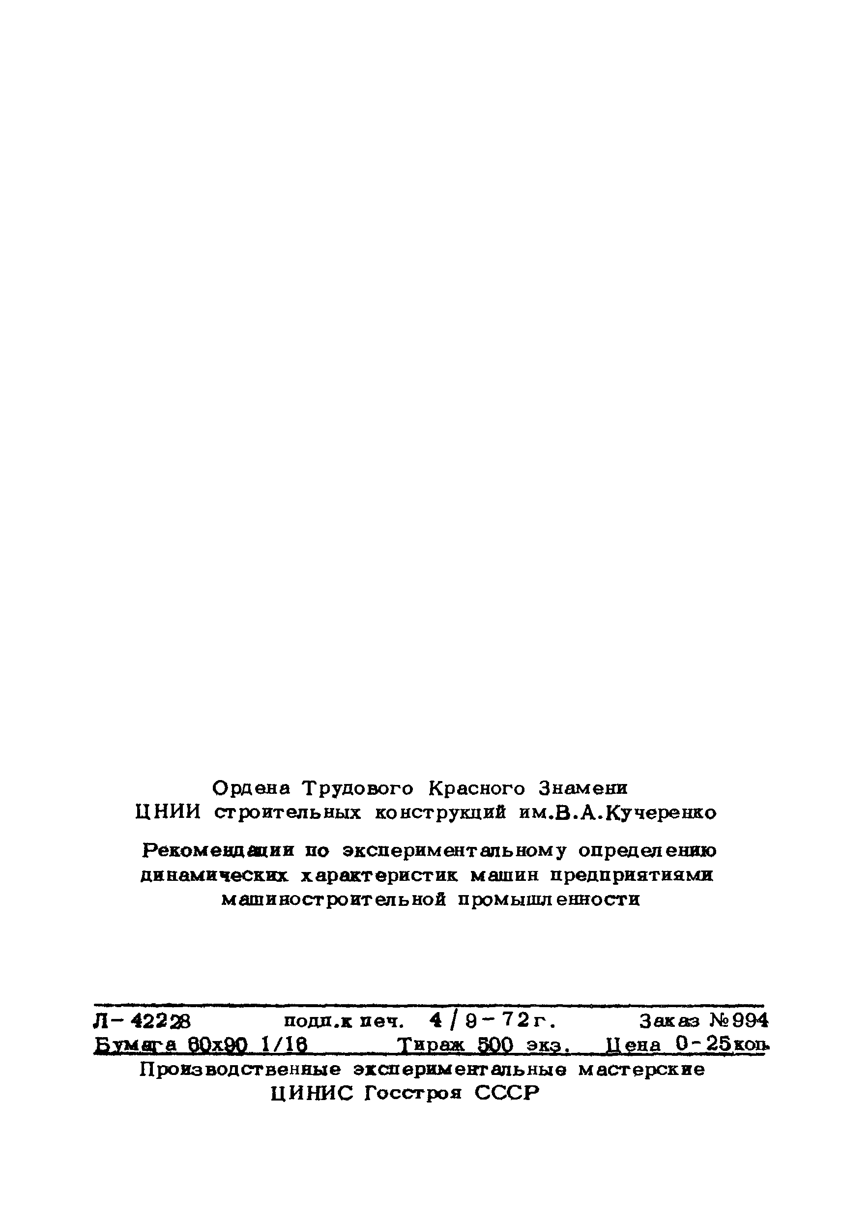 | Название рус.: | Рекомендации по экспериментальному определению динамических характеристик машин предприятиями машиностроительной промышленности |