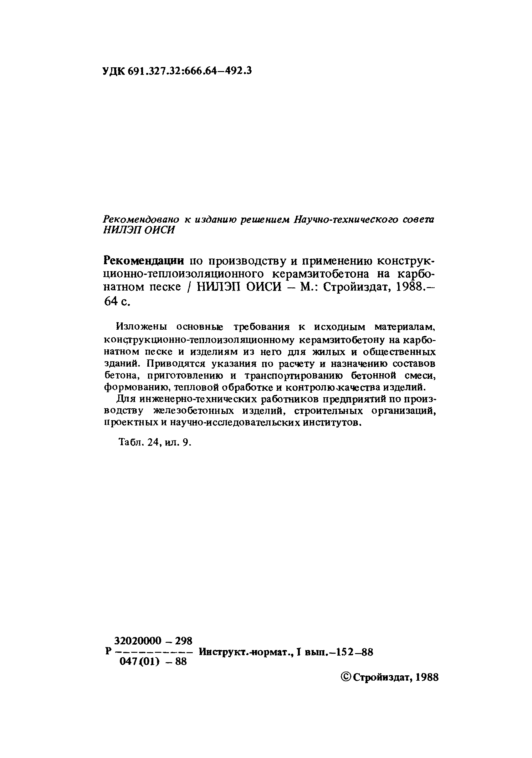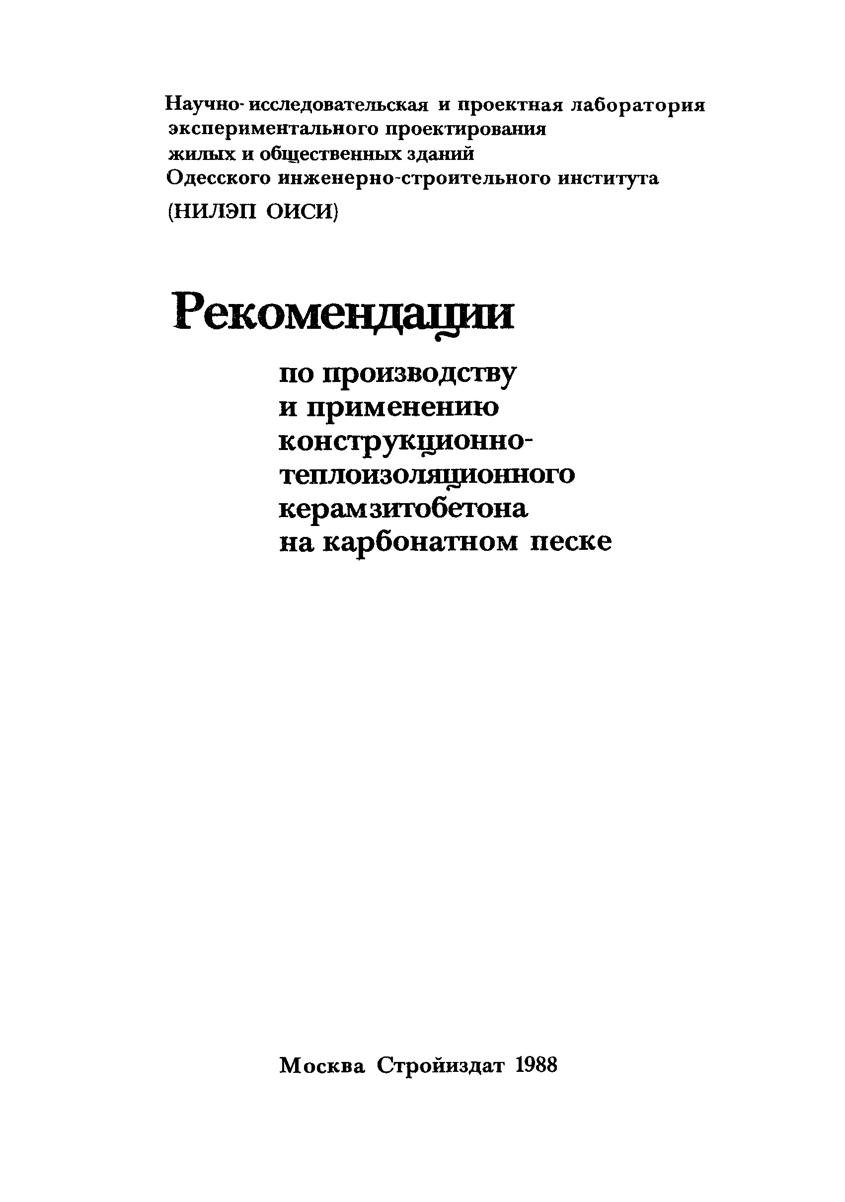 | Название рус.: | Рекомендации по производству и применению конструкционно-теплоизоляционного керамзитобетона на карбонатном песке |
