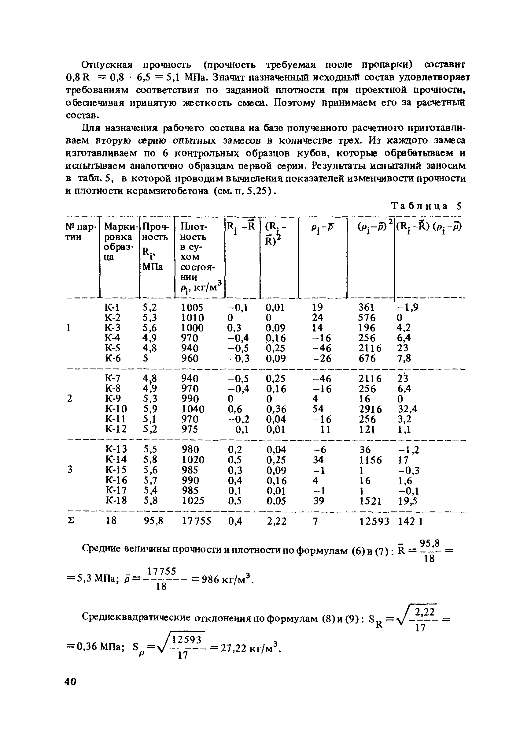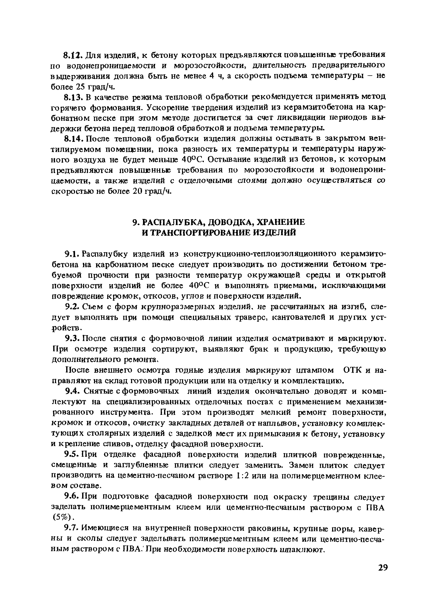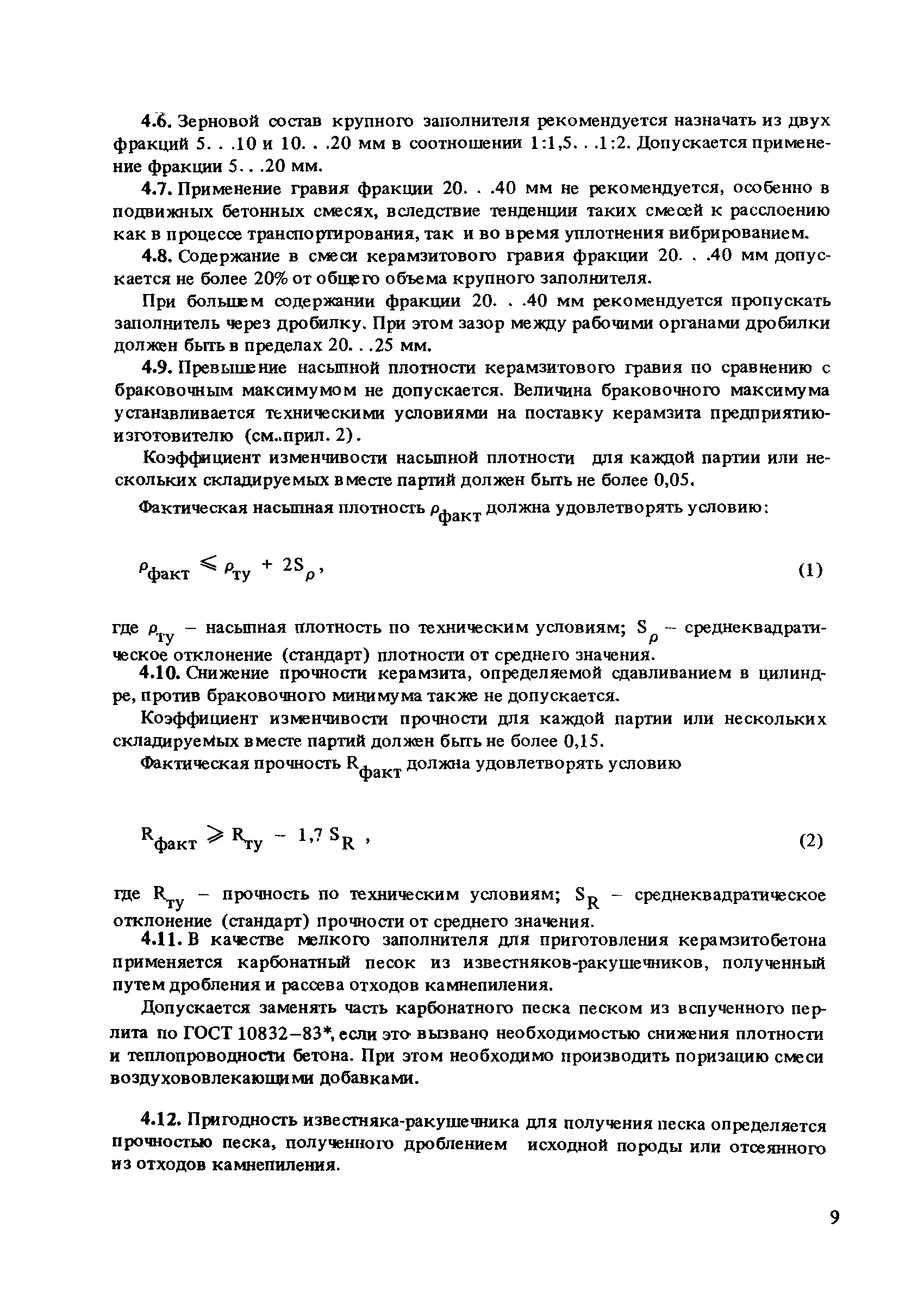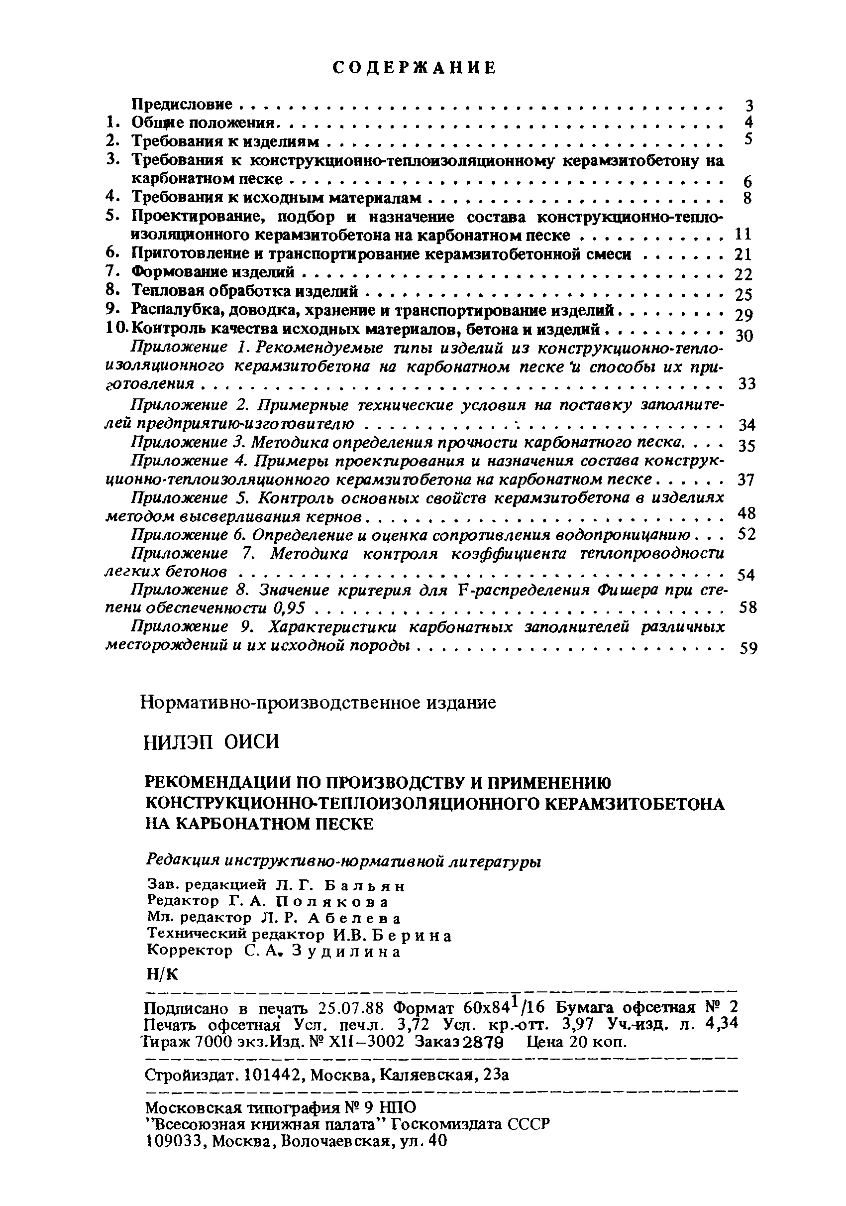| Оглавление: | Предисловие 1. Общие положения 2. Требования к изделиям 3. Требования к конструкционно-теплоизоляционному керамзитобетону на карбонатном песке 4. Требования к исходным материалам 5. Проектирование, подбор и назначение состава конструкционно-теплоизоляционного керамзитобетона на карбонатном песке 6. Приготовление и транспортирование керамзитобетонной смеси 7. Формование изделий 8. Тепловая обработка изделий 9. Распалубка, доводка, хранение и транспортирование изделий 10. Контроль качества исходных материалов, бетона и изделий Приложение 1. Рекомендуемые типы изделий из конструкционно-теплоизоляционного керамзитобетона на карбонатном песке способы их приготовления Приложение 2. Примерные технические условия на поставку заполнителей предприятию-изготовителю Приложение 3. Методика определения прочности карбонатного песка Приложение 4. Примеры проектирования и назначения состава конструкционно-теплоизоляционного керамзитобетона на карбонатном песке Приложение 5. Контроль основных свойств керамзитобетона в изделиях методом высверливания кернов Приложение 6. Определение и оценка сопротивления водопроницанию Приложение 7. Методика контроля коэффициента теплопроводности легких бетонов Приложение 8. Значение критерия для F-распределения Фишера при степени обеспеченности Приложение 9. Характеристики карбонатных заполнителей различных месторождений и их исходной породы |