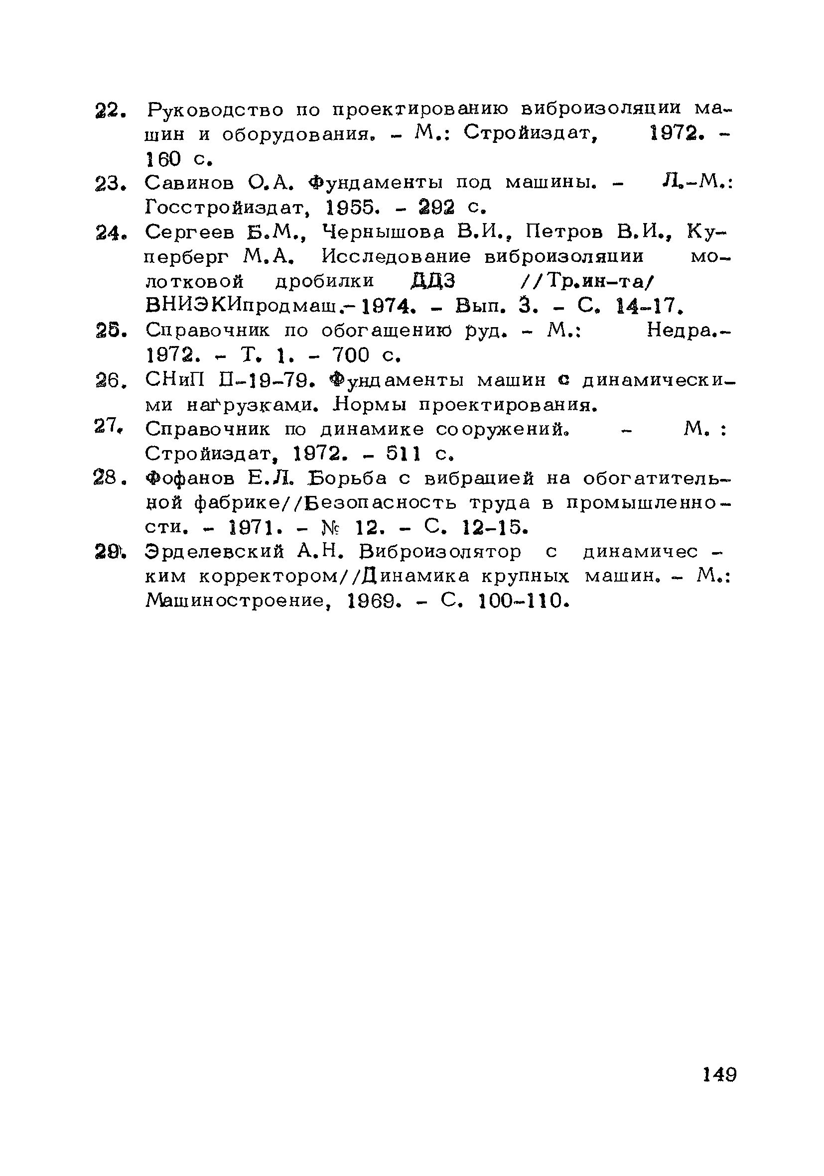 | Оглавление: | Предисловие 1. Общие положения 2. Основные параметры машин Общие указания Основные параметры машин Статические нагрузки на виброизоляторы 3. Виброизоляция обогатительного оборудования Общие указания по виброизоляции конусных дробилок Подвесная виброизоляция конусных дробилок Опорная виброизоляция конусных дробилок Виброизоляция грохотов Особенности проектирования строительных конструкций, поддерживающих грохоты Особенности проектирования несущих конструкций под дробилки Виброизоляция барабанных смесителей Молотковые дробилки и центрифуги 4. Повышение эффективности виброзащиты Применение рычажных корректоров колебаний для повышения эффективности виброизоляции Повышение эффективности виброизоляции машин в пуско-остановочных режимах Различные способы виброзащиты Приложение 1. Динамические нагрузки от барабанных смесителей и окомкователей Приложение 2. Определение нагрузок, передающихся от виброизолированных машин на строительные конструкции в переходном режиме численно-графическим методом Приложение 3. Определение нагрузок на опорную конструкцию от вибрационного грохота Приложение 4. Определение частот собственных колебаний разгрузочной балки с упругоприсоединенными грохотами Приложение 5. Пример расчета виброизоляции конусной дробилки Список литературы |