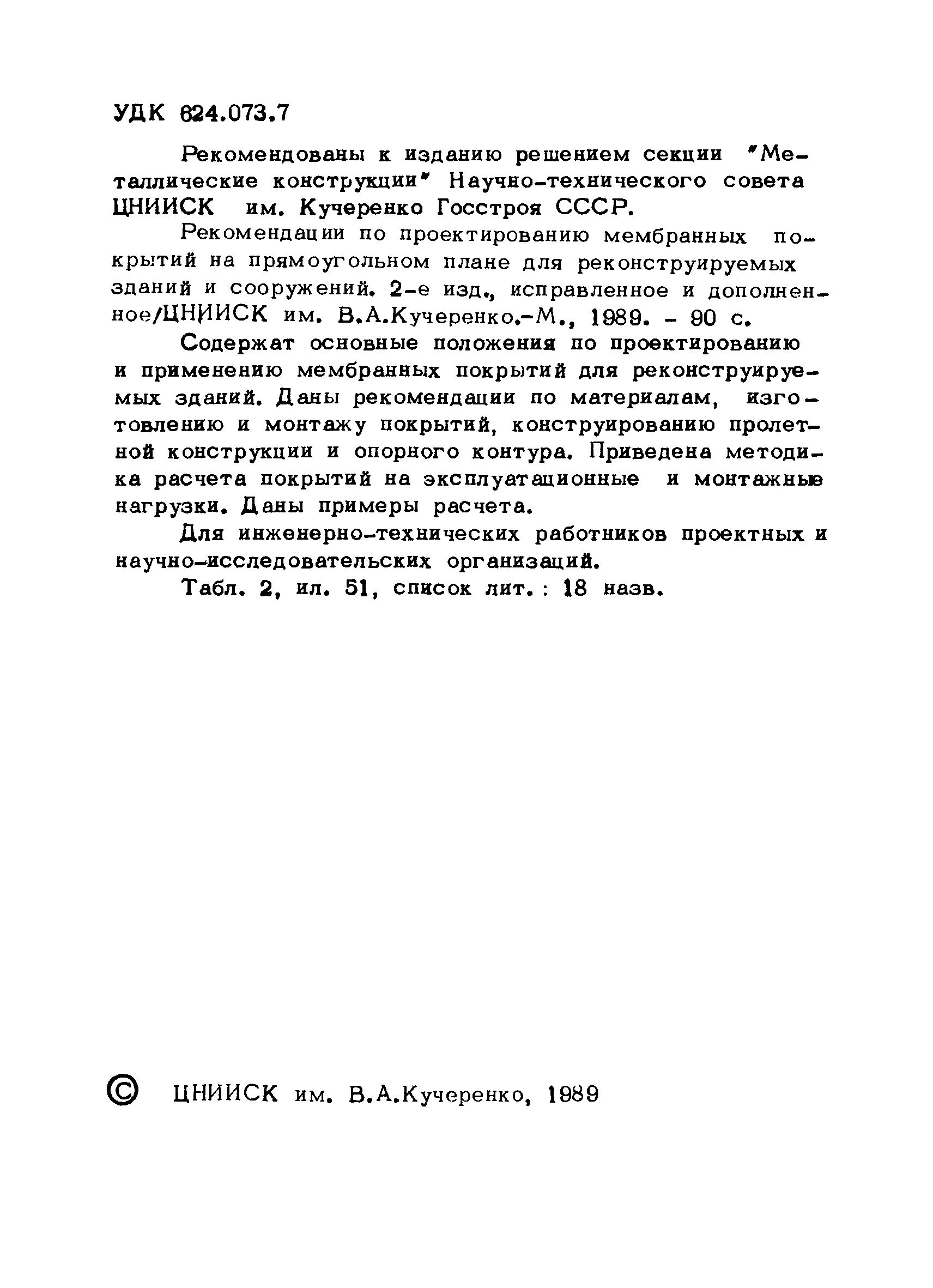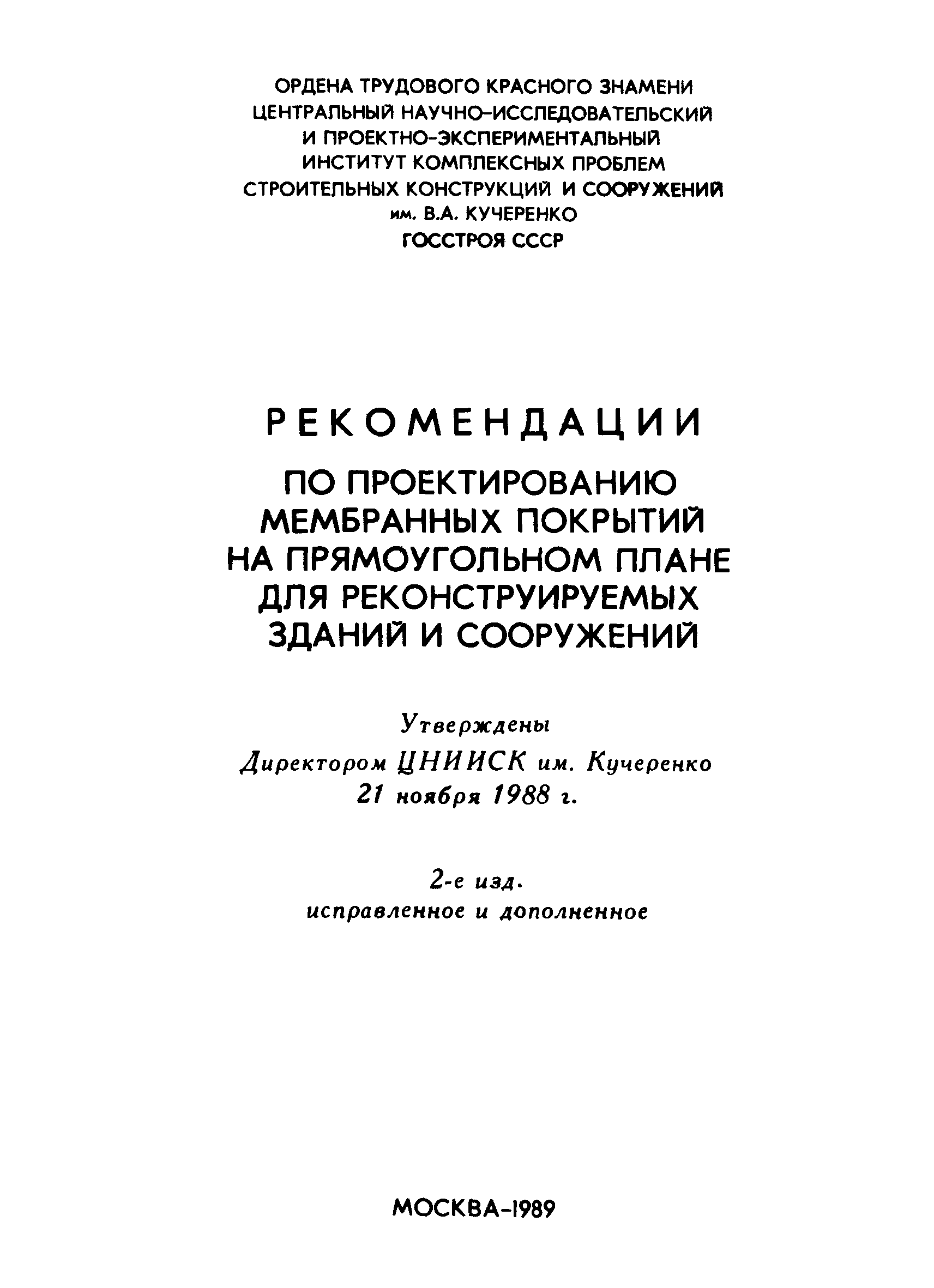 | Утверждён: | 21.11.1988 ЦНИИСК им. В.А. Кучеренко Госстроя СССР |