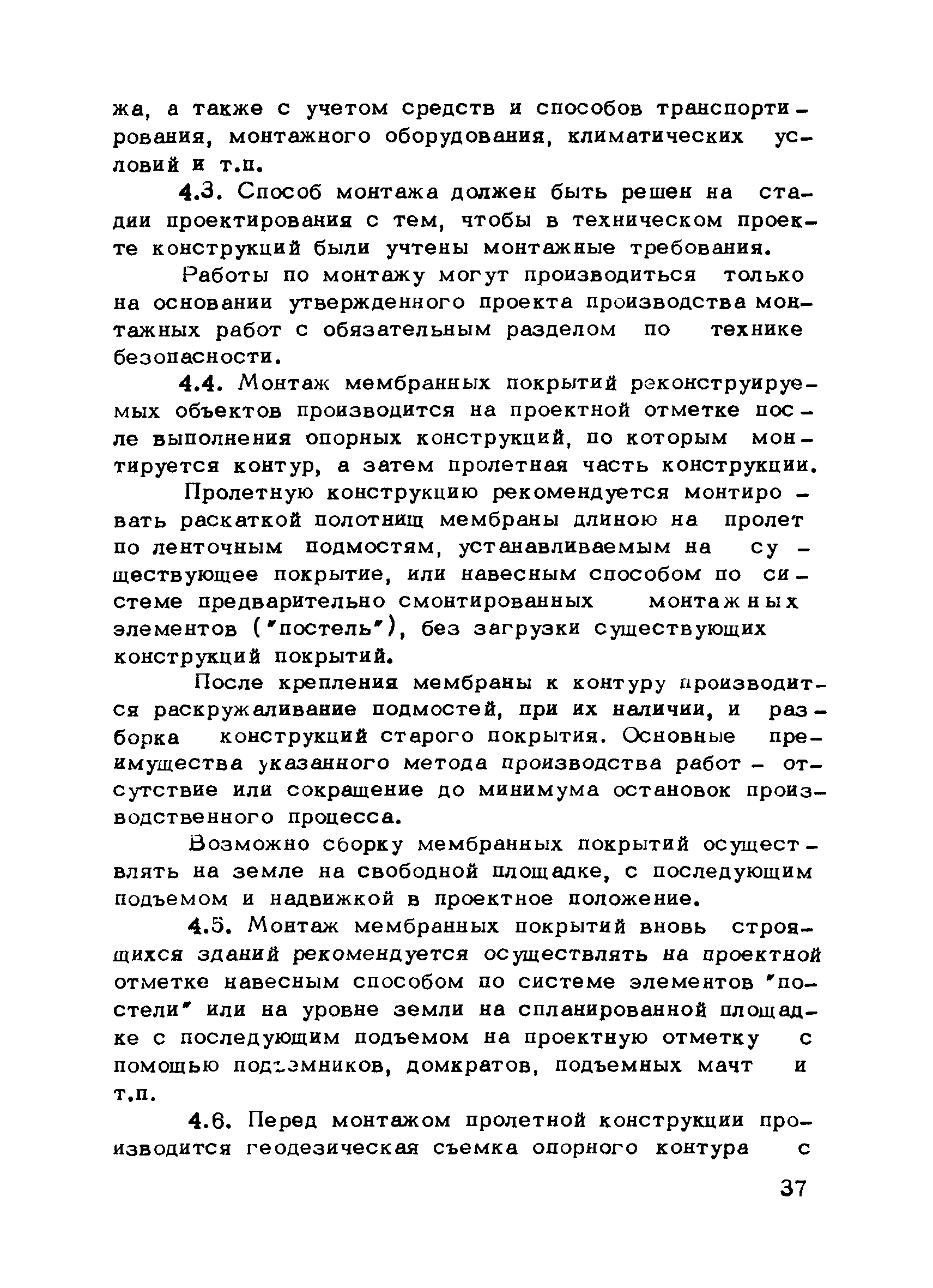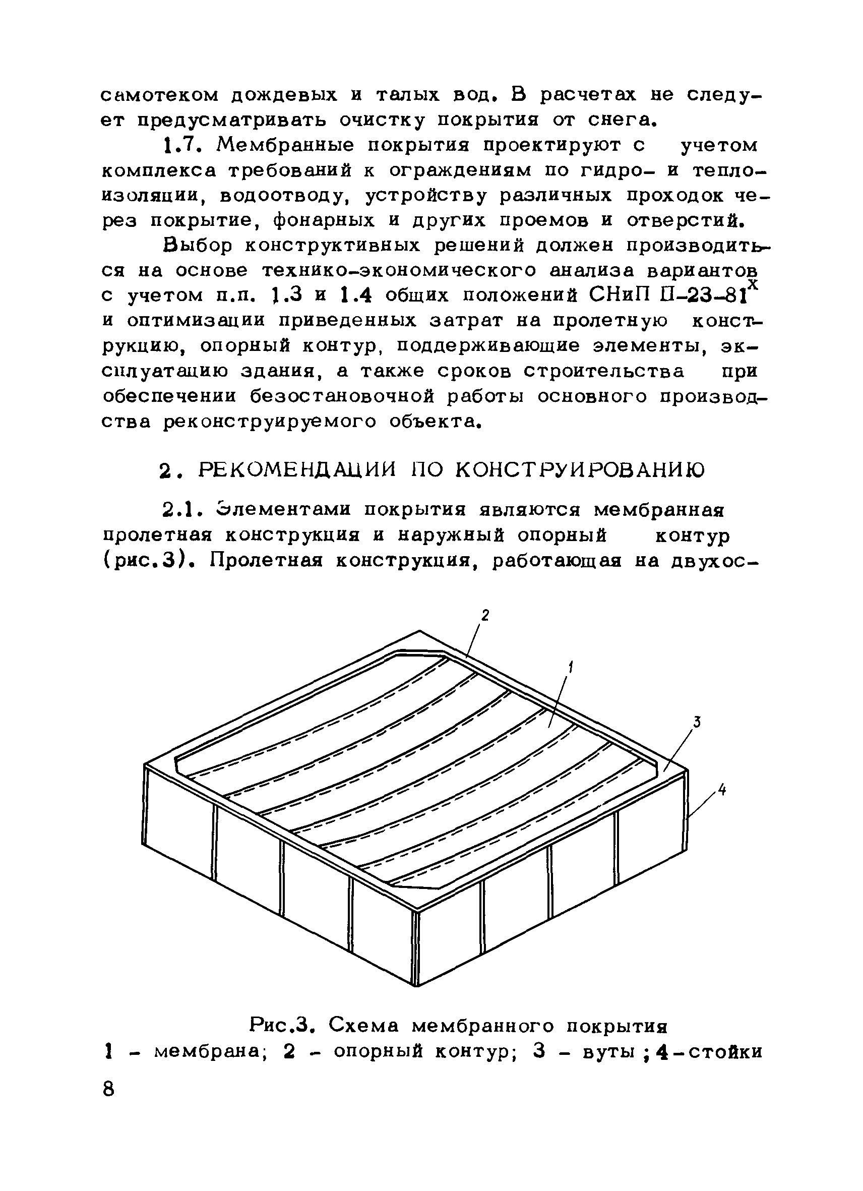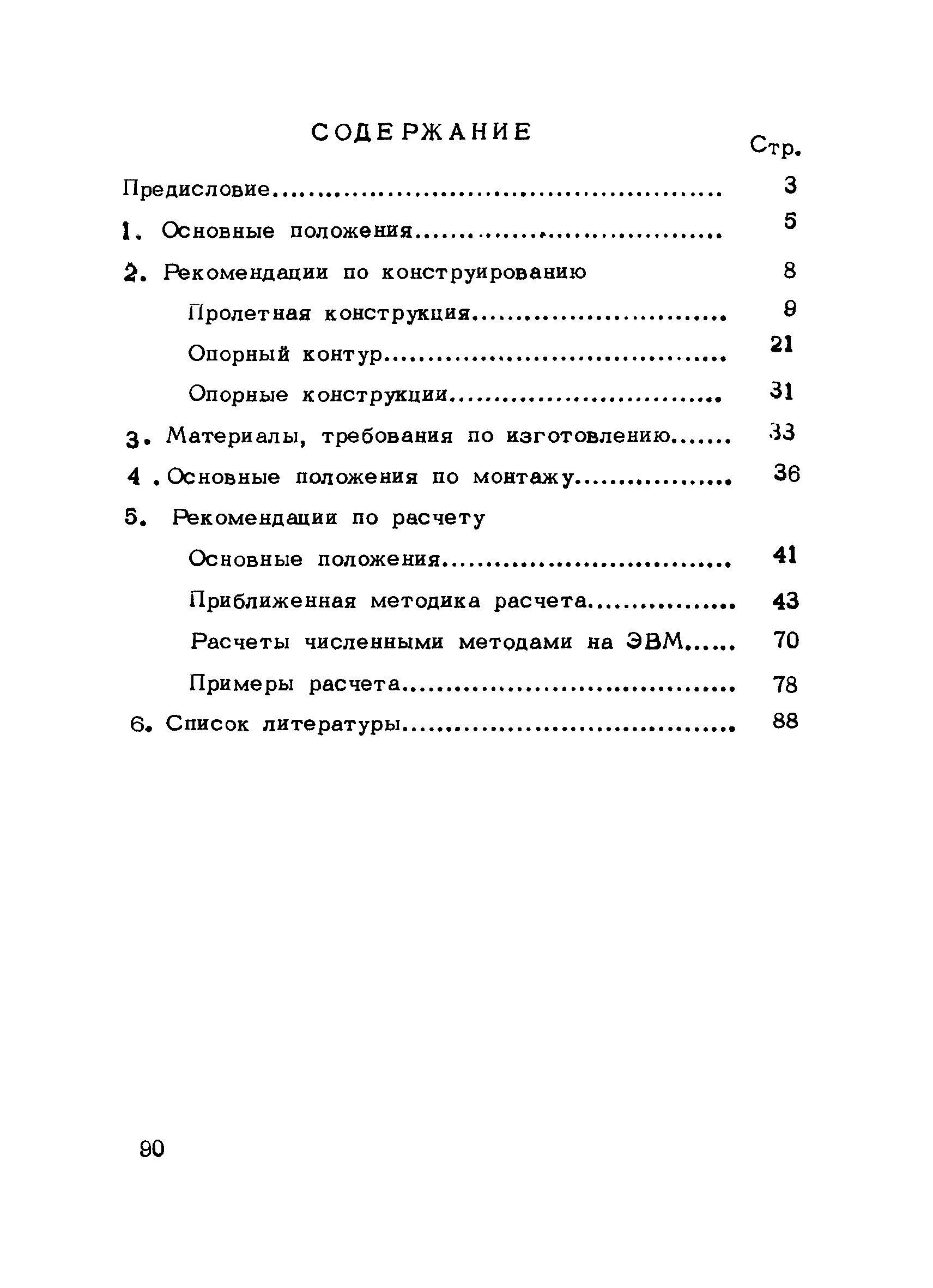 | Оглавление: | Предисловие 1. Основные положения 2. Рекомендации по конструированию Пролетная конструкция Опорный контур Опорные конструкции 3. Материалы, требования по изготовлению 4. Основные положения по монтажу 5. Рекомендации по расчету Основные положения Приближенная методика расчета Расчеты численными методами на ЭВМ Примеры расчета 6. Список литературы |