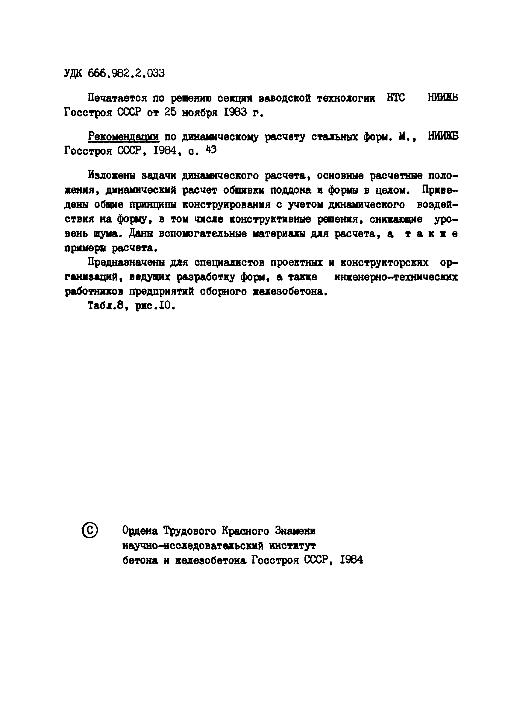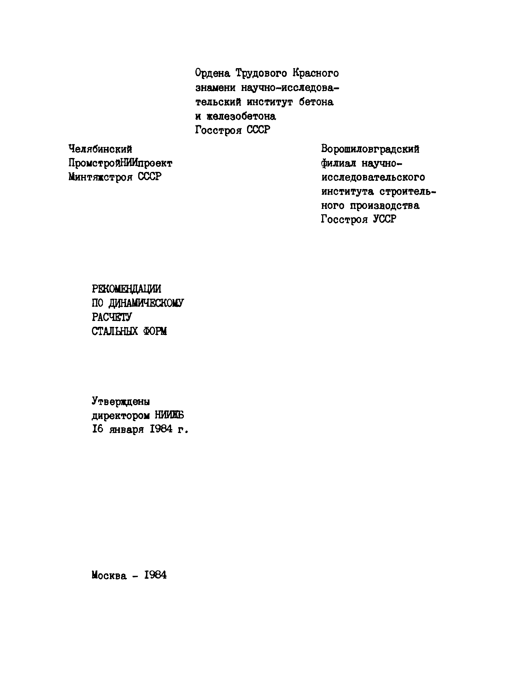 | | Утверждён: | 16.01.1984 НИИЖБ Госстроя СССР (NIIZhB, USSR Gosstroy )